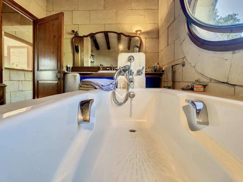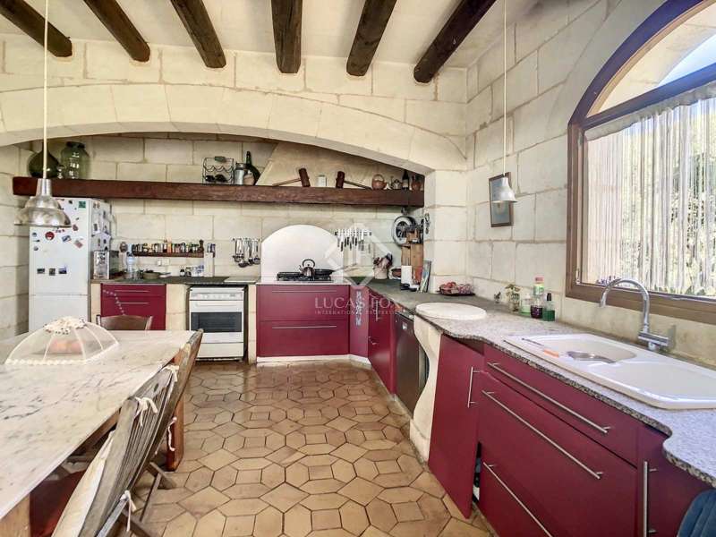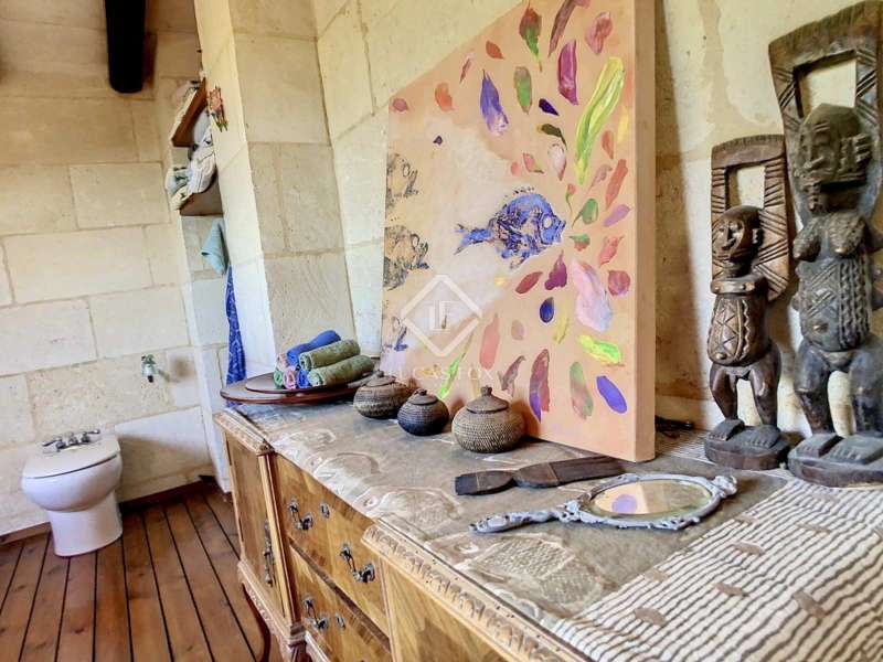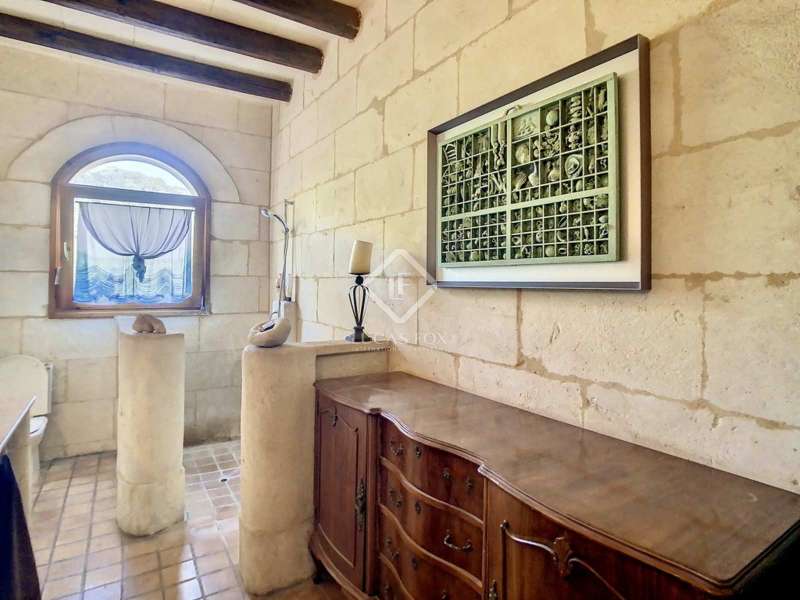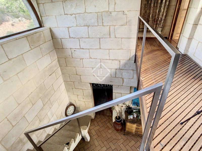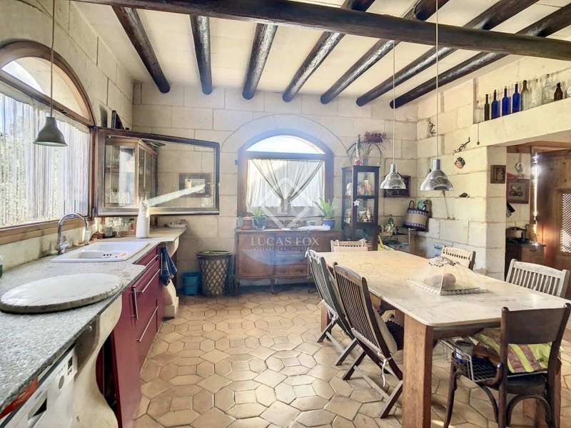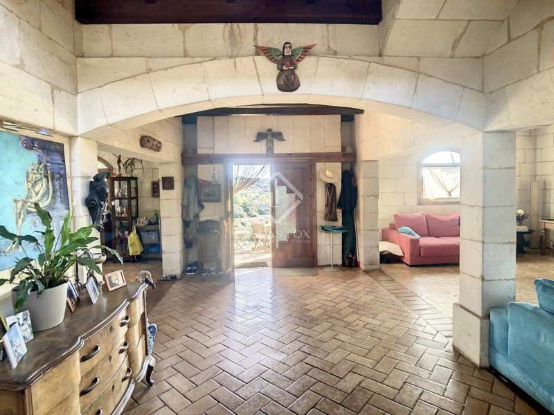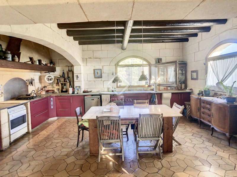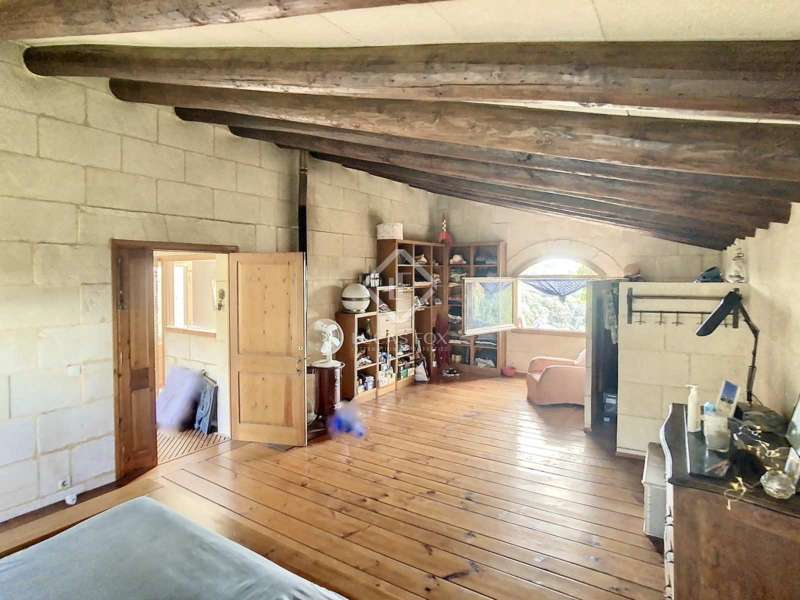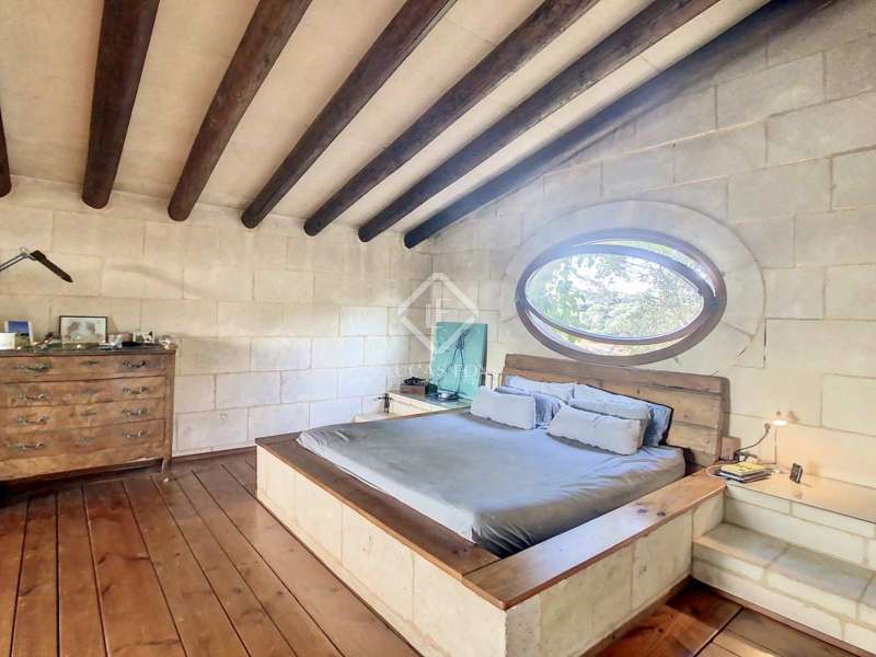 Rustic design estate with a 220 m² built entirely sandstone house raised off the ground to prevent moisture from entering the house, with a 100 m² herd and few neighbors in the Alaior countryside on a 16 ha plot with horses . The property is distributed in two floors. Through the terrace with an incredible view at the front of the house you enter the house giving access to the hall, the large living room with a fireplace that communicates with the fully equipped kitchen, with a large dining table and several windows. that let in natural light occupying an area of 110 m². Both rooms have underfloor heating. On this floor there is also a bathroom. The living room has a second door that opens onto the terrace with a beautiful view over the plot around the house. An open stone staircase leads us to the first floor. Here we find the night area with two double bedrooms, one with a dressing room, a large bathroom with a bathtub and a large porthole window with unobstructed views of the countryside. This floor is equipped with radiators and a salamander fireplace to make it more comfortable. Between the two bedrooms and the landing there is an open terrace with wide views where you can enjoy the views, the silence and the horses that run through the property. Due to the special location of this beautiful and special farm, you can imagine being alone on the island for a while, even though it is only 7 km from the town of Alaior. A unique property to live all year round, or spend time with family and/or friends. Contact us for more information, or to arrange a visit.