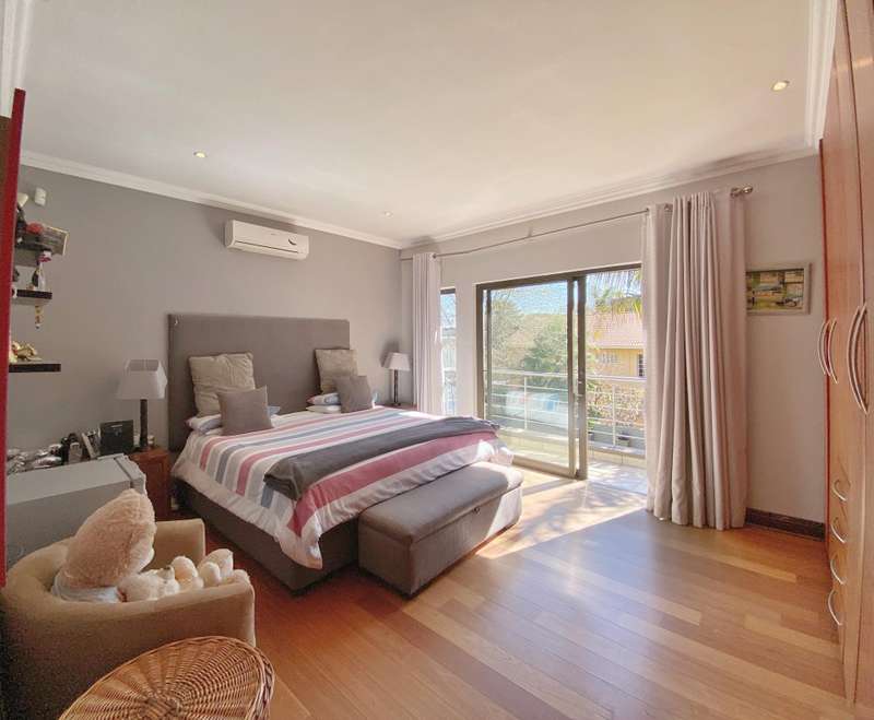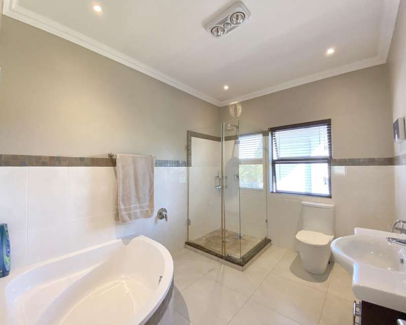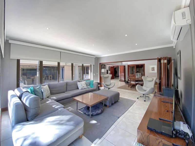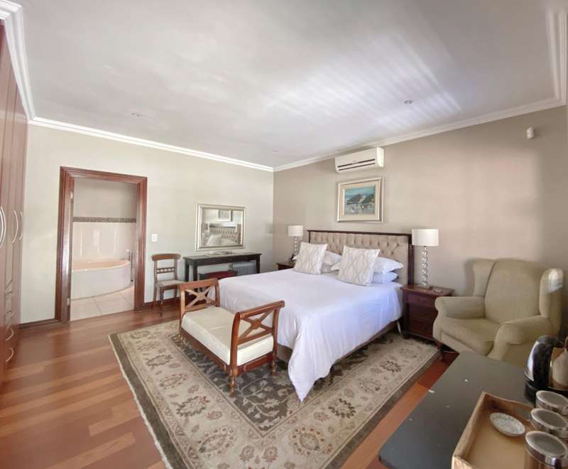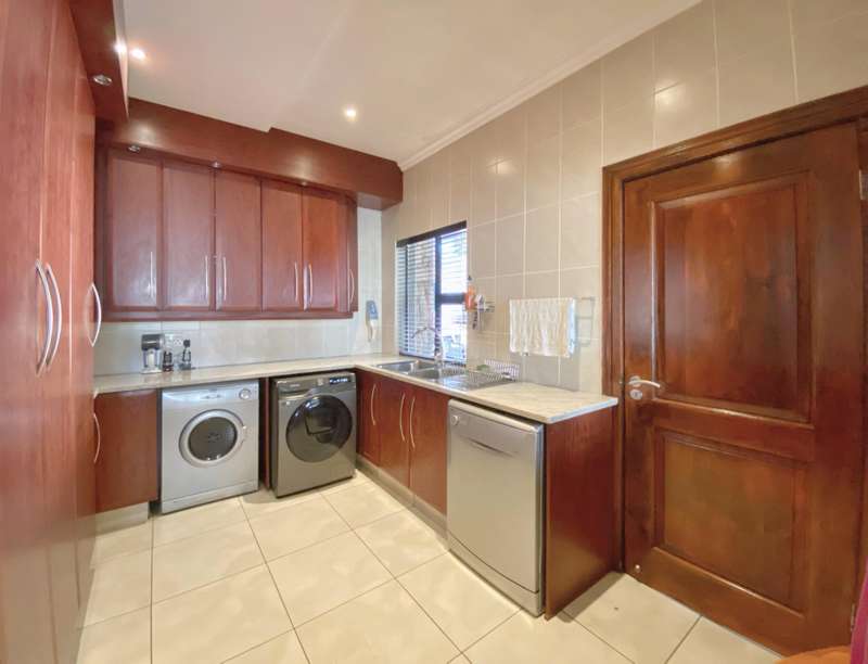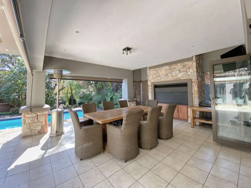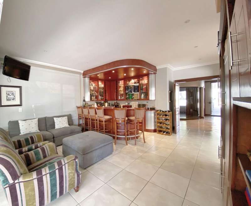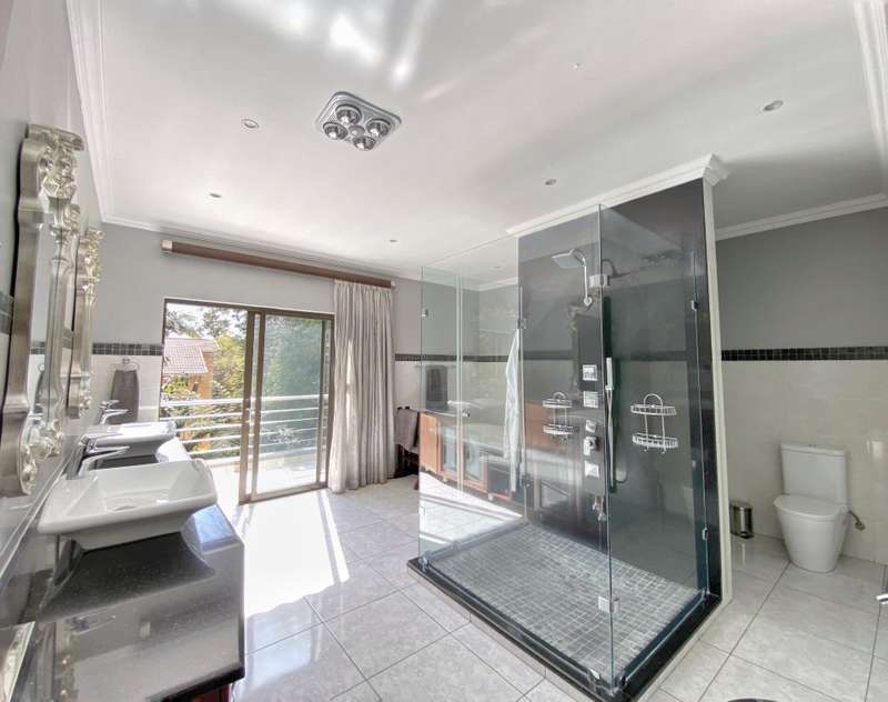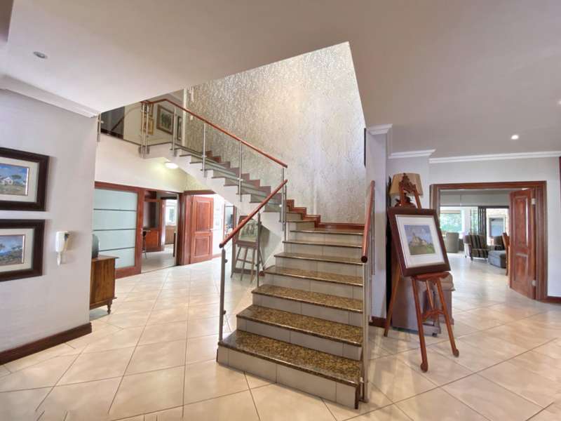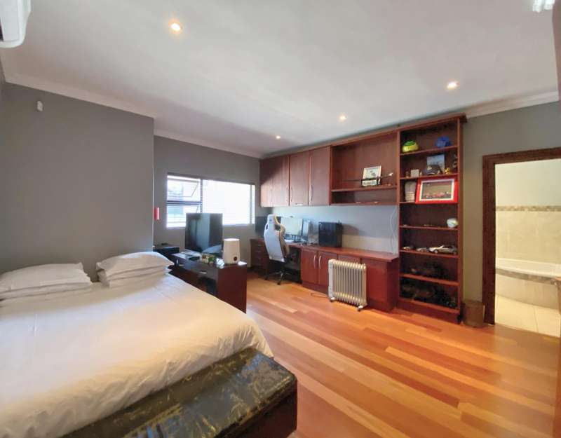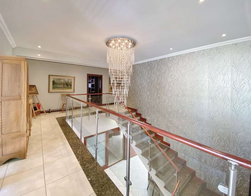 Upstairs can be found 4 bedrooms (all ensuite) with windows framing the manicured, tranquil surrounds. The gardens feature a sparkling pool and computerised irrigation. With a spacious covered patio with built-in braai, pristine interior, staff accommodation and automated garaging for 3 cars, this home offers so much more and is a must-to-view!