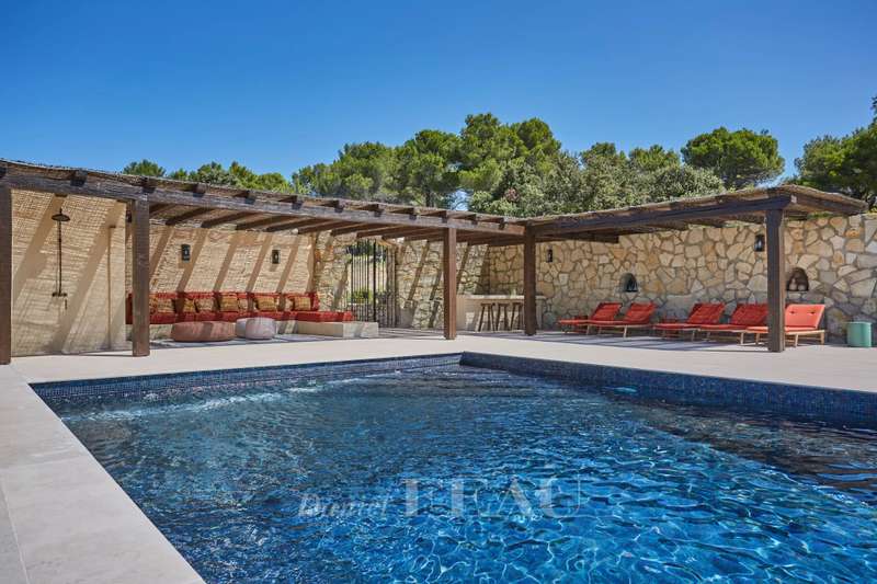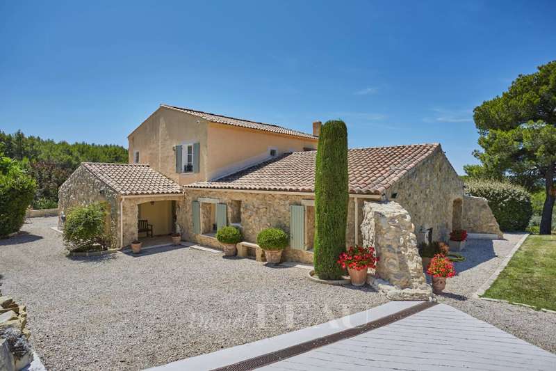 Sole Agent. This delightful 250 sqm property set in about 10 hectares of peaceful wooded grounds is located 20 minutes north of Aix en Provence, 20 minutes from Lourmarin and 20 minutes from Pont Royal Golf Course. The property is accessed by means of an elegant drive bordered by rose bushes and oak trees, and the grounds also feature a boules pitch, an olive grove, a swimming pool with a pool house, a sports area, a terrace with fountains, a second shady terrace and a barbeque area… An entrance hall leads to a living/reception room with a fireplace accessing a terrace, a TV area, a dining room, a kitchen, a utility room and two bedrooms. The upper floor comprises 3 further bedrooms (one with a shower room) and a shower room. With a self-contained apartment. A peaceful property just 5 minutes from Rognes and the shops.