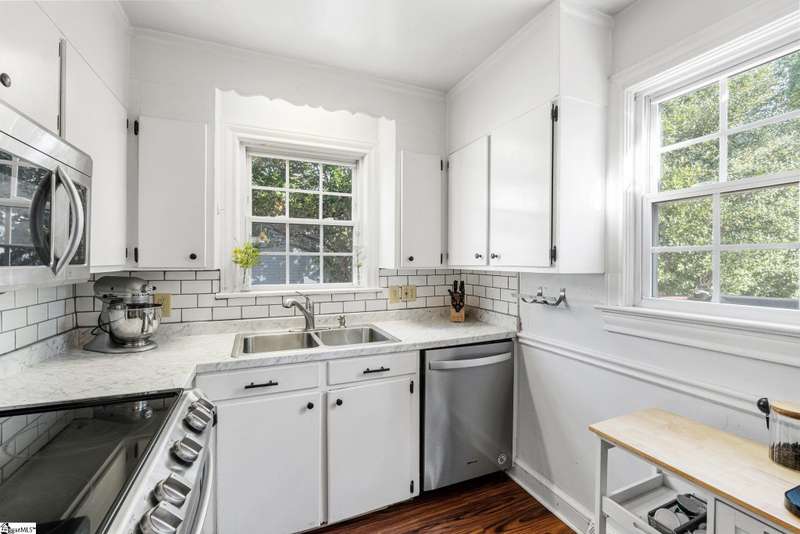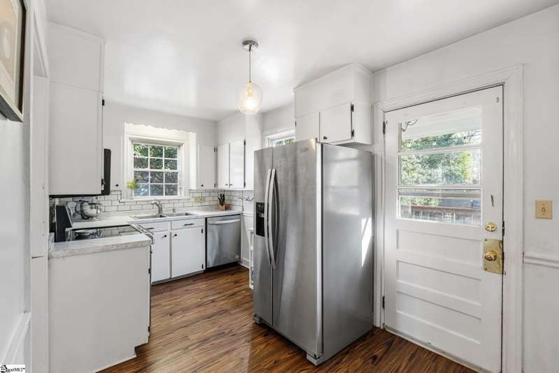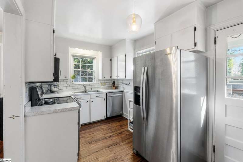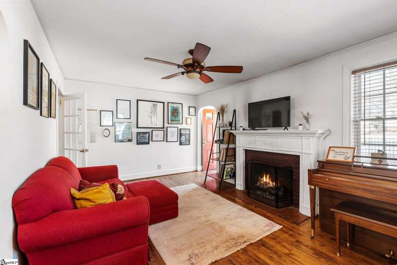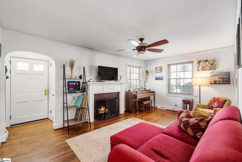 Fireplace selling as is. Back building selling as is. Hot water heater newer. Listing Agent: Nick Van Gorp (312) 877-1174 NVG@wilsonassociates.net Welcome to this super cute 3bed/1bath home located in in North Main. As you walk in you are welcomed by beautiful wood floors, and gorgeous brick fire place, new kitchen counters, 2 bedrooms on the main level, and ample storage. Upstairs comes with a loft space and extra bedroom. Expansion is possible on this home, plans can be sent upon request. As you walked into the fenced in backyard you'll have a great rear deck, fire pit, a storage building with electricity and a/c, and backs up to the wooded terrain giving the property even more privacy. The location is located by great amenities, parks, and within a 5 minute drive to downtown Greenville. This home is a gem. Come and See!