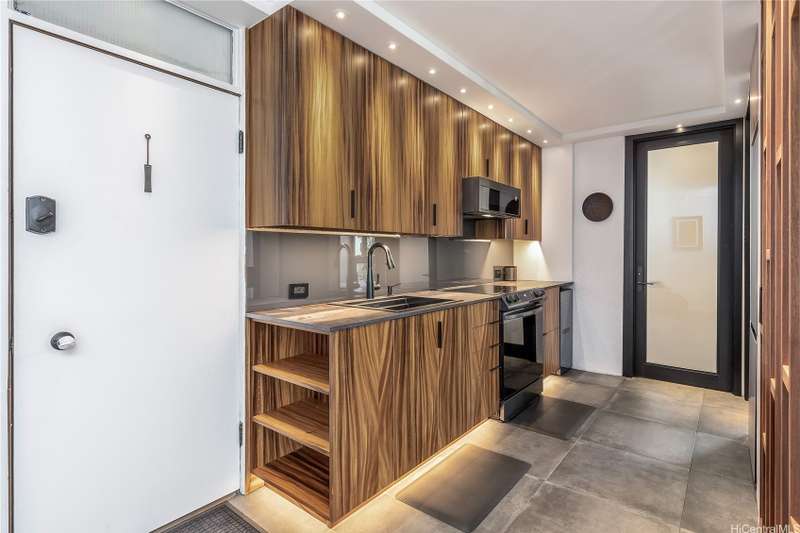FRESH PRICE AND FRESH LOOK- PRICED TO SELL!! Experience modern island living in this beautifully renovated condo on Oahu's sought-after Gold Coast. Thoughtfully designed throughout, the home showcases custom, locally crafted millwork, smart home automation, and high-end finishes. New sliding doors invite in the ocean breeze and open to lush tropical landscaping, creating a seamless indoor-outdoor connection. And thoughtfully designed custom closets enhance both aesthetics and functionality. Positioned on the cool side of the building, you'll enjoy the calming sound of waves and steady trade-winds, Ideally located near Diamond Head and Waikiki, you'll be close to outdoor adventures, fine dining, luxury shopping, and vibrant entertainment. This rare oceanfront residence offers the perfect balance of natural beauty and modern comfort in one of Hawaii's most coveted settings. For added security and peace of mind, unit 201 is fully covered with hurricane insurance. One or more photos has been enhanced/virtually staged.