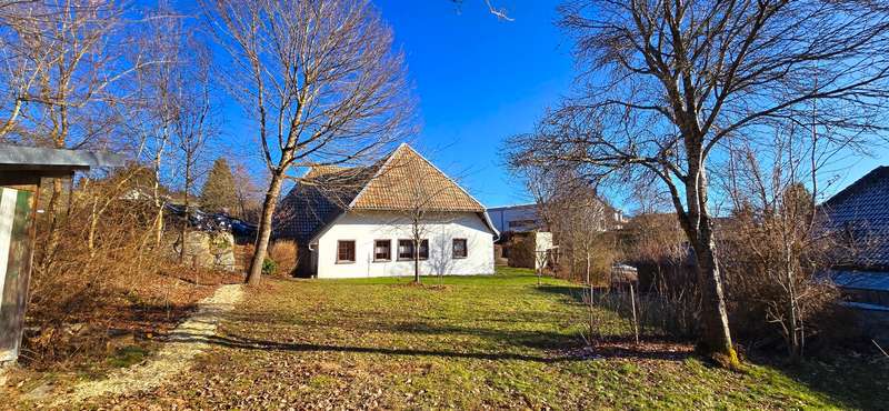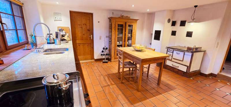 VON POLL IMMOBILIEN Lörrach presents this ecological, sustainable and beautifully renovated farmhouse in a sunny, high-altitude location. This well-kept two-family house dating back to 1833 offers plenty of space as well as a wide range of possible uses. With a generous living space of approx. 313 m² and a plot area of approx. 1,593 m², this house is ideal for large families, as a multi-generational home or for combining living and working. The property is divided into a main house and an attached annex, which currently offers attractive income as a furnished vacation apartment. In 1995, the entire first floor underwent a core renovation, which ensured the preservation of the historic building fabric. From 2005 to the present day, further conversion and extension work has been carried out on the upper floors, modernizing the house while preserving its historical character. It should be emphasized that the entire building was renovated in an ecological architectural style. The philosophy of the house: a healthy living ambience and balanced, organic architecture that conveys a symbiosis of nature and sustainability. The main living area extends over three levels and offers easy access via the central staircase. In total, the house offers a spacious living room with an impressive stove sculpture, 5 (bedrooms), 2 bathrooms and further possibilities in the attic, which is prepared for further expansion. The kitchen is equipped with a bread and pizza oven and modern appliances. A storage room and a vaulted cellar round off this part of the house. The left half of the house, with a separate entrance, currently serves as a vacation apartment for rent and is divided into a spacious living/dining room with an open kitchenette, two bedrooms, a bathroom and a cellar room with a natural stone wall. Above is the large barn, which has further potential for expansion. The overall room layout of both parts of the building is well thought out and offers enough space for privacy as well as for communal activities. Thanks to its size and layout, the house offers plenty of space for individual development. It is suitable both for owner-occupation and for (partial) rental. The house is equipped with a central heating system that ensures pleasant heat distribution in all rooms. The pellet heating system with additional support from a wood-fired heating system was installed in 2015. The large garden, with a 4000-liter rainwater cistern, offers plenty of space for outdoor leisure activities, be it gardening, playing or relaxing. The plot area also allows for individual design options. The total plot area of 1,593 m² is made up of two building plots. This means that further development in the rear area would also be conceivable after development and offers additional possibilities. Above all, the harmony between old and new makes this property something special: The charm of the historic building has been preserved, while the extensive modernization measures guarantee contemporary living comfort without compromising the "Black Forest charm". Arrange a viewing today to experience the full potential of this versatile property and see for yourself the fantastic furnishings and well-kept condition. Please contact us for further information or to arrange an appointment.