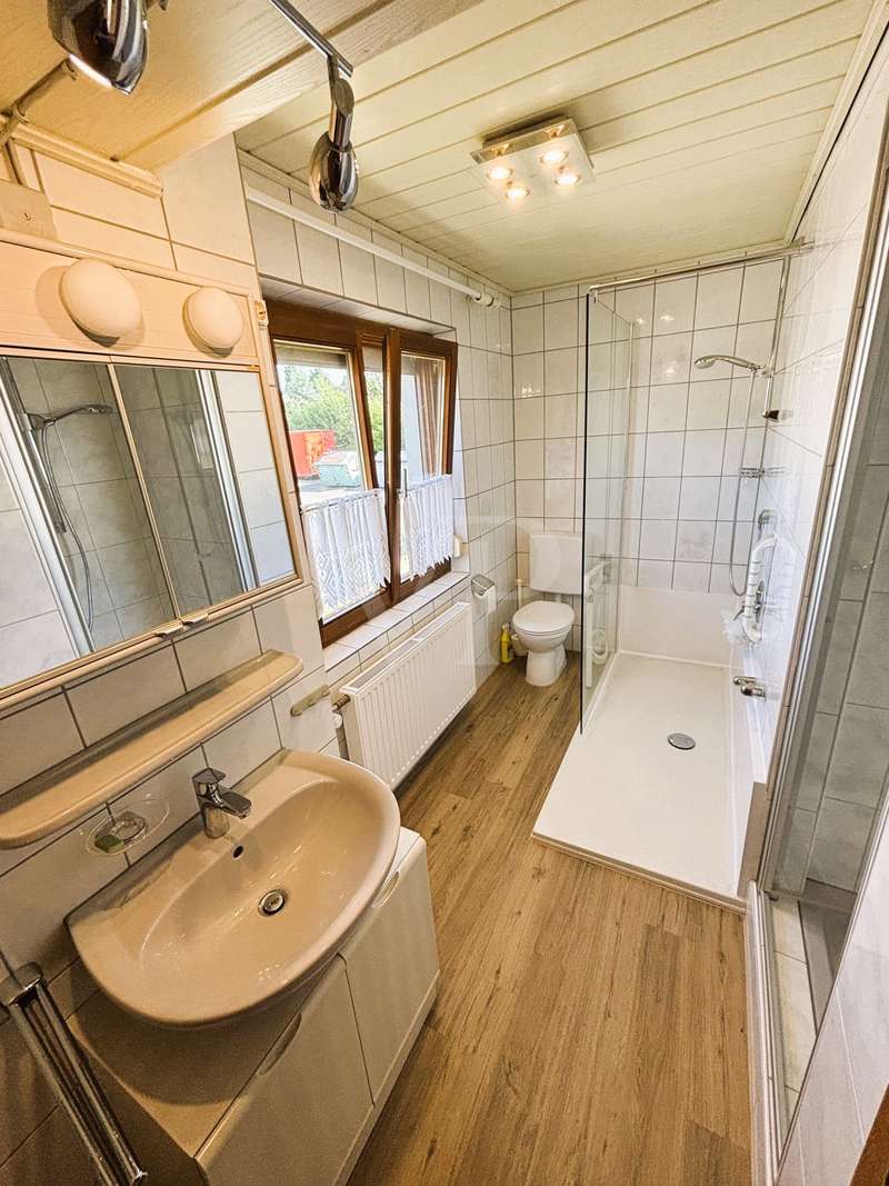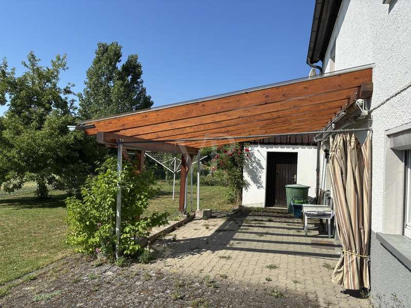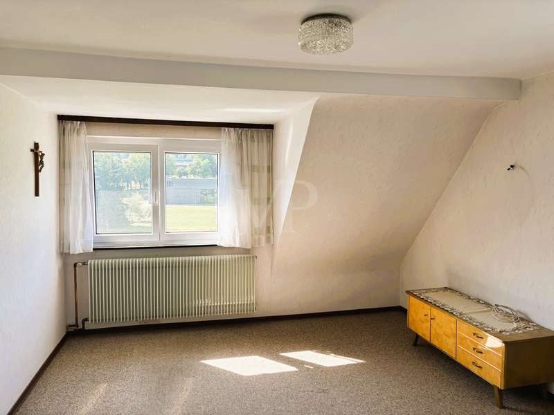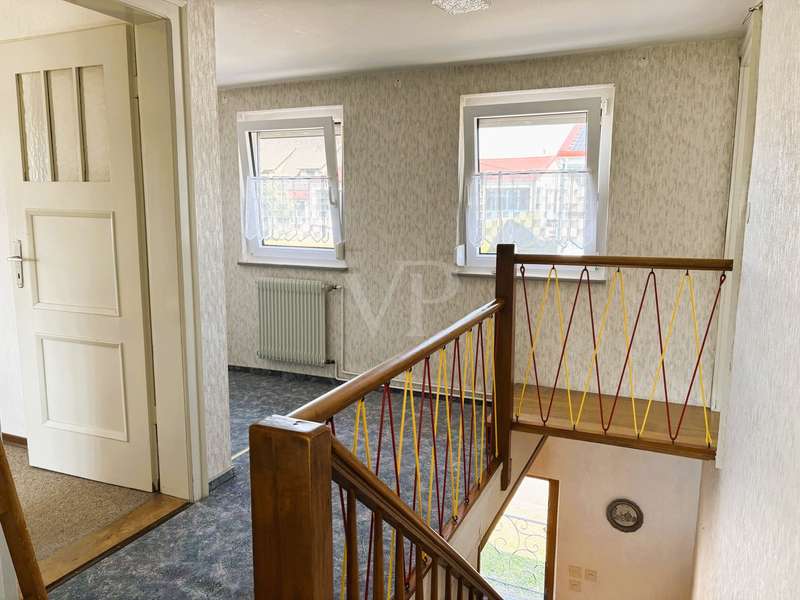 For sale is a detached house built in 1949, situated on a spacious plot of around 677 m² on the outskirts of the village. The living space is around 146 m² and is spread over a total of six rooms, including four bedrooms and two bathrooms. The property is in need of renovation, which offers ambitious buyers the opportunity to incorporate their own ideas into the redesign. The garden on the edge of the village is fully fenced and the fruit trees provide shade. A covered patio invites you to linger outside while enjoying the quiet location and the view. The garden shed right next to the house is also useful. On the first floor there is a terrace directly on top of the garage, ideal for spending time in the sun with family and friends. A shower toilet completes the floor. The kitchen is currently not equipped with a fitted kitchen, but leaves plenty of room for individual design options. There is a separate WC on the top floor, which further enhances the living comfort. There is a further room and an additional bathroom on the garden floor, which offer flexible usage options. A small special feature of the house is the vaulted cellar, which offers additional storage space. The house is heated by oil-fired central heating and the quality of the fittings is kept simple. A wood-burning stove provides additional cozy warmth on cold days. A satellite system is available for TV reception. The property is located on the outskirts of the village and offers a retreat away from the hustle and bustle. Due to the sought-after size of the house and plot as well as the attractive location, the property will be of particular interest to families and talented buyers looking for a house in need of renovation with potential. Interested parties are invited to view the property in person to gain a comprehensive impression of its potential. The quiet location and the plot offer a solid basis for a future home that can shine in new splendor with craftsmanship and design. Please do not hesitate to contact us for further information or to arrange a viewing.
