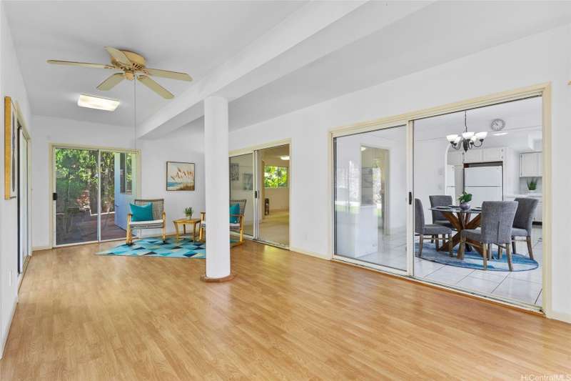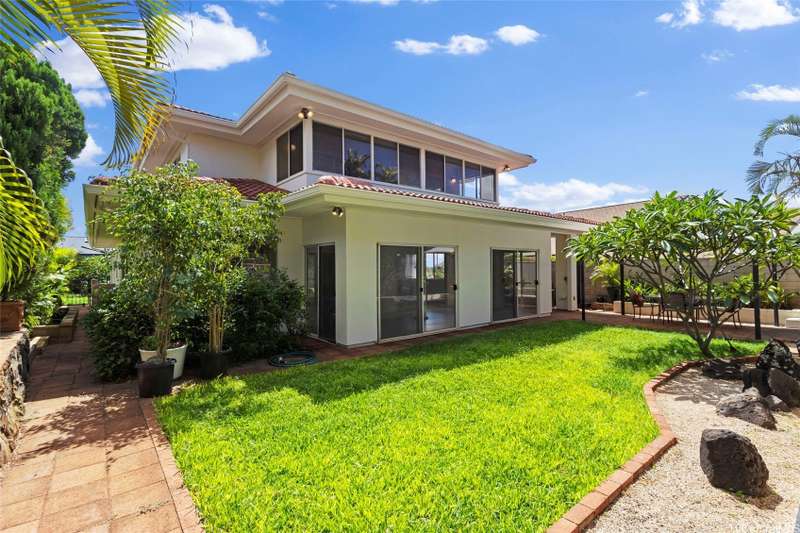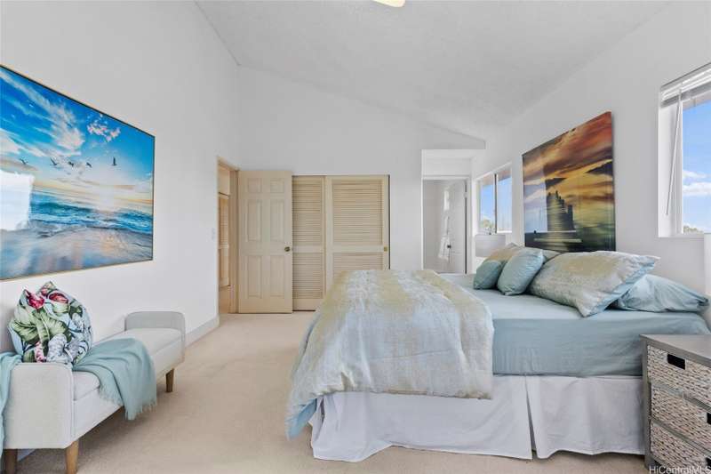 Welcome home to this move-in ready in Upper Makakilo! This spacious two-story residence embraces the cool trade winds, abundant natural light, and beautiful mountain views & ocean view from the second floor bedroom.. The main living area features an enclosed patio and open floor plan that flows seamlessly into the spacious kitchen and dining area. Upstairs, you'll find the bedrooms, including the primary suite with its own ensuite bathroom and walk-in closet. The lower level offers another large living area with direct access to the covered lanai. Four additional bedrooms and ample closet space provide comfort and flexibility for the entire family. With 2,828 sq. ft. of living space on a 6,271 sq. ft. lot, this home also includes a large side and backyard and an enclosed two-car garage. Conveniently located near H-1 freeway access (East & West), Costco, Home Depot, golf courses, shopping, dining, and entertainment-this is truly a must-see home!
