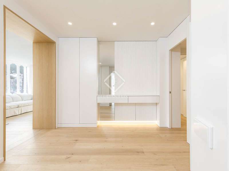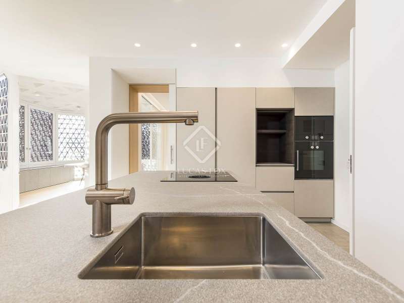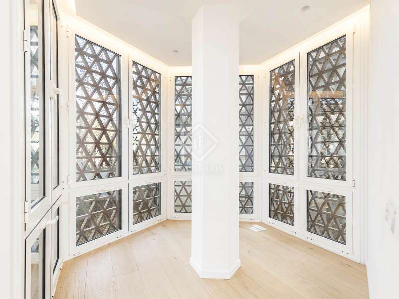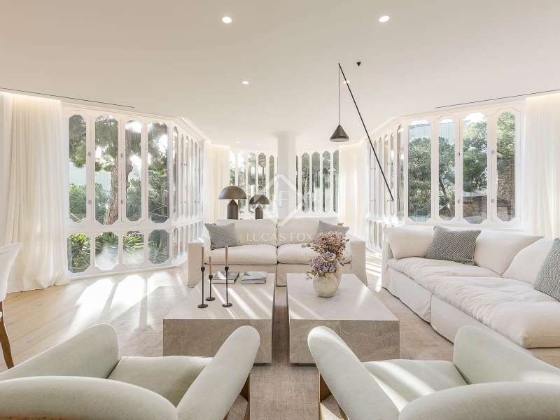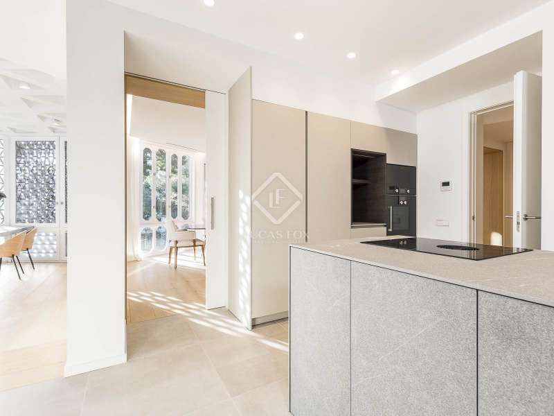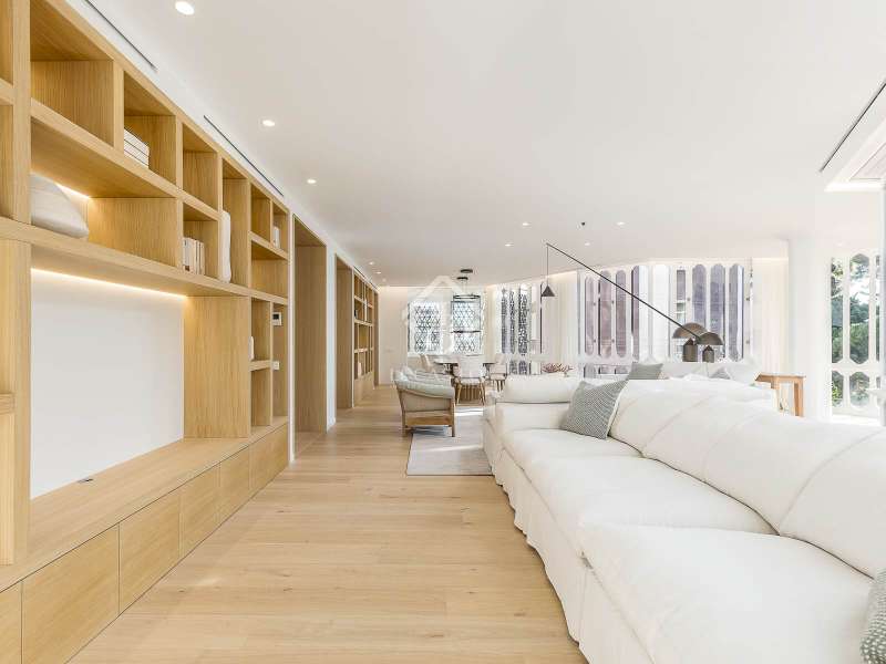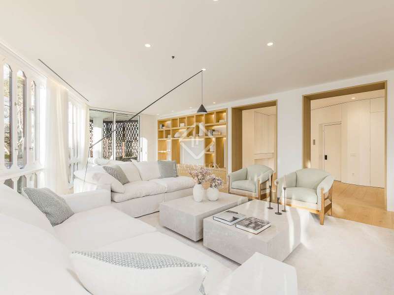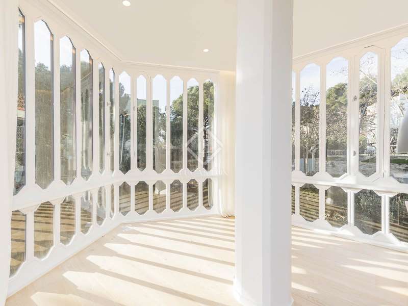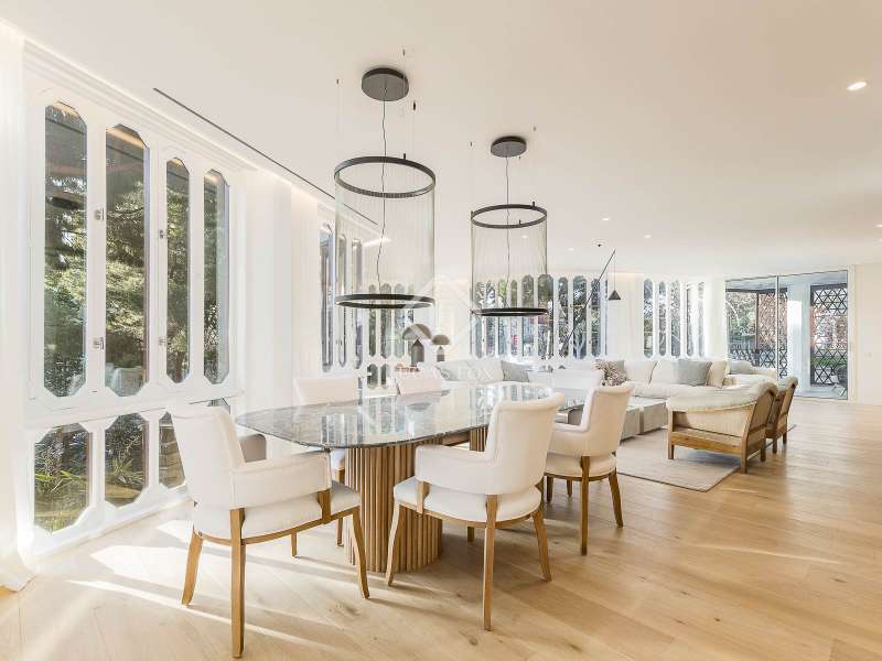 We present an architectural gem in one of the most coveted areas of Barcelona: next to the Cruz de Pedralbes, in the prestigious Plaza de los Jardines de Tokio. This property, a unique building and listed as cultural heritage of the city, is built with a unique hexagonal design, natural wood lattices and windows that flood the spaces with light. This building offers an exceptional setting with a large private garden and an elegant communal pool. It also has three parking spaces (two indoor and one exterior), ensuring maximum comfort. The five-bedroom property includes a service room with a private bathroom, two luxury suites, a guest toilet and a majestic 69 m² dining room living room with a gallery and views of the garden. The premium designer kitchen is equipped to the highest standards: Modulnova, along with high-end Gaggenau and Siemens appliances . Luxury finishes, ready to move into. Every corner of this property is designed to offer comfort and elegance. The top quality finishes include an impressive wide-plank natural oak parquet, microcement coverings and large-format porcelain flooring, creating an avant-garde and sophisticated atmosphere. This property offers in every detail a total harmony between design, quality and comfort. The facilities, designed with energy efficiency criteria, ensure that this property is not only visually impeccable, but also functional and sustainable. The perfect property for those seeking distinction. This exclusive project has been created to enjoy a life of luxury, in a property that reflects the elegance, functionality and status that only Pedralbes can offer. An one of a kind opportunity in the best area of Barcelona. The property has a communal area that includes a swimming pool and garden area to enjoy most of the year in one of the best climates and in the best city, Barcelona.