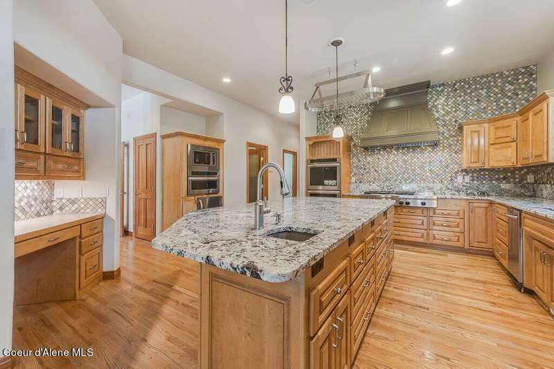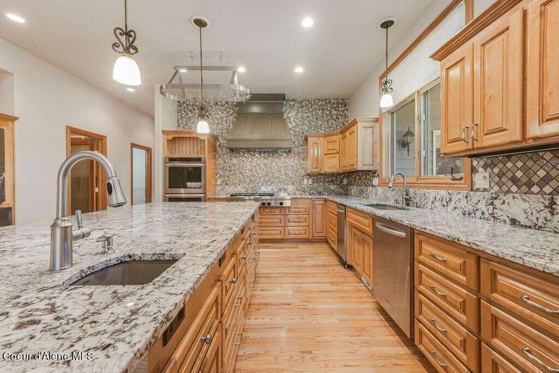 Forest Hills Beauty! The most sought-after gated community in North Idaho! Just minutes to all services. Spectacular custom home on quiet cul-de-sac golf cart distance to HLCC & Avondale, and Honeysuckle Beach. 8 Car finished tandem garage with 18' doors, 5 bedrooms, 3.5 baths, 5,343 SF, spacious main level master suite with attached den/ office/ baby's room, all new granite kitchen with massive island, formal dining room, covered & screened lanai, cov. ex.ag. front porch, & rear patio, 3 fireplaces, 2 spacious family rooms and a fenced back yard, professionally landscaped.