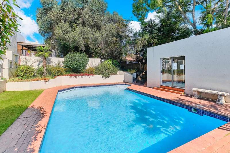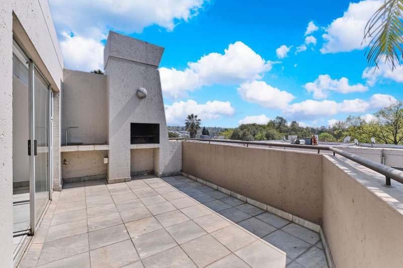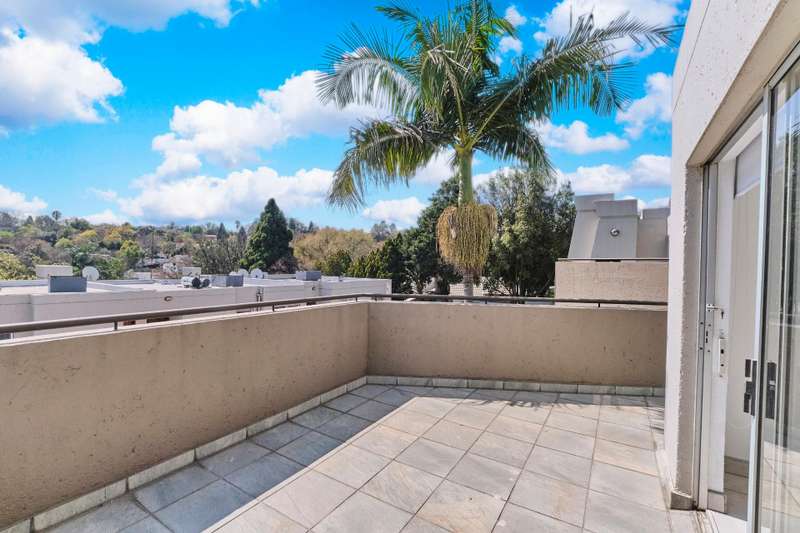 On entry into this upper floor unit is the Kitchen, fitted with granite tops and an electric stove. It has a large pantry cupboard for extra storage. The dining area can fit a 6 seater table and the lounge area can accommodate a full lounge suite. The lounge leads through sliding doors onto the entertainers balcony with lovely views. Down the passage is the full bathroom consisting of a shower and bath, loo and basin. The two bright double bedroom are at the end of the passage. The entertainment areas and passage are all tiled in light tiles giving a very fresh and summery feel. The bedrooms have laminate flooring. There are roller blinds on the windows. This part of Bryanston is highly sought after as it is well located to get to St Stithians, or Kings College and many small schools in the area. Bryan Park Shopping centre is close by and the newly renovated Olivedale Corner. If there is more variety required the Nicolway centre and Hobart are conveniently located too. Olivedate Hospital is around the corner. In addition, access to Randburg and Sandton is very easy