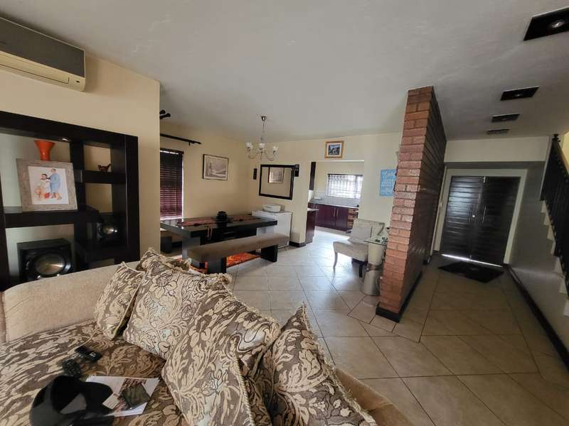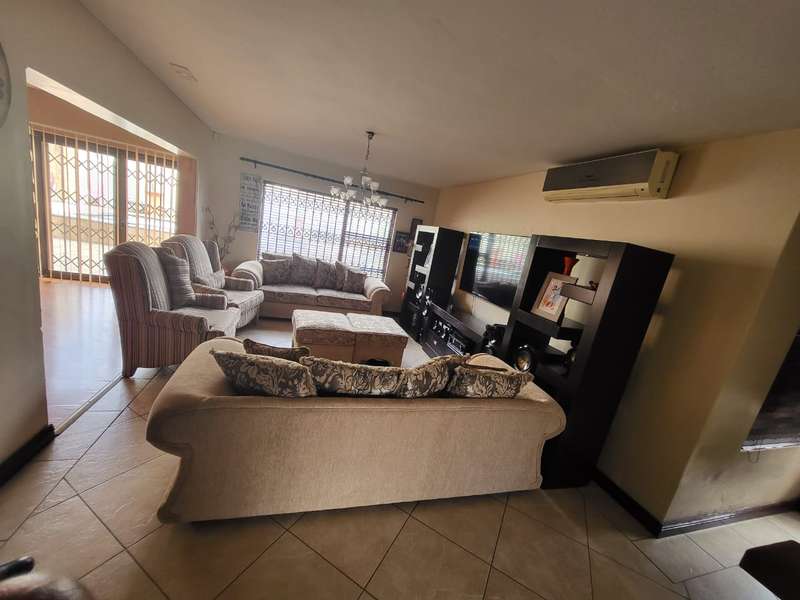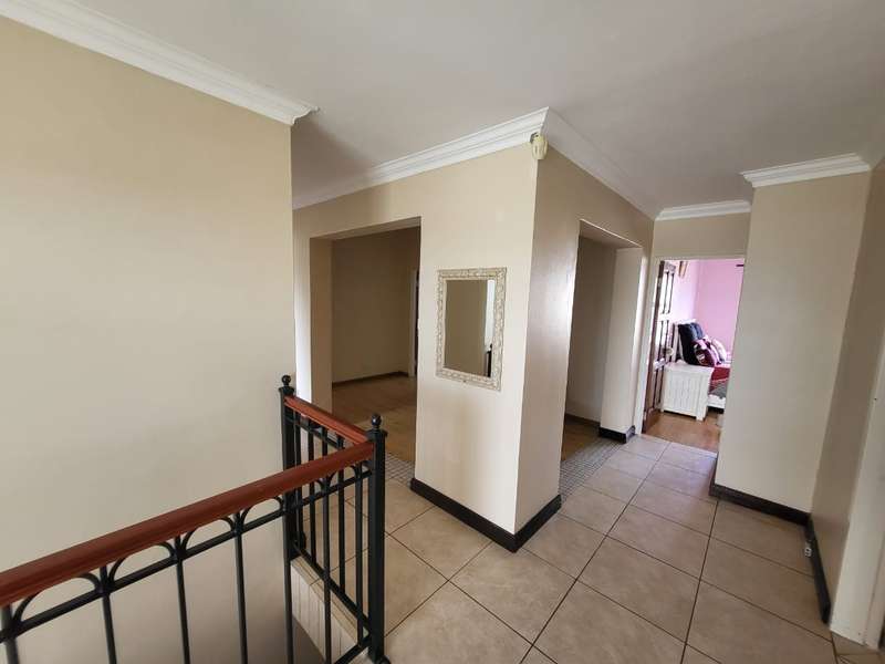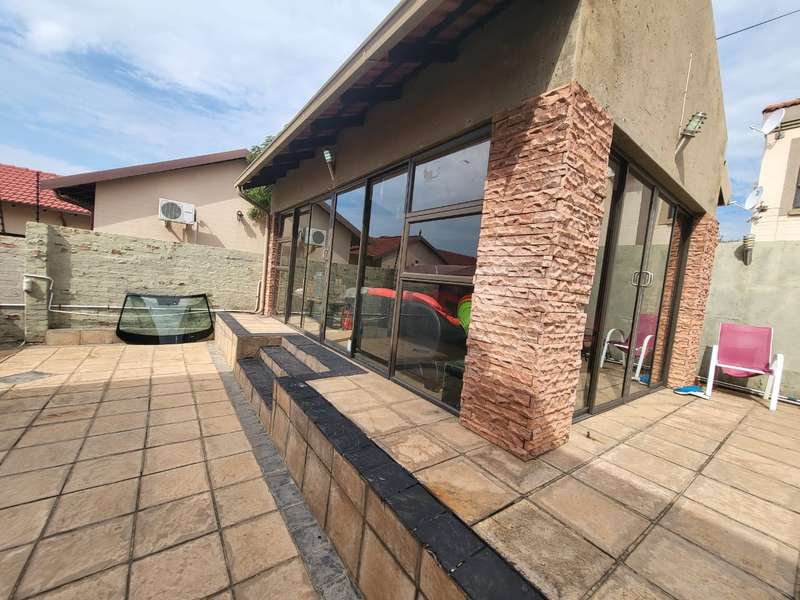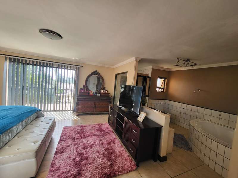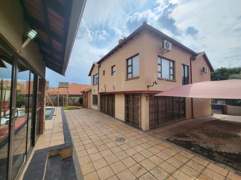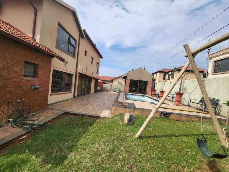 Massive!!!! Family house in Safari Gardens up for grabs This beautiful house offers the following: 4 Spacious Bedrooms, 3.5 Bathrooms - Main bedroom on-suite with very big shower and corner bath. Second bathroom with a bath and shower. Third bathroom has a bath only. Separate Guest Toilet downstairs. Entertainment area with a jacuzzi overlooking the swimming pool. Well maintained garden secured and walled around the property . Double Wooden garages with remote controlled gate and Built in braai. Call the professional agents to experience this magnificent property.