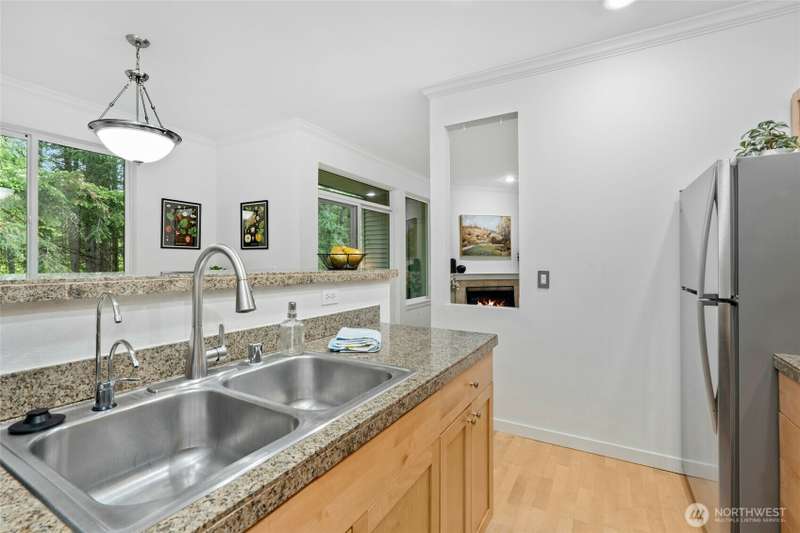 COMPELLING NEW PRICE & ALL SA's PAID BY SELLER. Step out your door to lush trails, sparkling pool/sports courts and more all part of the numerous amenities that both Tanglewood & the vibrant Klahanie community provide. This updated second floor 2 bed, 1 bath home backs to a captivating, serene greenbelt & features, a gas fireplace, stainless steel appliances, granite countertops, plus washer/dryer. Both the living & dining rooms overlook this peaceful wooded setting. You'll enjoy 2 storage areas, 2 parking spaces (1 covered) plus visitor parking. Tanglewood residents enjoy their own clubhouse/pool/hot tub/fitness center & more. Located near Challenger Elementary in the coveted Issaquah SD with access to I-90 & all the Plateau has to offer!