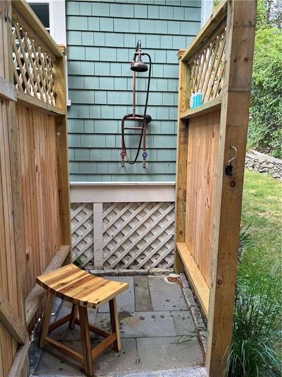 Beautiful two-bedroom cottage is within a short distance from the beach. With a calm environment both inside and outside with grounds that abut to the Norman Bird Sanctuary, this beautiful home offers peaceful living. There are exposed timbers, cathedral ceiling and lots of natural light. There is a gas grill, private outdoor shower, built-in custom bookshelves, air conditioning, a wood burning fireplace, lovely furnishings, a fully functional kitchen, and off-street parking. The rent includes Wifi. Your well behaved (non shedding) pet may be considered with additional fee.