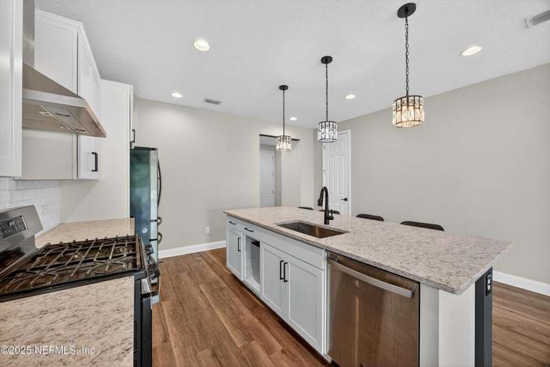 Wow, Just Wow! Light, Bright & Open w/13' Clgs & 10' Doors & Blinds Thru-out; Luxury Vinyl Plank Floors in Main Living Area & Carpeted BRms; Granite Kitchen Counter Tops, Subway Tile Backsplash, White Cabinets & All Appliances Stay, Including Garage Freezer; Salt, Charcoal & Magnesium Water Purifier & Softener; Master Bath w/Walk-in Closet & Shower; $14k Water Filtration System w/Lifetime Warranty; Surround Sound, Gas Hot Water Heater, Covered Lanai & Black Iron Backyard Fence O'Looking Lake to Preserve! A Must See! Could Not Be Built at this Price & Better Than New! Just Reduced!