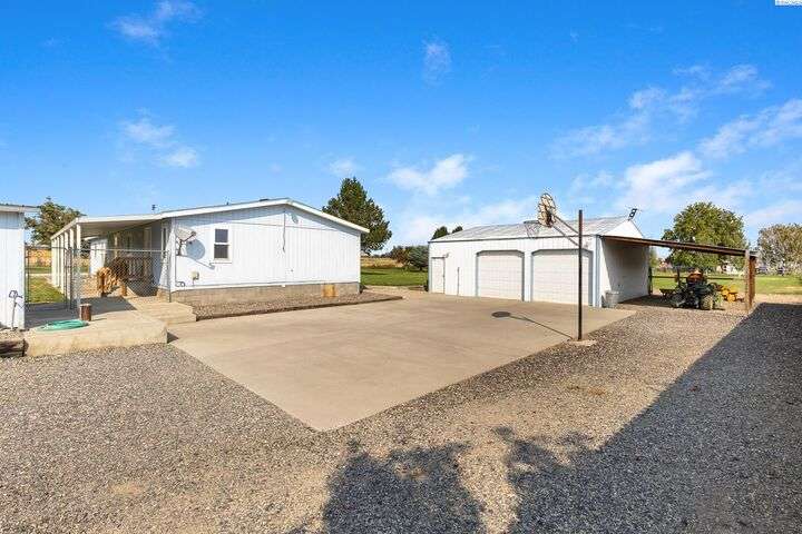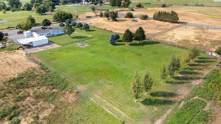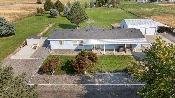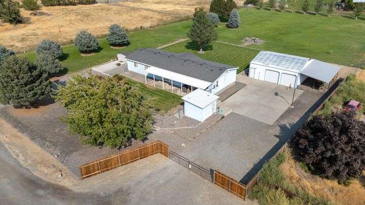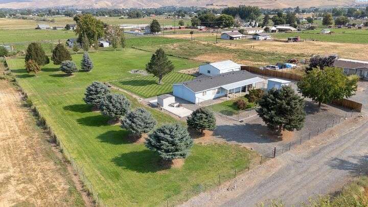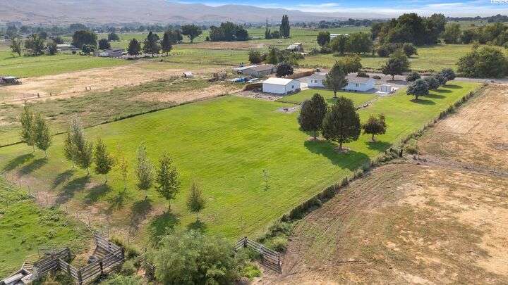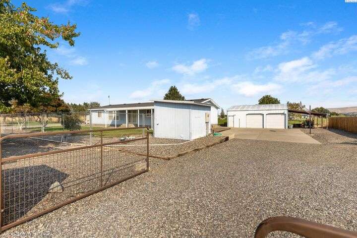 MLS# 287565 Welcome to this charming single-story home on 2.19 acres in beautiful Prosser, Washington! With 4 bedrooms, 2 full bathrooms, and 1,836 sq ft of thoughtfully designed living space, this home offers both comfort and flexibility. Large windows fill the house with natural light, while the open layout creates a functional flow for any lifestyle. The spacious primary suite features a walk-in closet and private bath, separate from three additional bedrooms and a second full bath. Step outside to discover the true appeal of this property: an insulated 30x30 shop with two bays, a storage loft, and ample room for projects or hobbies. The expansive concrete pad provides RV parking with hookups or a versatile outdoor workspace. A fully fenced backyard, featuring a 12x9 pump house, a long driveway, and front entry gates, creates a private retreat. Enjoy breathtaking views of Horse Heaven Hills and watch hot air balloons float across the sky, all while being just minutes from downtown Prosser, I-82, OIE, and the Yakima River. With space for farming, agriculture, or simply enjoying the lush open ground, this property is the perfect blend of country living and town convenience.Some rooms are virtually staged