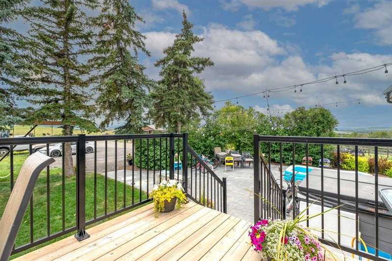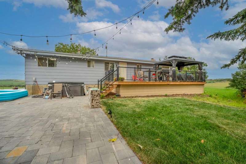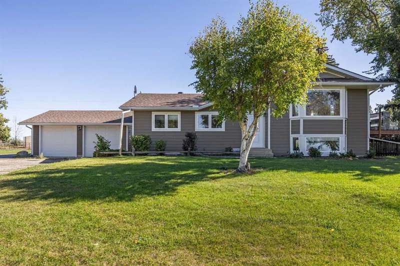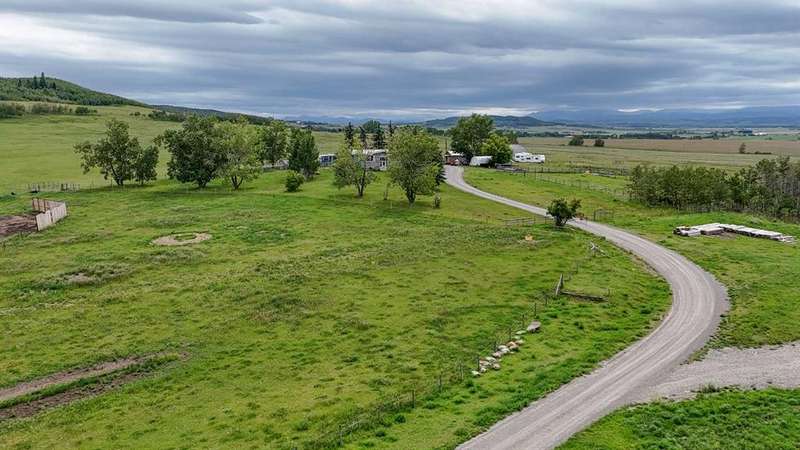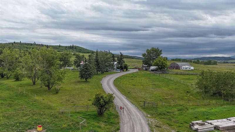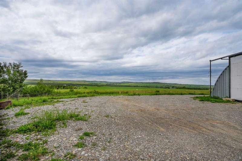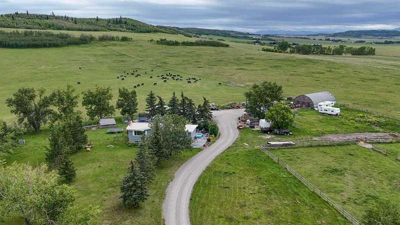Welcome to your dream country retreat, nestled on 145.11 acres in picturesque Foothills County. Perfectly set up for cattle, horses, or any four-legged friends you wish to raise, this property features mature trees, rolling pastures, and 180-degree unobstructed views of the Rocky Mountains and Foothills, offering the ultimate rural lifestyle—just minutes from Diamond Valley and Okotoks. The 1,300 sq. ft. bilevel home is warm and inviting, with five bedrooms and three full bathrooms, ideal for family living. Enjoy cozy evenings by the wood-burning fireplace, and host gatherings on the expansive outdoor patio and large back deck, where you can watch breathtaking sunsets over the hills. Families will also appreciate school bus service to both public and Catholic schools, ensuring convenient access to education while still enjoying the peace of country living. For livestock and equipment needs, the property is exceptionally well-equipped with a drive-through Quonset featuring horse stalls, a second Quonset ideal for equipment storage, and an additional shed for extra space. All outbuildings are powered with electricity, while stock waterers and strategically placed water hydrants ensure convenience and efficiency for your animals and operations. The land is cross-fenced, making it ideal for grazing and easy livestock management. This acreage offers the best of both worlds when it comes to location and accessibility. It sits along Highway 7, providing excellent year-round access for cattle, agricultural, or commercial operations. Moving livestock, hauling equipment, or transporting goods is effortless with the direct highway frontage—yet the home itself is set far enough back from the road, surrounded by mature trees and natural landscaping, creating a peaceful, private setting where you won’t hear the traffic. There is also an opportunity to lease the land to a neighboring farmer, offering potential supplemental income or an option for those who want to enjoy the rural lifestyle without actively farming the entire acreage. Ask for further details on leasing arrangements. This prime location offers the perfect balance of rural serenity and convenience, situated just minutes from Diamond Valley, Okotoks, and all essential amenities. From the “Back 40,” you’ll enjoy incredible panoramic views of the rolling Foothills and the majestic Rocky Mountains, creating a truly breathtaking backdrop for your country lifestyle. Whether you’re looking for a working cattle operation, an equestrian setup, or a private countryside escape, this property is a rare find with endless potential. Don’t miss this opportunity to own a true Foothills gem with room to grow, play, and thrive!