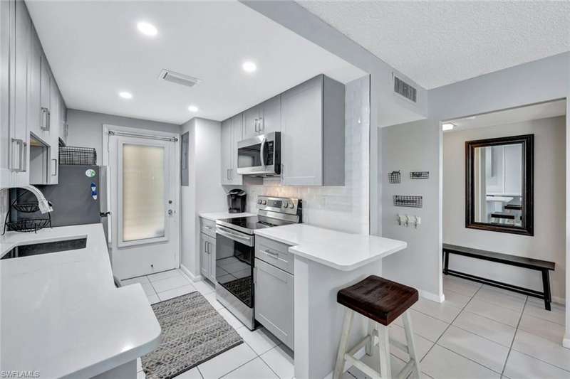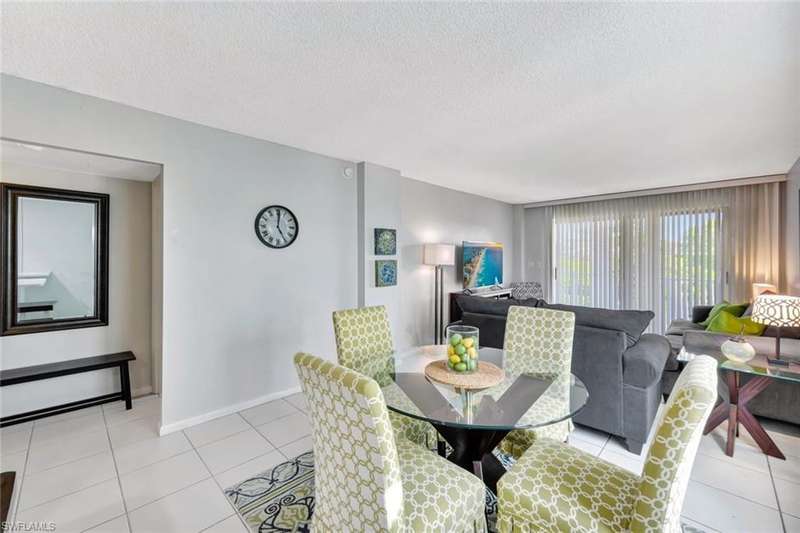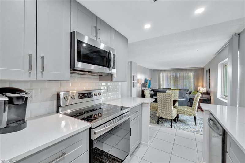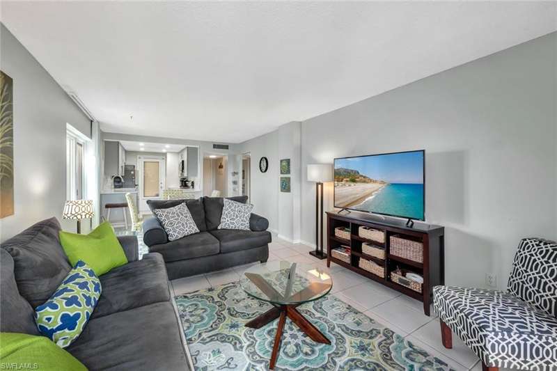 Escape to paradise in this beautifully updated 2-bedroom, 2-bath vacation rental, ideally located on Gulf Shore Boulevard N in Naples coveted Coquina Sands neighborhood. JUST STEPS from the soft sands of Lowdermilk Park Beach, this fourth-floor end unit offers an inviting coastal retreat with modern amenities and an unbeatable location. Inside, you ll find a bright, welcoming space with tile flooring throughout and a remodeled kitchen that s sure to impress. The kitchen boasts modern cabinetry, a stylish tile backsplash, quartz countertops, recessed lighting, and stainless steel appliances perfect for cooking and entertaining. The open living and dining areas flow seamlessly onto a private lanai, where you can enjoy peaceful views and the tranquil Naples breeze. The master suite is a sanctuary of comfort, complete with a king bed, direct lanai access, and a spa-like en-suite bathroom featuring a quartz-topped vanity and a glass-enclosed walk-in shower. The guest bedroom, furnished wi