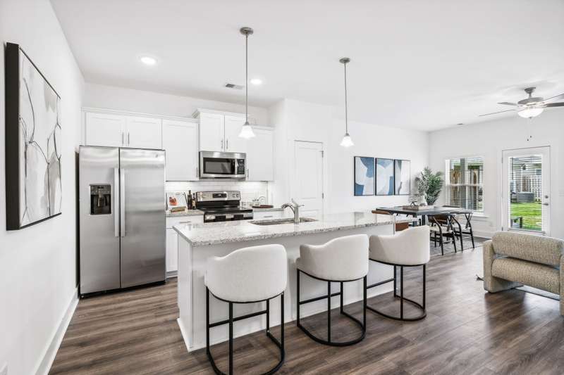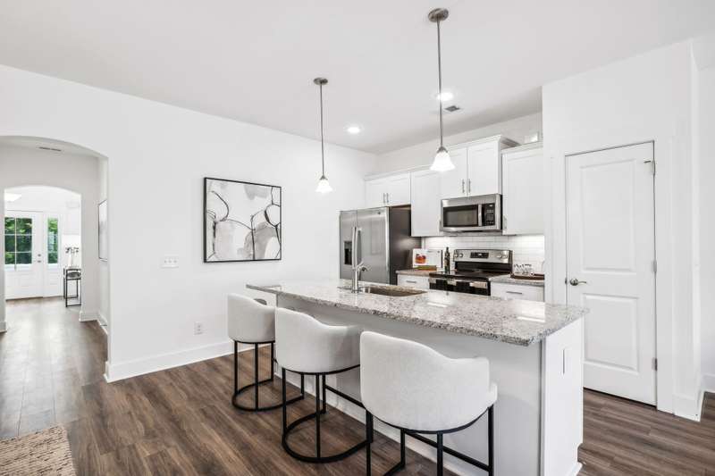 Welcome to your new home in the sought-after Simmons Ridge Community in Franklin. This move-in ready townhome features 3 bedrooms and 2.5 baths with a thoughtfully designed open-concept layout that unites the kitchen, dining, and living spaces. The modern kitchen, equipped with a large island, granite countertops, and stainless steel appliances, offers plenty of space for both cooking and seating. Upstairs, the expansive primary bedroom includes an en-suite bathroom with double vanities, providing a serene escape. The covered deck is perfect for unwinding or entertaining. Additional perks include an attached one-car garage, driveway parking, and ample guest parking. Simmons Ridge also provides excellent community amenities like a pool with a clubhouse, walking trails, and a playground. Don't miss your chance to call this stunning townhome your own!