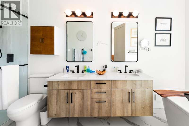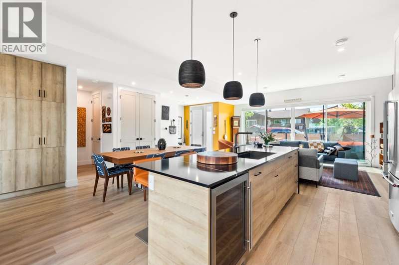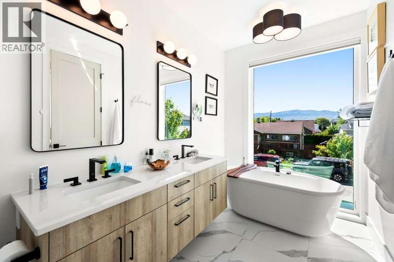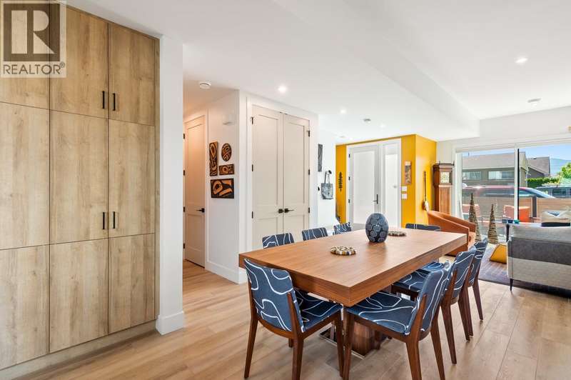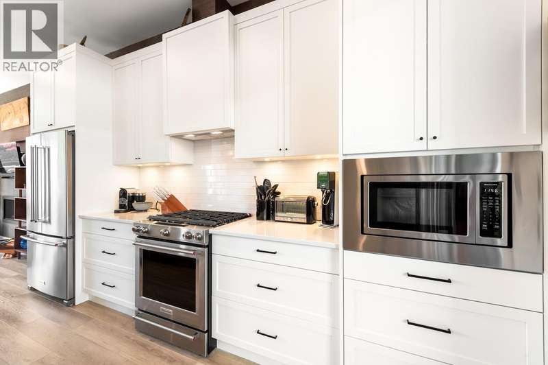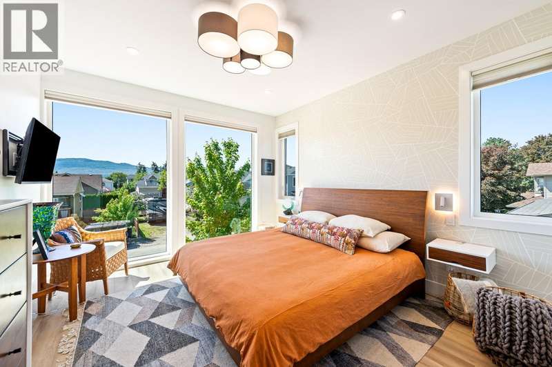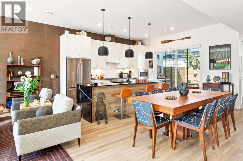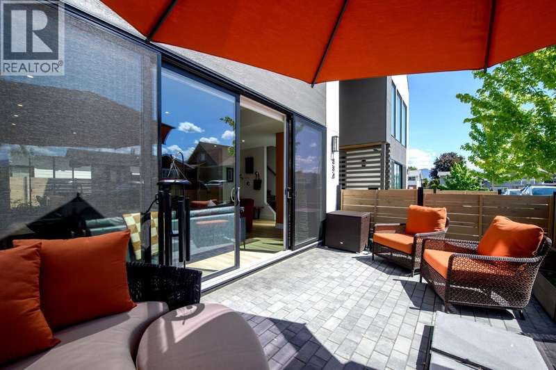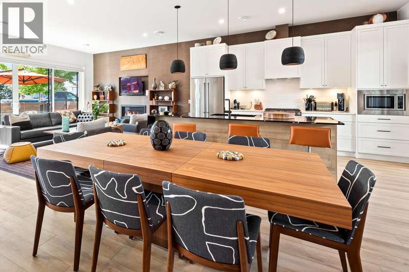 Stunning luxury townhome in the heart of Kelowna South, just steps to beaches, restaurants, shops, and cafes. This modern barn-style design features a spacious open layout, oversized windows, and a sun-soaked south-facing exposure. Enjoy 3 bedrooms, 2.5 baths, and upscale finishings throughout: vinyl plank and tile flooring, quartz counters, a 42” linear gas fireplace, and a fenced backyard. The highlight is a spectacular rooftop patio with panoramic mountain views, custom outdoor kitchen, Dekko fire pit, and automated pergola system. Thoughtfully upgraded with Lutron app-controlled lighting, custom blinds, Nest thermostat, wine fridge, custom cabinetry, river rock fireplace insert, garage storage lift, EV-ready garage, Ring security system, and more. Pets welcome—bring 2 dogs (breed restrictions apply) and 2 cats! This is your chance to own a one-of-a-kind home in one of Kelowna’s most desirable neighborhoods. (id:7434)