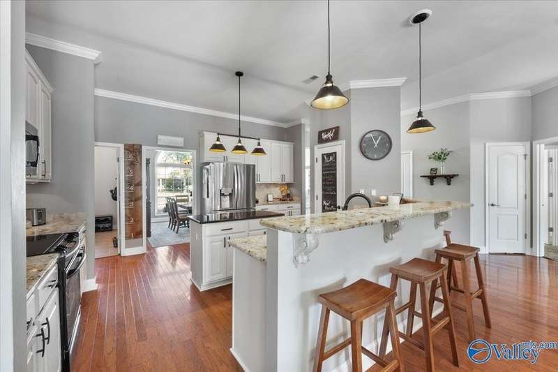 Beautiful one-story brick home in the sought-after Creekstone community! This cul-de-sac stunner features 4 bedrooms, 4 baths (including a Jack-and-Jill) plus an office. Functional layout and gorgeous kitchen granite countertops. Enjoy your own backyard oasis with an 8-ft SALTWATER pool complete with a new (2024) liner, (2022) pump, and (2024) salt cell. Enjoy so many entertaining areas outside with a metal pergola with electricity! The spacious covered porch (230 sq ft) offers two entrances for seamless indoor-outdoor living. HVAC 2023, water heater 2019. Convenient to top schools, 10 min. to Jones Valley, 12 min. to downtown HSV, 20 min to Research Park & 5 min to Mark Russell Rec Center