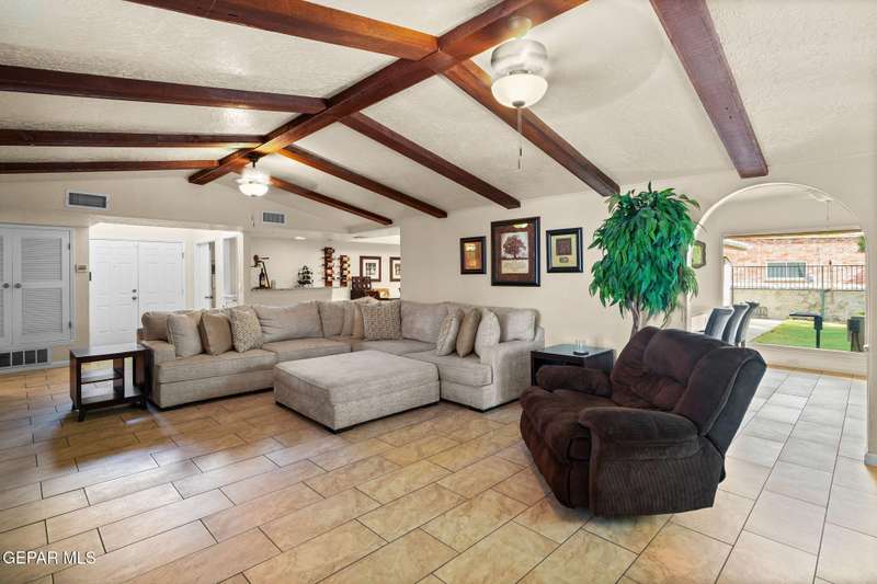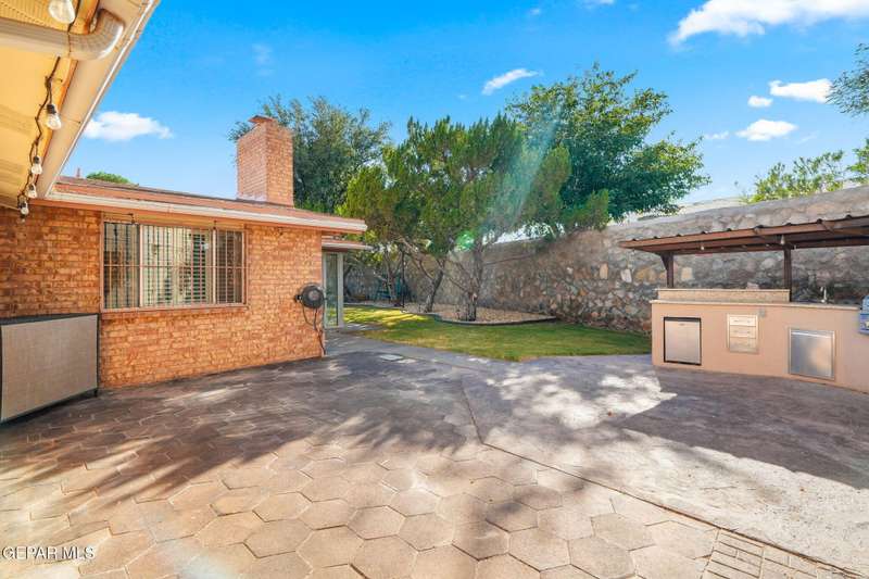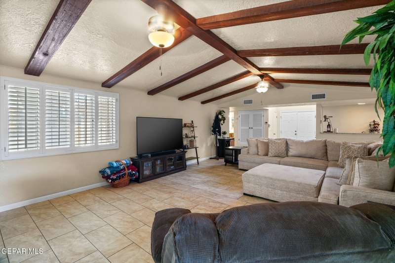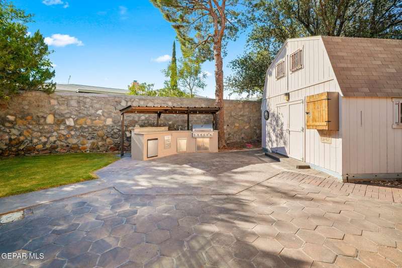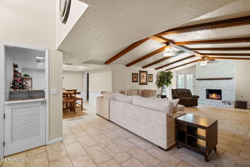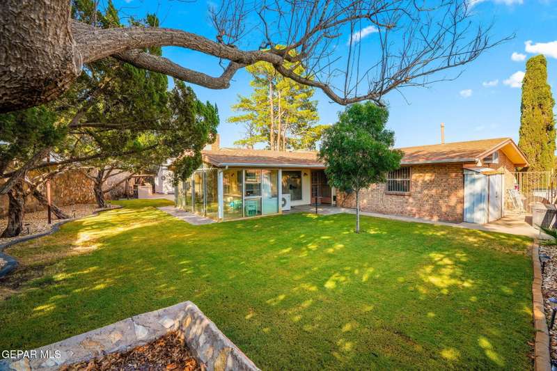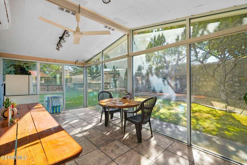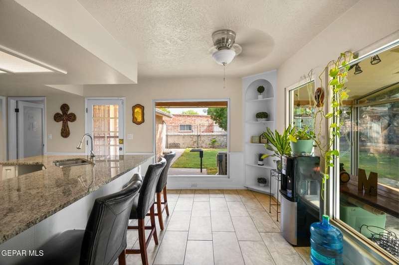 Welcome to 10901 Bill Collins, nestled in the highly desired Vista Del Sol subdivision. Situated on a quarter acre cul-de-sac lot, this home offers both space and privacy in one of El Paso's most established neighborhoods. Recently renovated, the home features new tile flooring throughout, carpet in the bedrooms, granite countertops, stainless steel appliances, and updated vanities in the bathrooms. Fresh paint highlights the home's beautiful wood beamed ceilings, while a newly finished brick veneer fireplace becomes the centerpiece of the living room.The inviting formal dining area with a wet bar is perfect for entertaining, while the sunroom with mini-split provides a versatile flex space.Step outside to a backyard built for gatherings complete with a built-in grill, sod, freshly poured concrete, and a converted Tuff Shed that's fully insulated with its own mini split. Currently enjoyed as a man cave, this bonus space offers endless possibilities. This turn key home is a must see! Contact me today