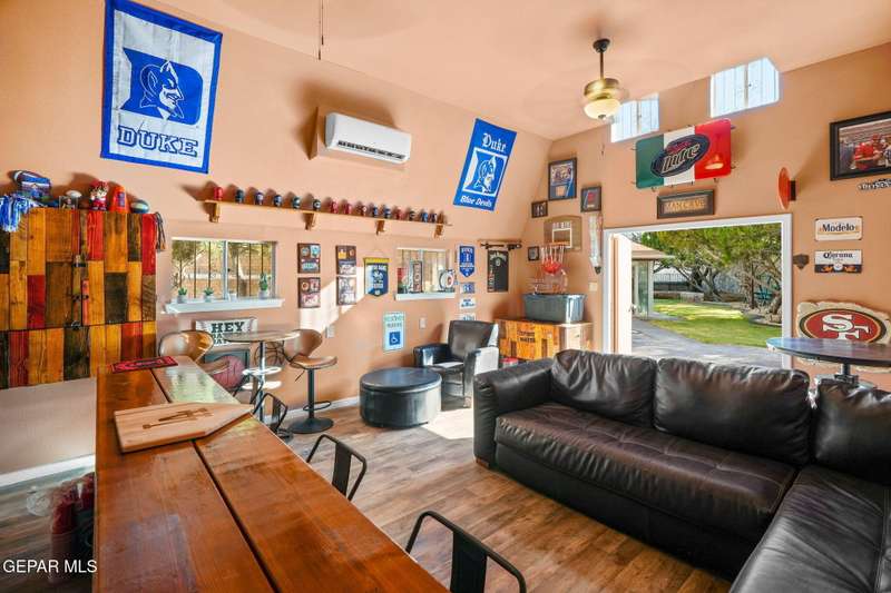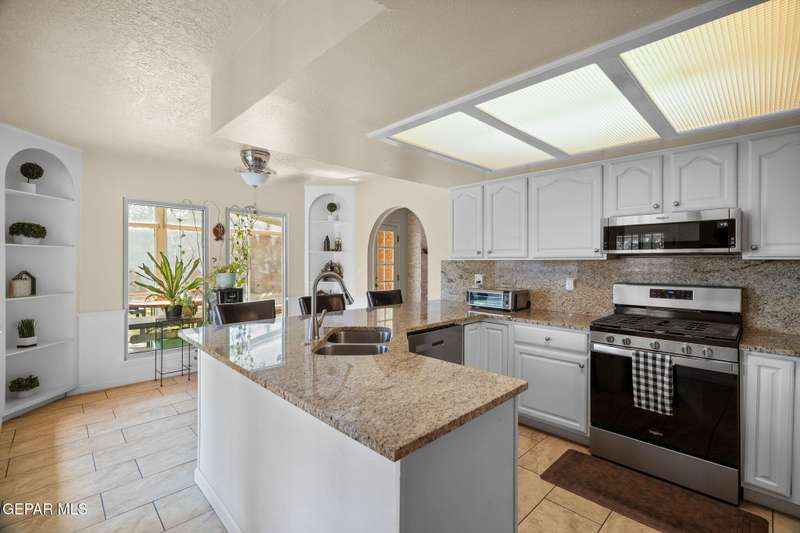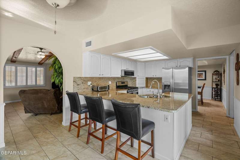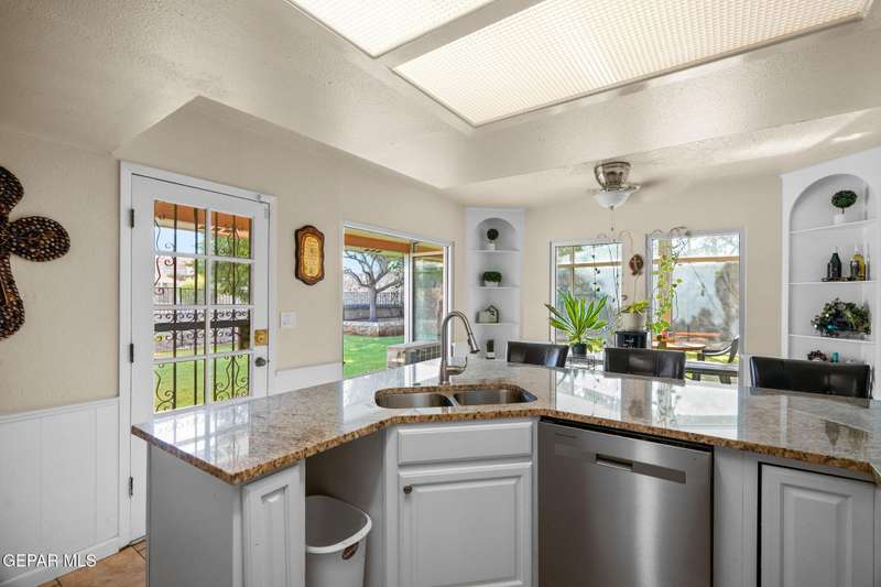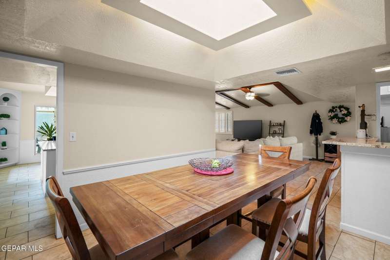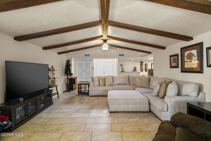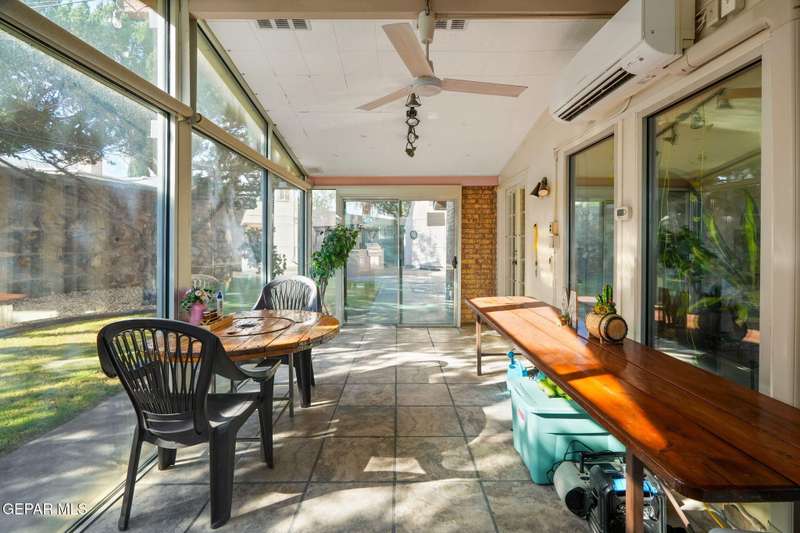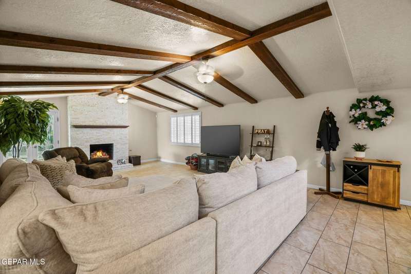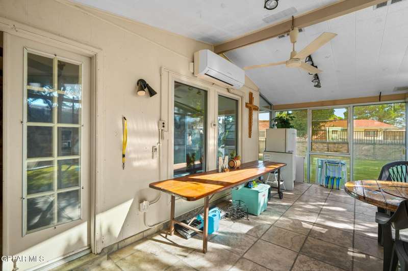 Welcome to 10901 Bill Collins, nestled in the highly desired Vista Del Sol subdivision. Situated on a quarter acre cul-de-sac lot, this home offers both space and privacy in one of El Paso's most established neighborhoods. Recently renovated, the home features new tile flooring throughout, carpet in the bedrooms, granite countertops, stainless steel appliances, and updated vanities in the bathrooms. Fresh paint highlights the home's beautiful wood beamed ceilings, while a newly finished brick veneer fireplace becomes the centerpiece of the living room.The inviting formal dining area with a wet bar is perfect for entertaining, while the sunroom with mini-split provides a versatile flex space.Step outside to a backyard built for gatherings complete with a built-in grill, sod, freshly poured concrete, and a converted Tuff Shed that's fully insulated with its own mini split. Currently enjoyed as a man cave, this bonus space offers endless possibilities. This turn key home is a must see! Contact me today