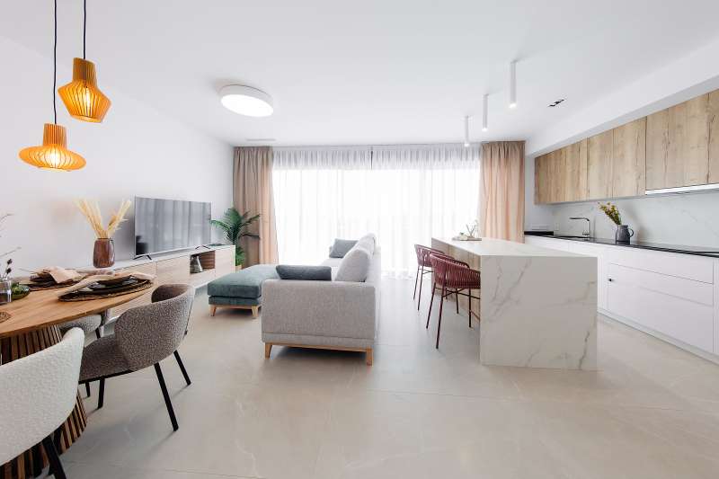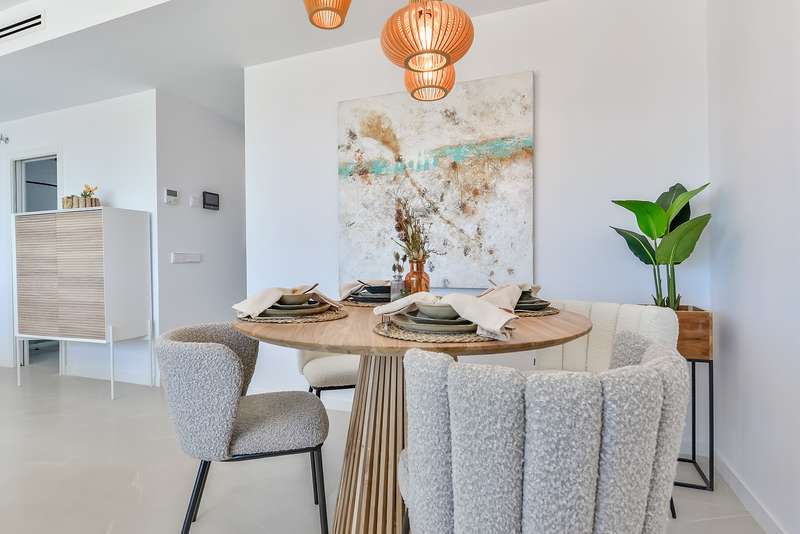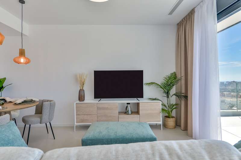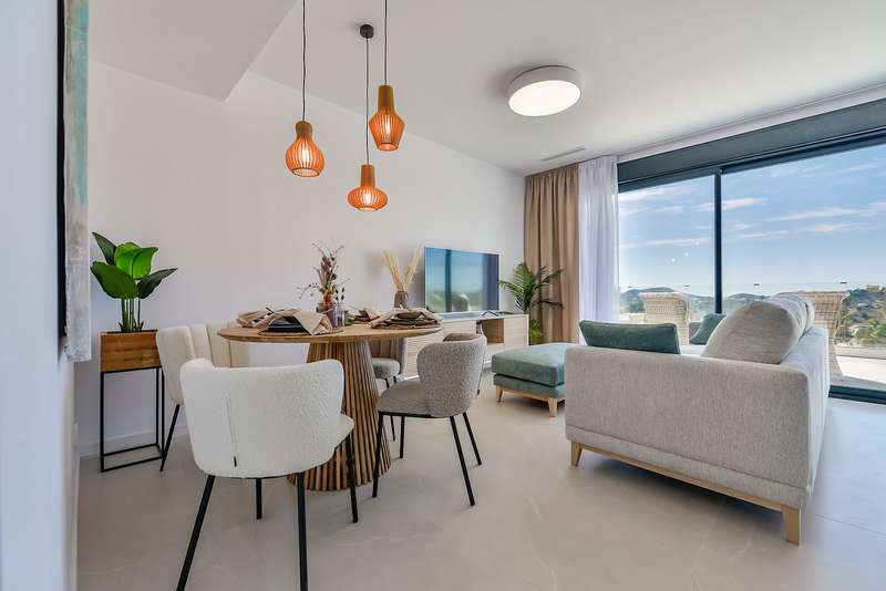 Finestrat provides an array of amenities catering to a comfortable lifestyle. A brief stroll from the properties for sale in Finestrat, Alicante will lead you to a spacious shopping precinct, encompassing supermarkets, diverse shops, and an array of restaurants. Medical centers and schools are similarly accessible within a short distance. Surrounding municipalities like Calpe or Altea are a convenient 25-minute drive away, while the adjacent Benidorm city offers an outstanding skyline and a year-round calendar of events and activities. Benidorm encompasses an array of daily and social amenities including restaurants, shops, discos, and more. The town's strategic connection to the Alicante Airport via the AP-7 motorway ensures that the journey to the airport from the complex takes less than 40 minutes.