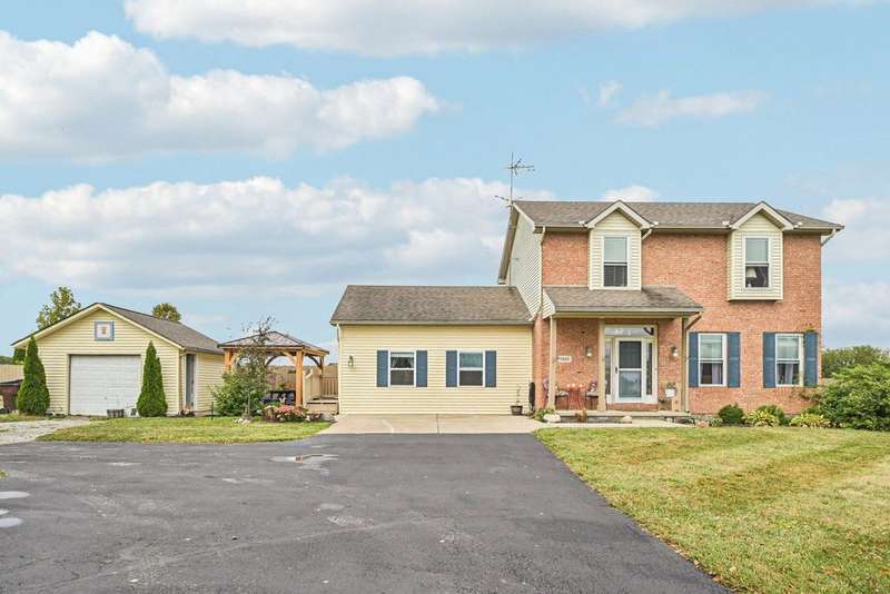 Discover this beautifully updated Colonial-style two-story home, featuring 4 bedrooms, 3.5 baths, and just over 2,000 sq ft of living space, all set in a peaceful country setting with incredible sunset views. A recent addition offers versatile space -- currently designed as a salon but easily converted into a private master suite with bath or a convenient in-law suite. This home has been thoughtfully improved inside and out. Updates include new windows with blinds, a sliding glass door, fresh paint, shutters, updated electric with new outlets and switches, a Hague water softener, and a new well pump. Outdoor living shines here with an above-ground pool, hot tub on the back deck. A concrete patio connects the home to the one-car garage with a wood hardtop gazebo. A new outbuilding with fencing ((40X64X14 w/loft) and a pasture area, makes this property perfect for hobbies, small animals, or a mini farm setup. With its flexible floor plan, countless updates, and country charm, this home is move-in ready and designed for both comfort and entertaining. Don't miss the chance to own a property that truly offers something for everyone -- from peaceful evenings on the deck to hosting friends and family by the pool, Schedule your private showing today!