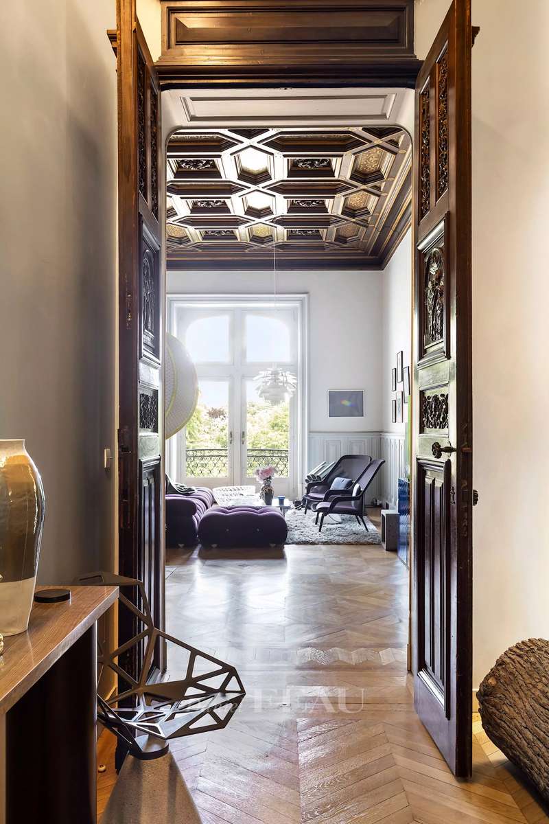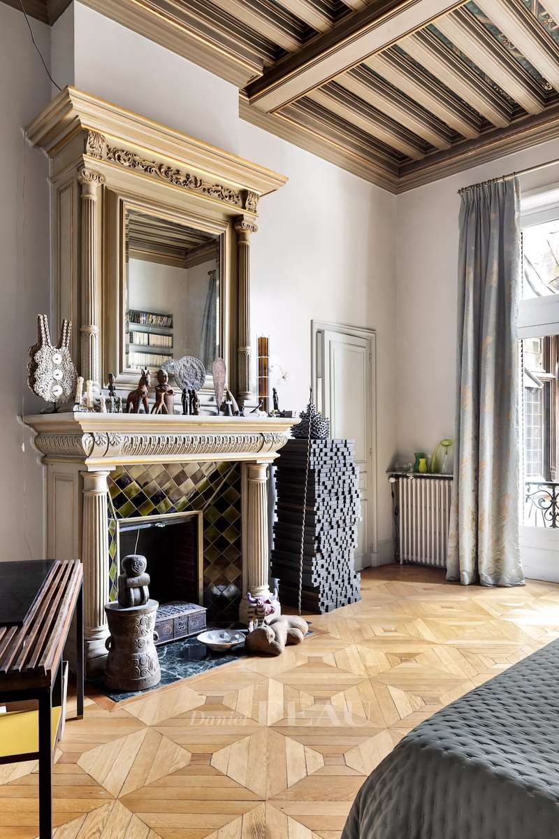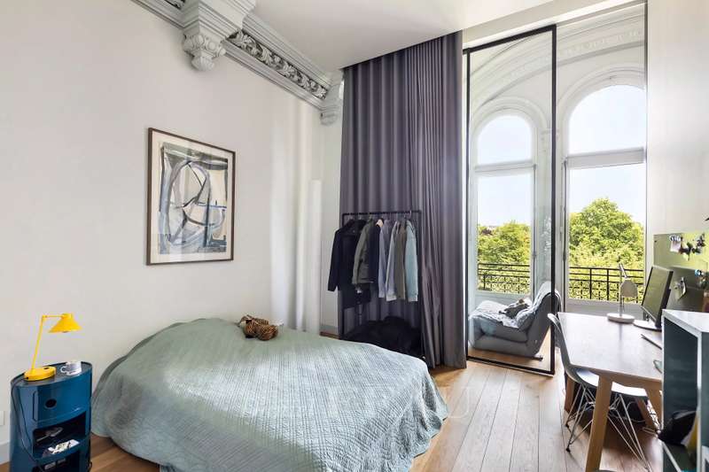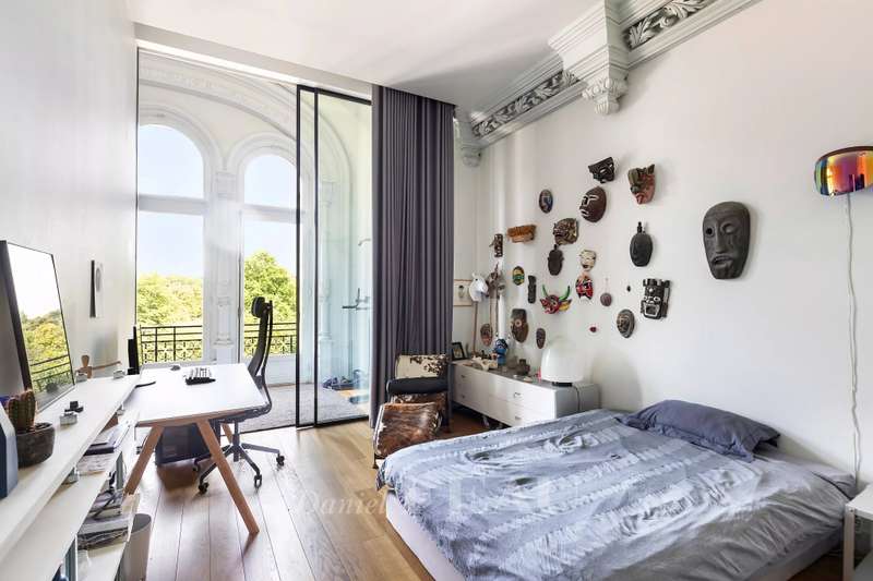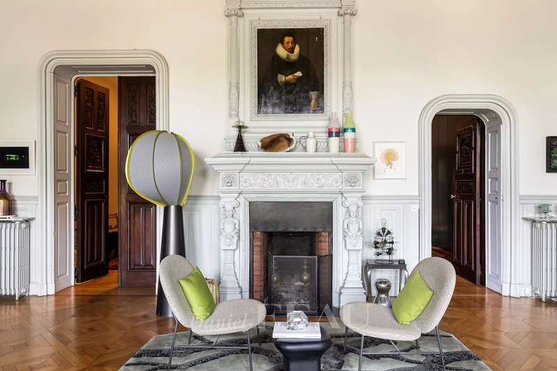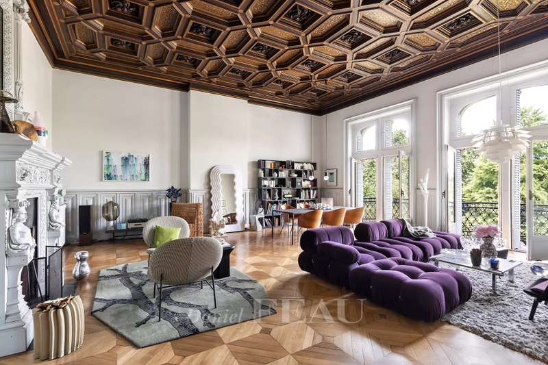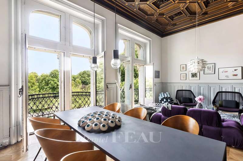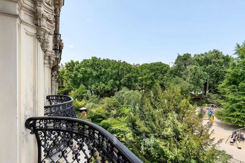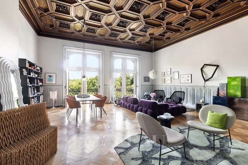 This sublime near 270 sqm apartment is on the 1st floor of a fine late 19th century private mansion designed by renowned architect Henri Parent for the illustrious Menier family. It includes a spacious living/reception room commanding a spectacular view of leafy Parc Monceau, a kitchen with dining facilities, a master bedroom with a bathroom and shower room, two bedrooms, a bathroom, a study and a home cinema. Period features include remarkable over 4.20 metre high box ceilings, panelling and fireplaces.