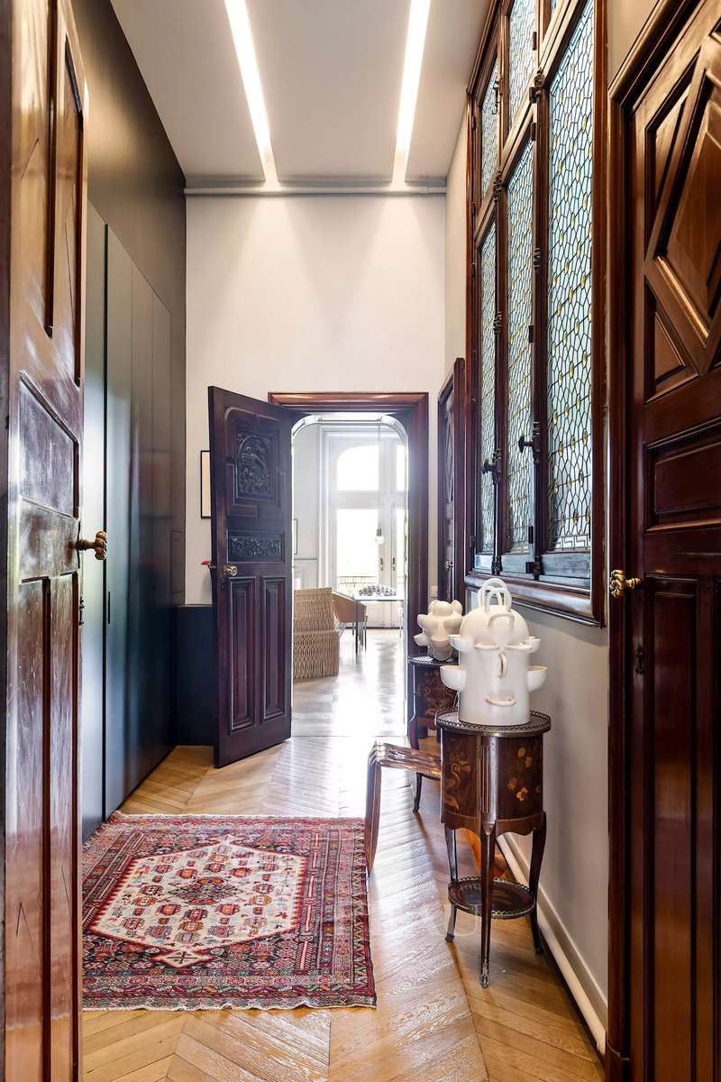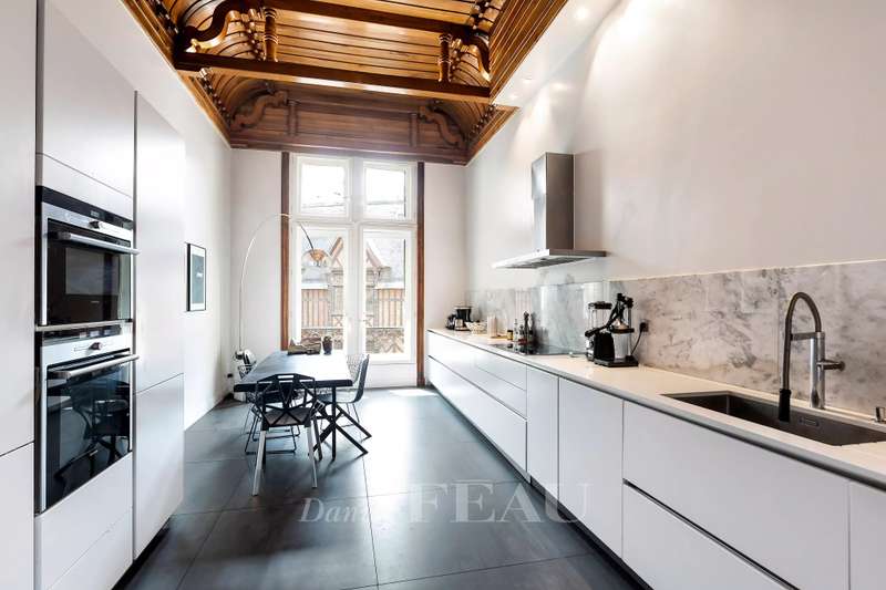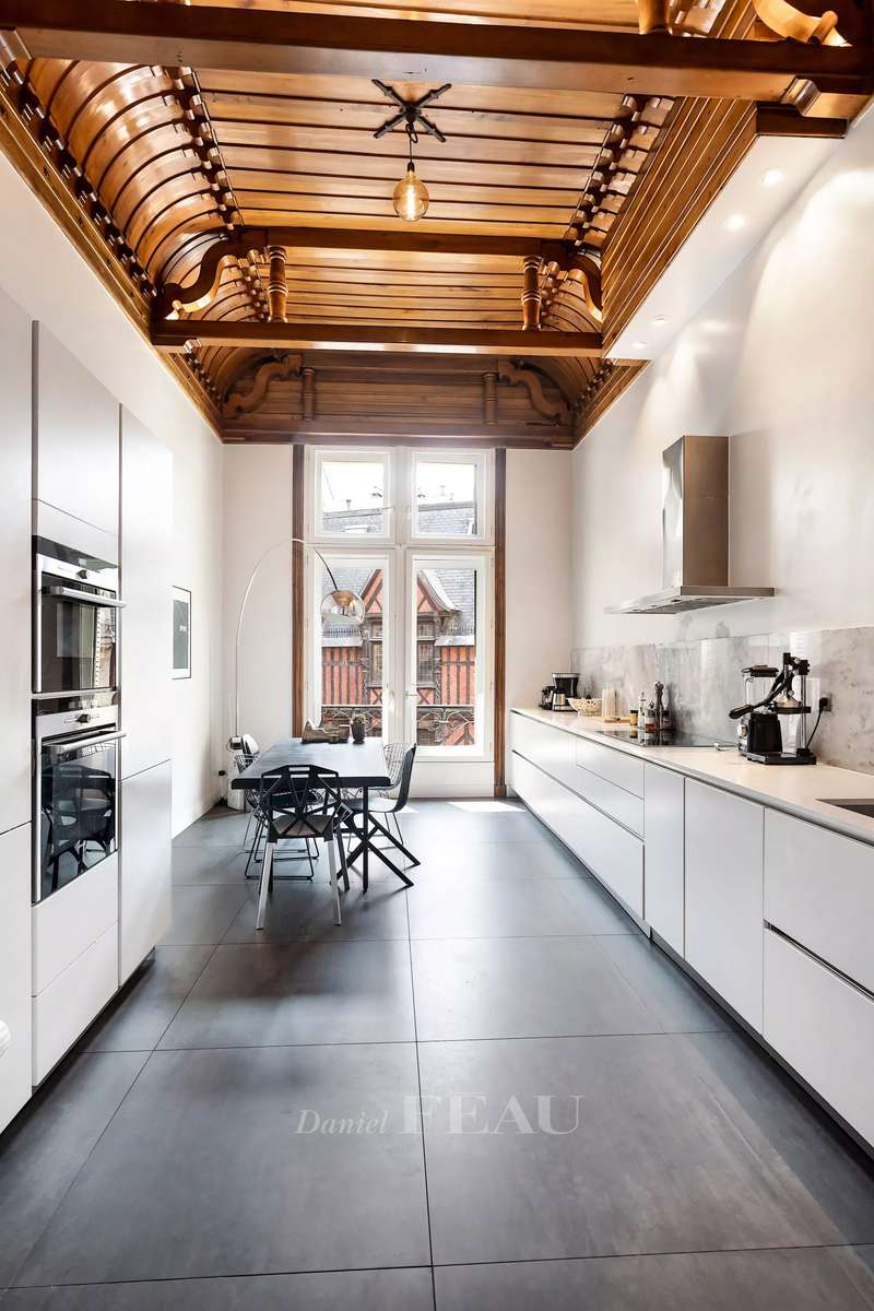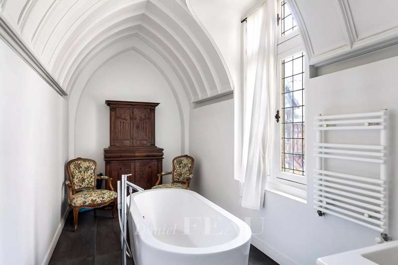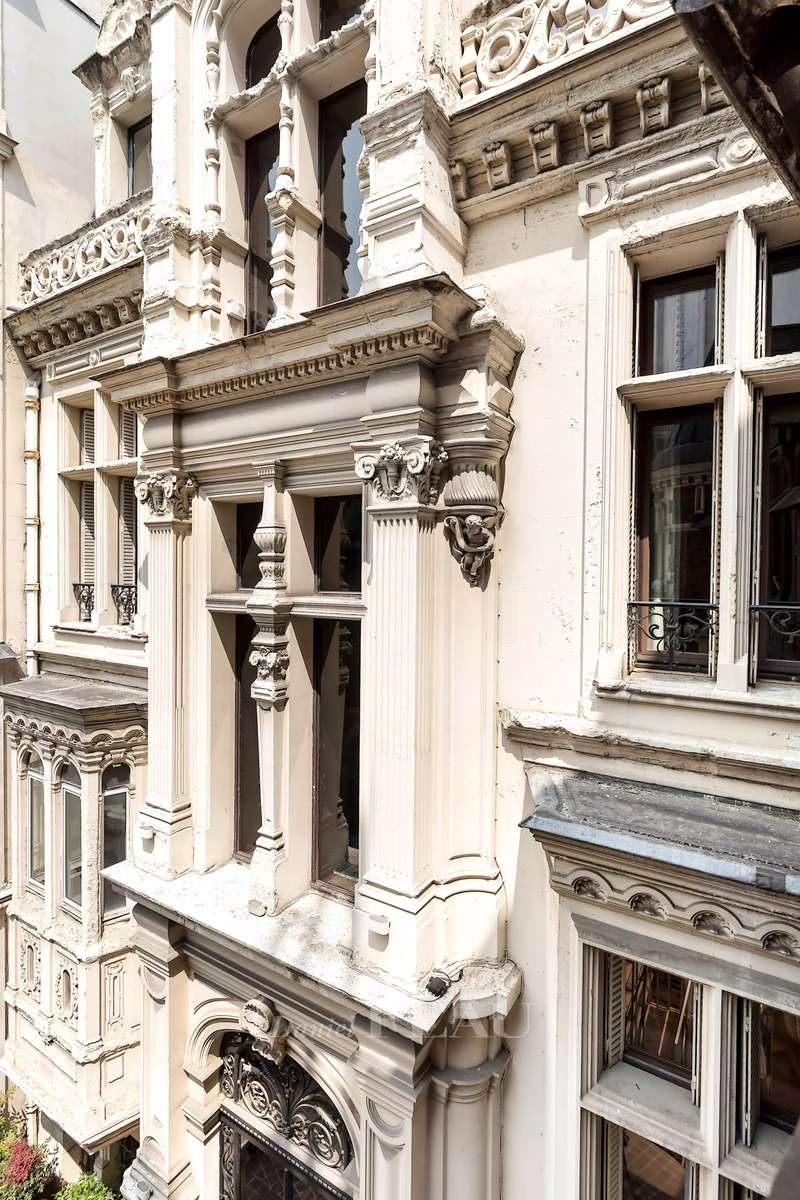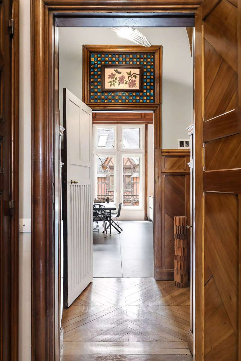 This sublime near 270 sqm apartment is on the 1st floor of a fine late 19th century private mansion designed by renowned architect Henri Parent for the illustrious Menier family. It includes a spacious living/reception room commanding a spectacular view of leafy Parc Monceau, a kitchen with dining facilities, a master bedroom with a bathroom and shower room, two bedrooms, a bathroom, a study and a home cinema. Period features include remarkable over 4.20 metre high box ceilings, panelling and fireplaces.