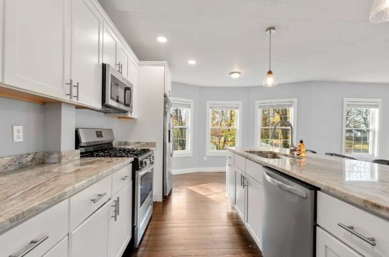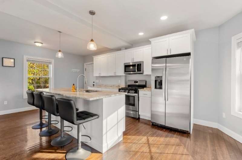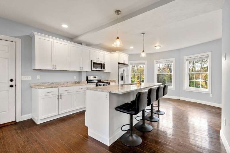 SELLER OFFERING $8,000 IN CONCESSIONS FOR BUYER! This charming Colonial-style home, built in 1900, blends timeless character with thoughtful modern updates. The beautifully renovated kitchen features stainless steel appliances, granite countertops, and a spacious island with bar seating—all flowing into an open-concept dining area. A convenient half bath and a cozy living room complete the main floor. Upstairs, you'll find two large bedrooms, including a primary with a walk-in closet. The full bathroom offers double vanity sinks, a tiled tub/shower, and coordinating tile floors. Hardwood floors run throughout the home, adding warmth and continuity. Outside, enjoy a fenced-in yard with a patio—ideal for relaxing or entertaining. A large, classic barn on the property adds charm and additional storage or hobby space. Most updates completed in 2021/2022. Solar panels installed in 2023 and transferrable to new owner.