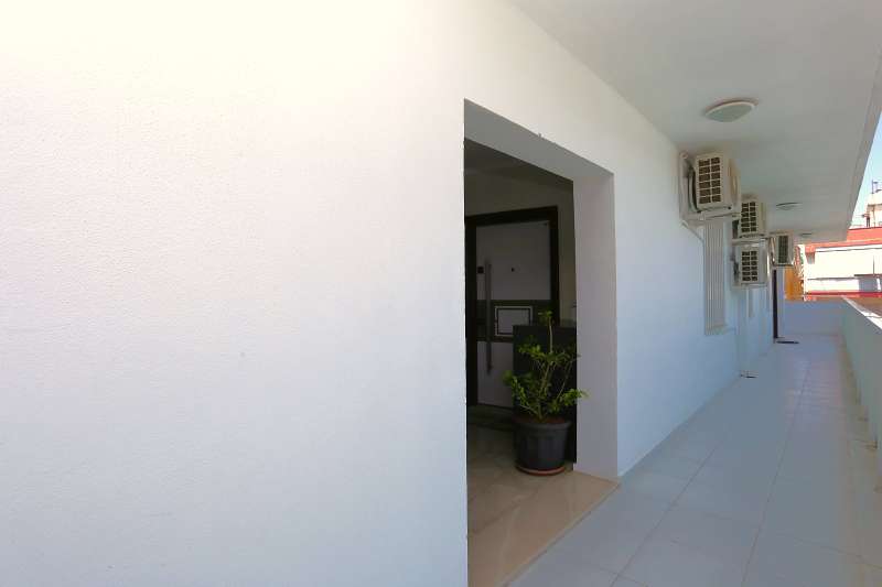 The 3-bedroom apartment features two living rooms, a separate kitchen, and a bathroom. There is a shared balcony on the floor.
