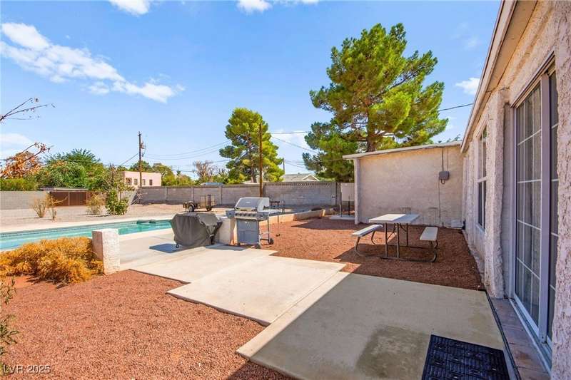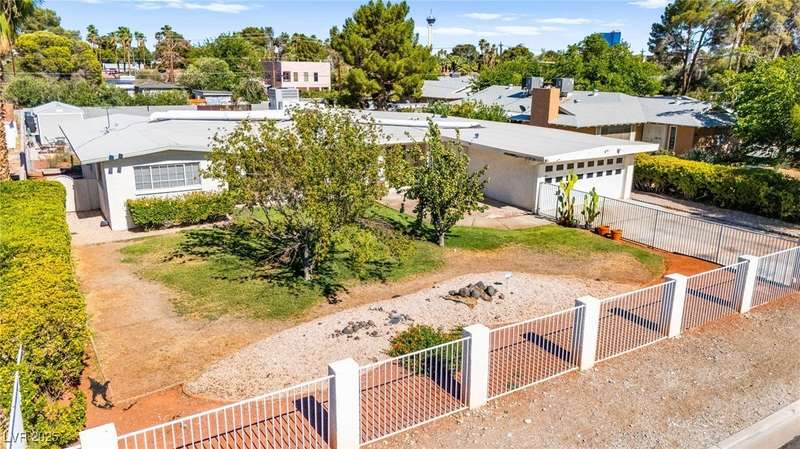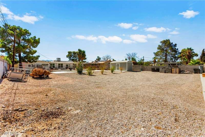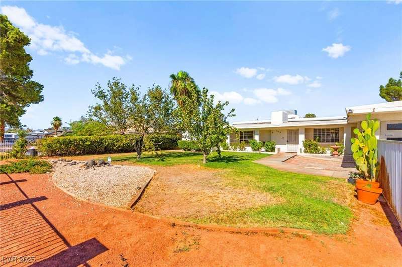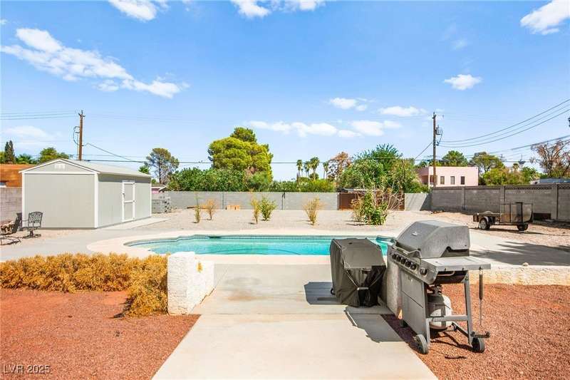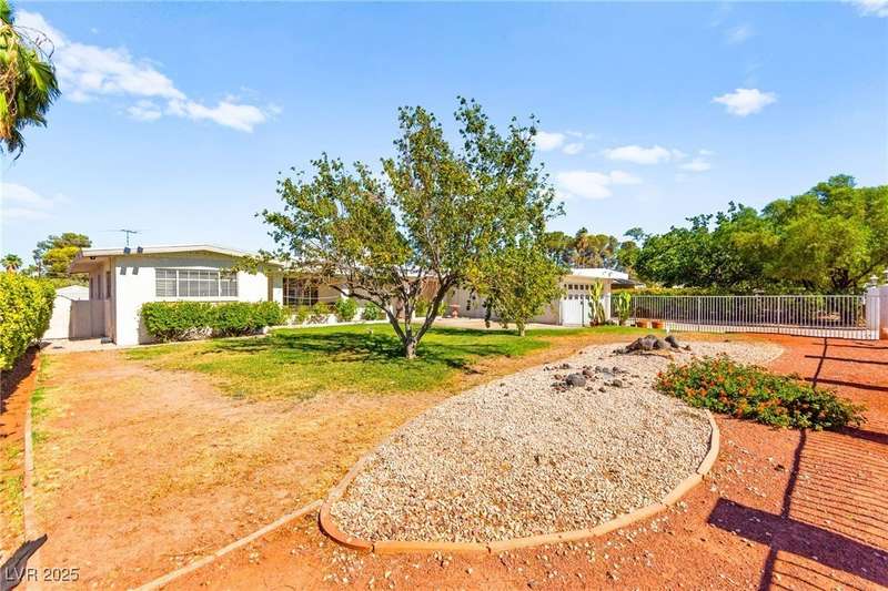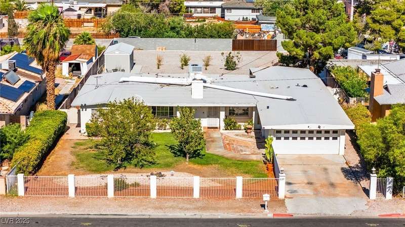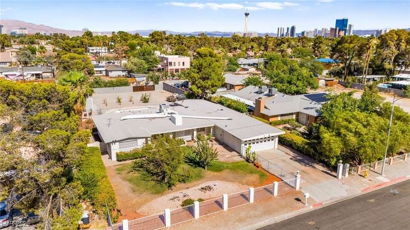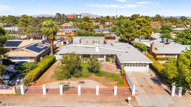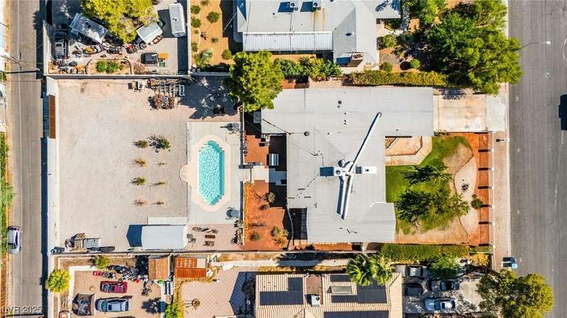 Mid-century modern vibes on nearly half an acre in central Las Vegas! This single-story 3 bed, 3 bath home offers 2,194 sq ft of living space with original character and stylish updates throughout. Sitting on a 20,473 sq ft lot with a 20’ sliding gate and alley access, it features an updated kitchen with stainless steel appliances, newer HVAC, water heater, and a tough shed. The quirky floor plan includes two unpermitted additions not reflected in the listed square footage or price, offering added potential. The large pool is ready for your POOL PARTY! Prime location near freeways, Las Vegas Strip, and Arts District! Potential for ADU/additional dwelling and outdoor enhancements with this massive lot.