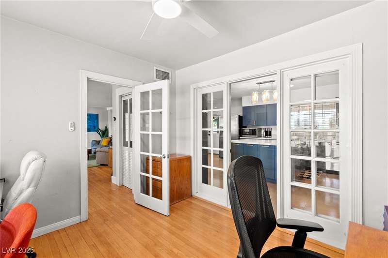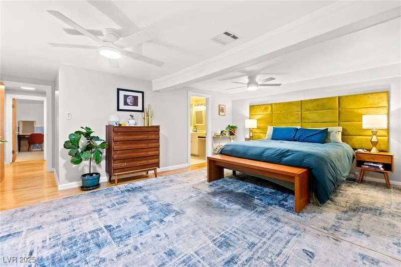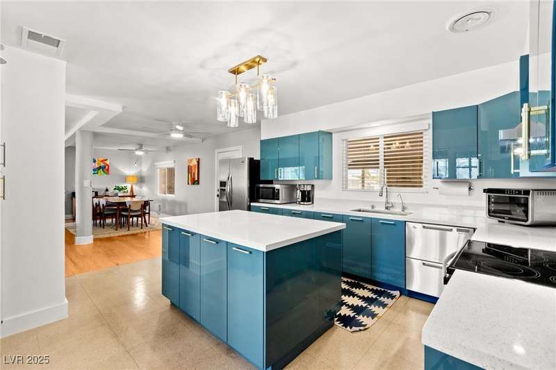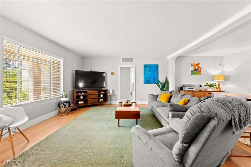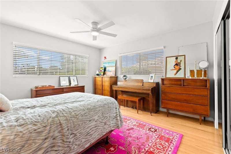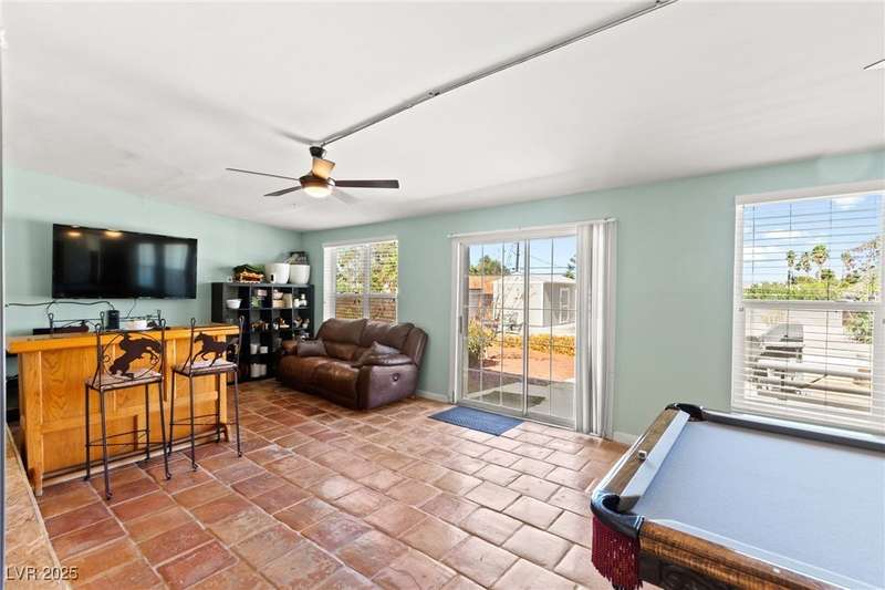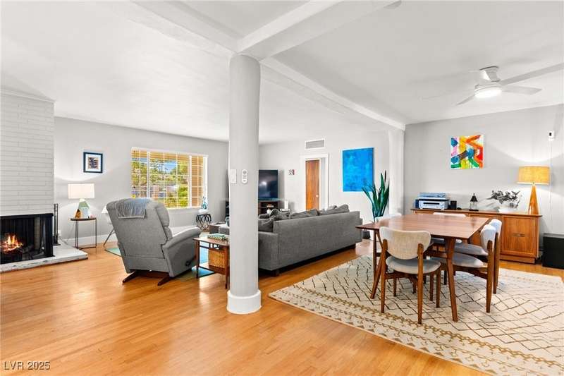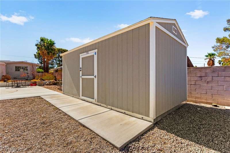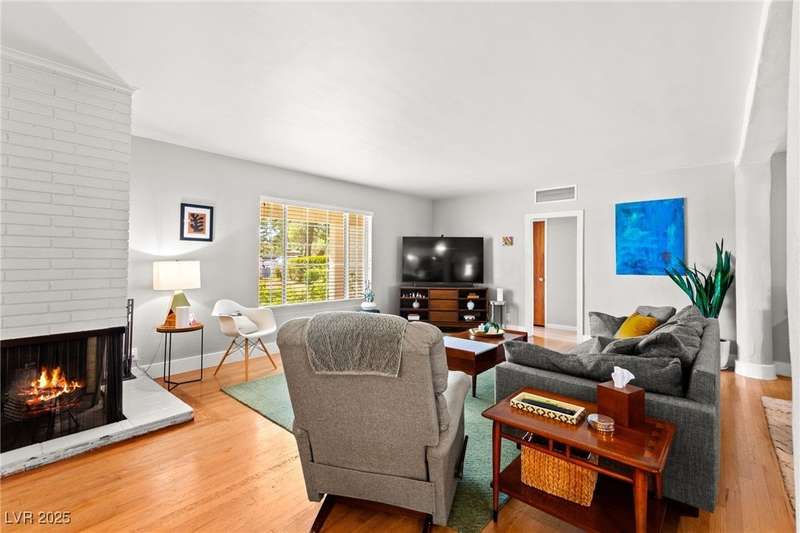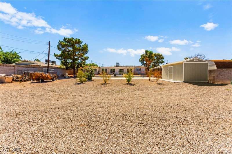 Mid-century modern vibes on nearly half an acre in central Las Vegas! This single-story 3 bed, 3 bath home offers 2,194 sq ft of living space with original character and stylish updates throughout. Sitting on a 20,473 sq ft lot with a 20’ sliding gate and alley access, it features an updated kitchen with stainless steel appliances, newer HVAC, water heater, and a tough shed. The quirky floor plan includes two unpermitted additions not reflected in the listed square footage or price, offering added potential. The large pool is ready for your POOL PARTY! Prime location near freeways, Las Vegas Strip, and Arts District! Potential for ADU/additional dwelling and outdoor enhancements with this massive lot.