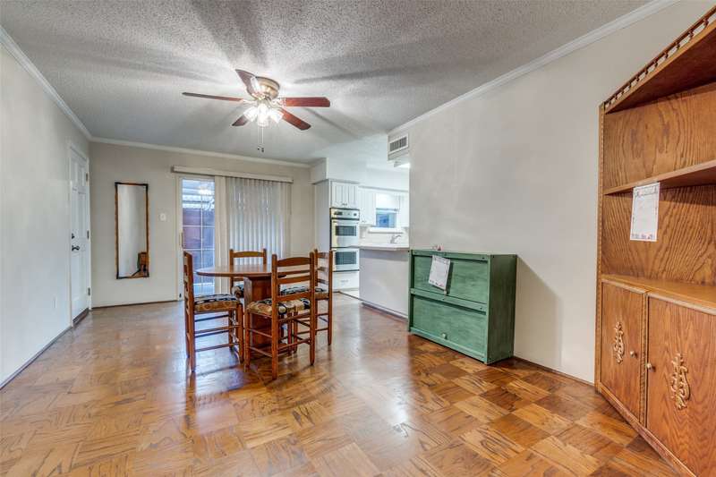 Good looking downstairs unit wit 2 covered assigned parking spaces right next to back door ingated lot. Bright & spacious condo with 2 liv areas, 2 big bedrooms, 2 full baths, plus acovered fenced patio. Fab walkable location just block to hike & bike trl, minutes to SMU,Central Mkt, restaurants & shopping. Mfd hdwds & plantation shutters throughout withstainless appliances in kitchen (refrigerator stays) & replaced cab doors. 2 walk-in closets inprimary bedroom. Guest bdrm has walk-in closet & door to 2nd bath. In addition to main livingarea theres a small den open to kitchen with a breakfast bar. Coin-op washer & dryer in hallimmediately outside den door. Fantastic layout with lots of space. Community has nice poolwith club house. HOA INCLUDE UTILITIES excluding cable & wi-fi. Ideal in every way!