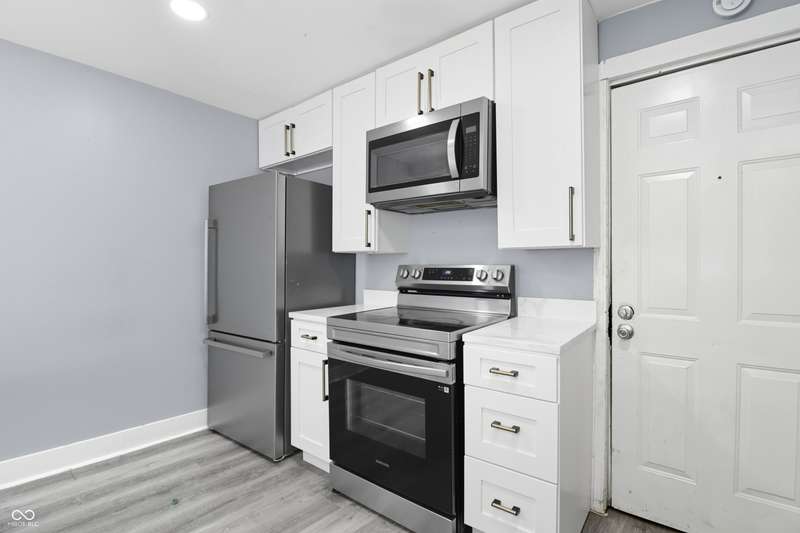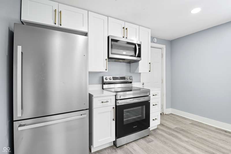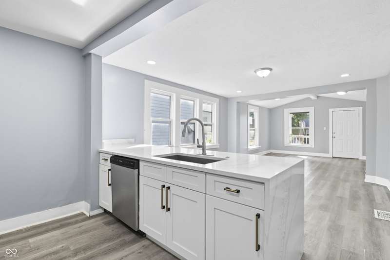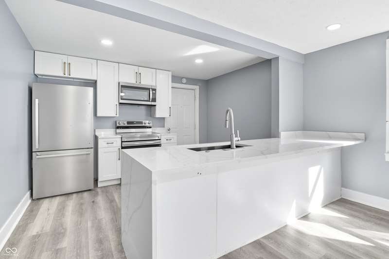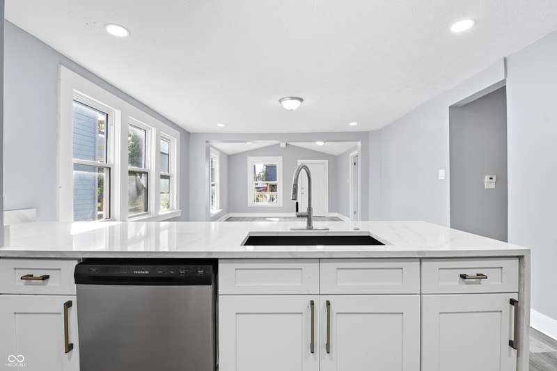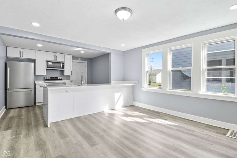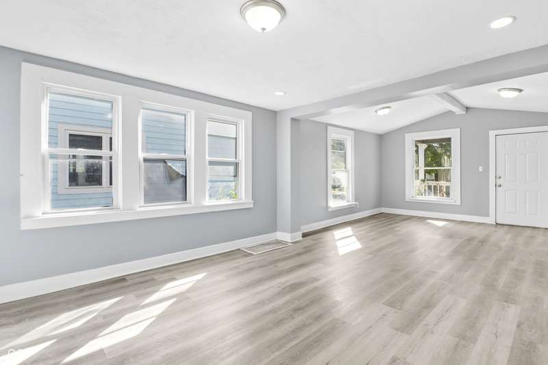Close to Fountain square, Garfield Park, and Downtown, you'll want to check out this updated home! Walk into your open floor-plan where you'll find your living, dining, and updated kitchen. Stone countertops, Stainless steel appliances, and huge Island stand focal point to your bright and airy entertaining space. Downstairs you'll find two bedrooms (or one bedroom and an office), and laundry room and one full bath tucked in the rear by the stairs. Upstairs you'll find two additional bedrooms and one full oversized bath. Both front yard, and back yard lounging area, with a front covered porch and rear deck. Tons of storage and a great location, come check this house out today!