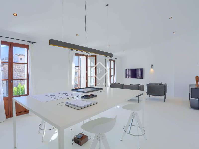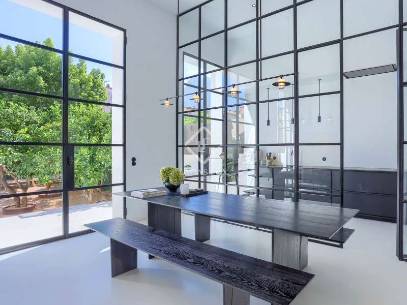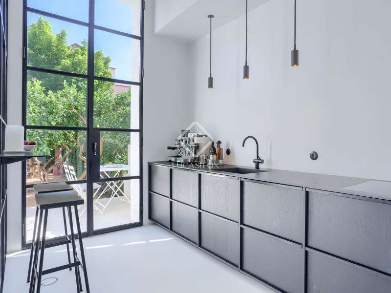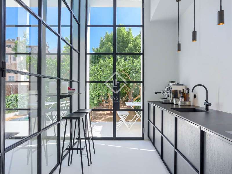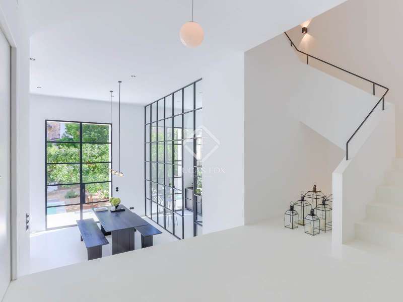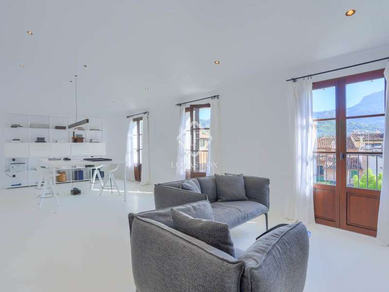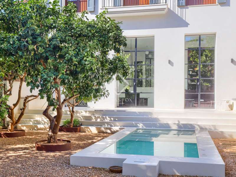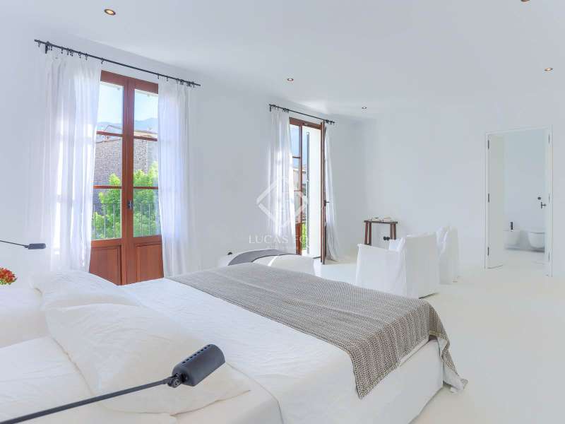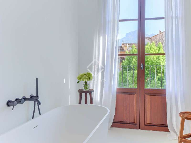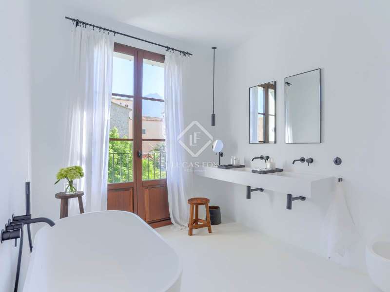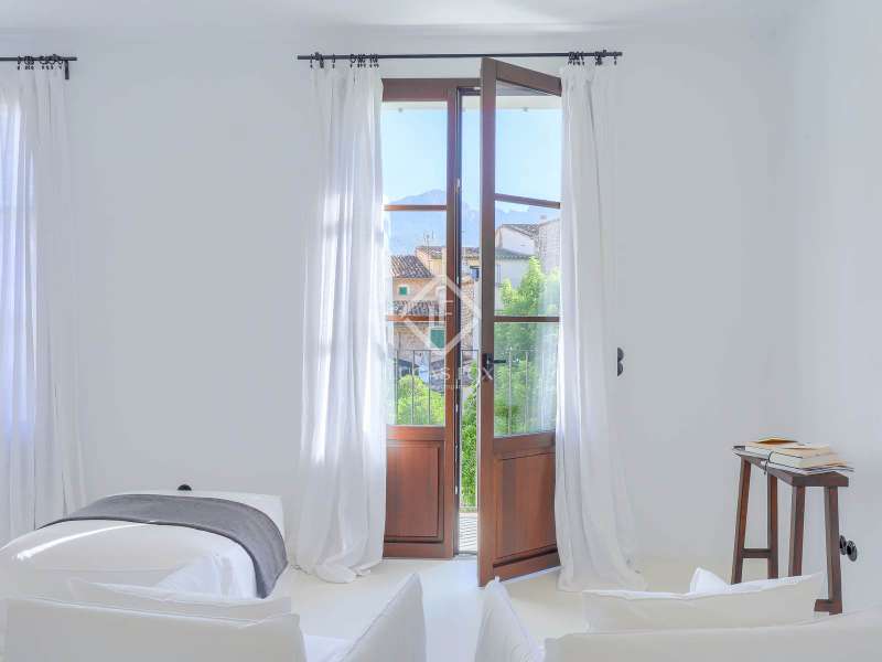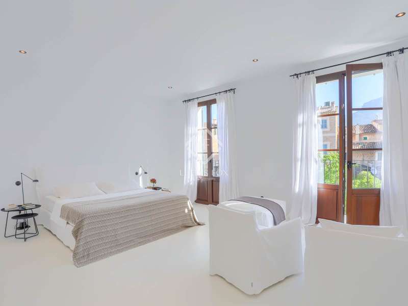 In the heart of Sóller in the most beautiful street, surrounded by the dramatic Tramuntana mountains and bathed in Mediterranean light, a townhouse has emerged that tells a new story of Mallorcan living. Completed in 2023, this residence does not imitate the past — it reinterprets it. Here, tradition and modernity coexist in perfect harmony, creating a home that feels timeless yet unmistakably contemporary. Cross the entrance and a sense of calm immediately takes over. White walls, polished microcement floors, and sculptural staircases create a sanctuary where light flows unbroken from room to room. Every surface reflects a philosophy of minimalism with soul — refined, functional, and quietly elegant. The architecture invites you to slow down, to notice the way the evening sun plays with the reflection, or how the handcrafted iron doors cast shadows that change with the day. This is not just a house — it is an experience of design and atmosphere. At its center lies the Espacio Cocinart kitchen, bold in contrast with its black ceramic worktops and state-of-the-art SMEG appliances. It is a space conceived not only for cooking, but for gathering — a backdrop for conversation, laughter, and shared meals. The dining table, crafted by Riva1920, becomes the stage for long summer evenings with friends. In the living area, a Blasco sofa and Divani table create a perfect corner for reflection with a wooden fireplace. Lighting by Contain Studio softly defines each space, while the tactile warmth of Palmer carpentry and Vallone bathrooms elevate daily routines into rituals. Every element has been chosen with intention — Gervasoni beds for restful nights, Nordlux fixtures for ambient comfort. This home is curated, not decorated. Step outside and the story continues. Here, beneath orange, lemon, and avocado trees, the pace of life slows to the rhythm of nature. A turquoise-green pool glimmers in the sun, inviting morning swims or late-afternoon dips. As the day ends, the mountains catch the last golden light, reflecting it across the water and back into the house — a daily theatre of color and stillness. While every detail feels complete, the design looks forward. The top floor has been thoughtfully prepared for an additional kitchen and bathroom, offering the flexibility to create an independent guest apartment or studio. This adaptability ensures the home grows with your needs, whether as a family retreat, a seasonal escape, or a lifestyle investment. The house benefits from Daikin aerotermia system for energy-efficient and sustainable climate control through your mobile phone. This townhouse is more than walls and finishes — It captures Sóller’s essence: a town where history breathes through cobbled streets, yet innovation finds its voice in contemporary architecture. It is for those who value serenity without isolation, design without compromise, and nature without leaving the comforts of home. A rare opportunity in Sóller’s property market. Schedule your private viewing today and begin your own chapter in this story of Mediterranean living.