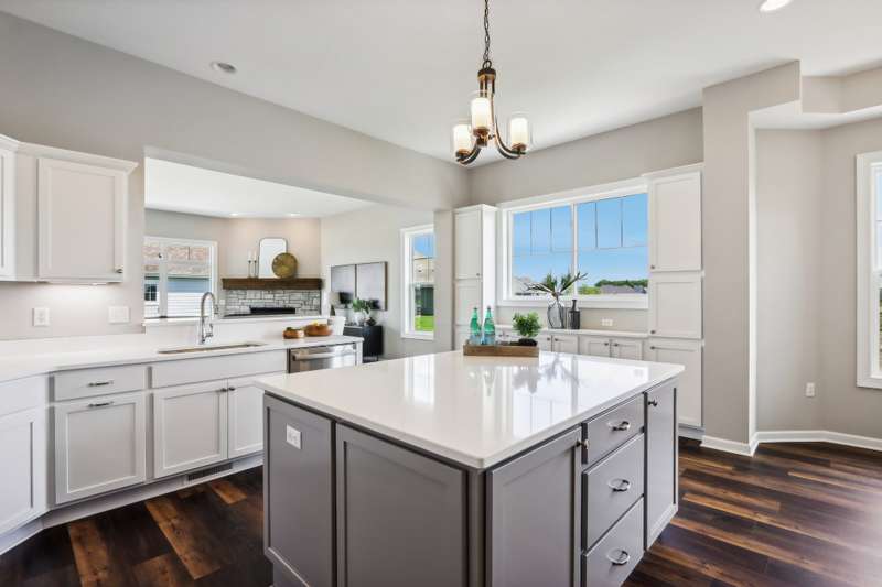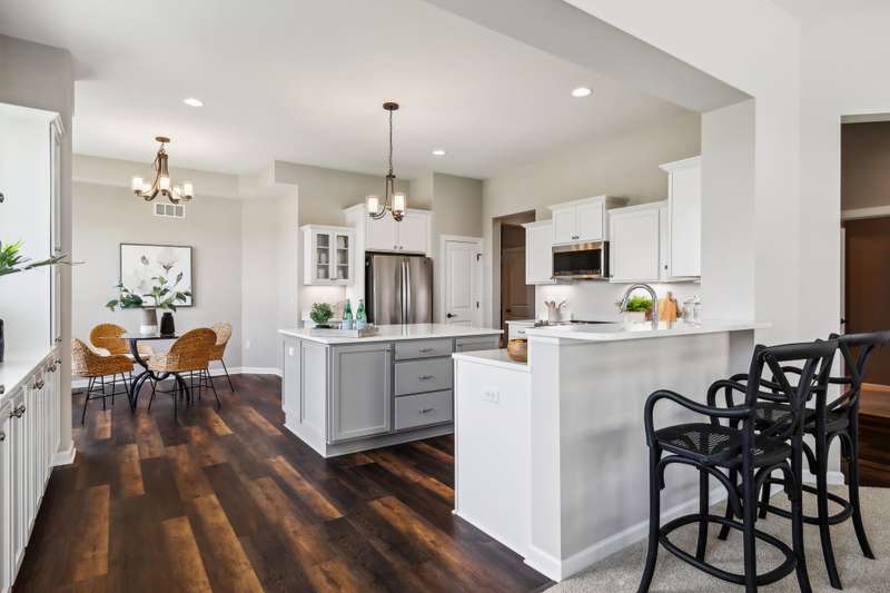 This beautifully crafted new construction 2-bed, 2-bath condo was designed with ease and style in mind - ready for immediate move in! The chef-inspired kitchen showcases quartz countertops, ample counter space for prep and presentation, stainless steel appliances, plus an island, breakfast bar and adjacent dining room. An expansive great room filled with natural light also includes a gas fireplace for a warm, welcoming space where you can also step outside to enjoy your private deck-ideal for morning coffee or relaxing evenings. The primary suite offers a peaceful retreat, complete with a walk-in closet and ensuite bath with dual sinks and a tiled walk-in shower. Other features include main-level laundry, an attached two-car garage, and energy-efficient construction throughout & partially exposed lower level w/lookout windows! Don't forget the future amenities also include a community pool and clubhouse! With low-maintenance living and exceptional craftsmanship, this condo offers a lifestyle that's both practical and luxurious. Love the location but want to build your dream unit? Custom build options are available for this and all other floor plans. Welcome Home!