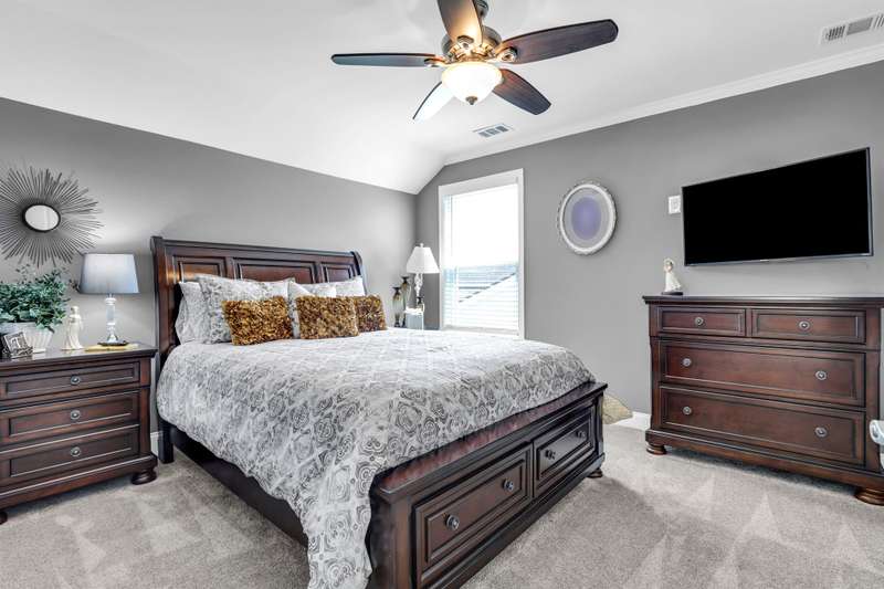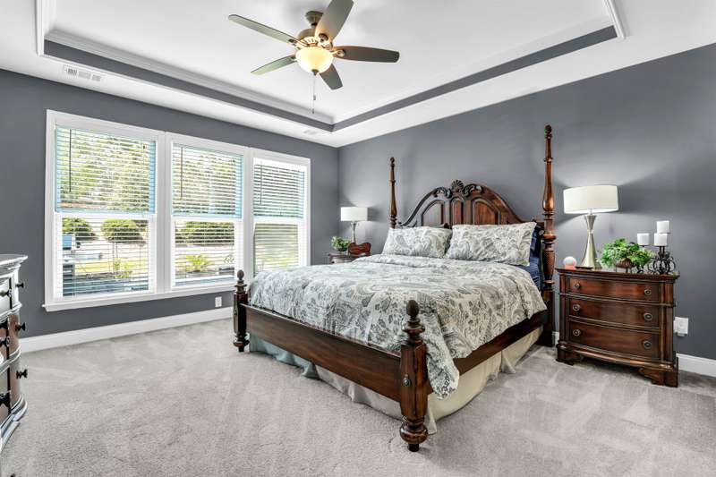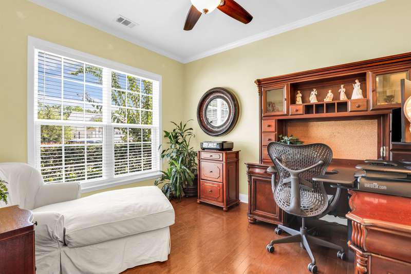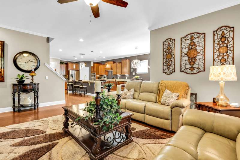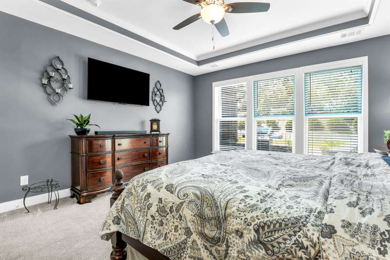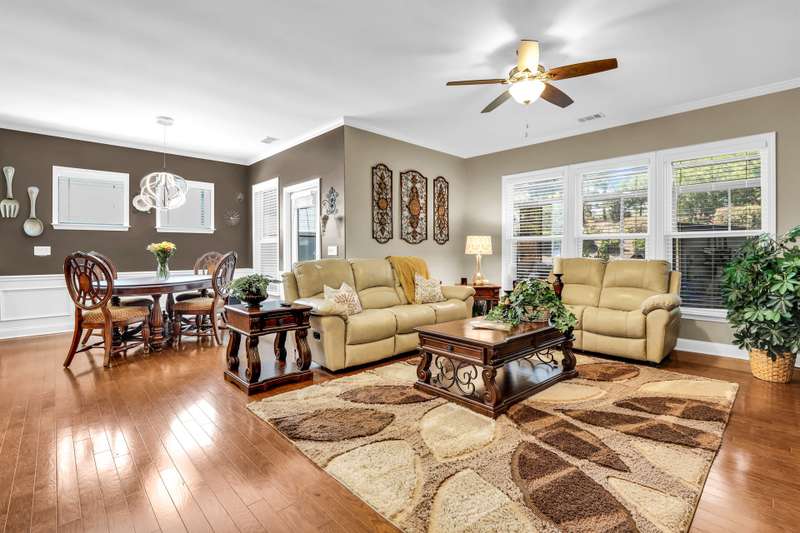 Beautiful Castle Rock Model in Sun City Hilton Head. This move-in ready 3BR/3BA home offers stunning landscape views and refined upgrades throughout. The gourmet kitchen features granite countertops, large island, 5-burner gas stove, wood cabinetry, and a complete wet bar with wine fridge, perfect for entertaining. Crown and chair molding add elegance to the main living spaces. Owners suite boasts a tray ceiling, tiled walk-in shower, and quartz counters. Upstairs, a spacious den with bedroom and bath provides the perfect guest retreat. Enjoy outdoor living in the enclosed sunroom. The oversized garage allows for parking, additional storage, or golf cart. Located in one of the premier active adult communities near Hilton Head Island, this home offers both luxury and lifestyle.