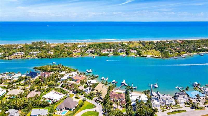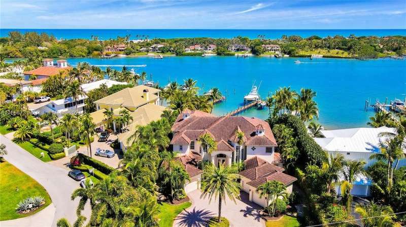 Absolutely Stunning One of a Kind Opportunity to Own on the Direct Blue Water Intracoastal in Martin County Jupiter/Tequesta encompassing .713 Acres of Gated Privacy. This palatial estate home is custom designed and beautifully laid out for entertaining on a grand scale as well as family enjoyment. As you enter through the double doors into the 2 story formal living room complete with Gas Fireplace and Full Wet Bar will greet you with a wall of windows giving way to breath taking Blue Water Views. The Main Level includes Formal Living, Dinning, Chefs Kitchen, Family Room/Informal Dinning,2 Ensuite Guest Bedrooms, Half Bath, Laundry, 3 Car Garage. Second Level Boasts 2 Sumptuous Primary Suites and Baths with Private Balconies overlooking the Intracoastal and another ensuite Guest Bedroom.