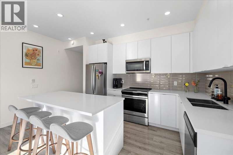 Bright & spacious 3 bed 2 bath CORNER UNIT in vibrant Uptown! Functional layout features a chef's kitchen with quartz counters, S/S appliances & large island leading to your open concept dining & living rooms. Oversized windows, high ceilings & tons of natural light. SE PRIVATE EXPOSURE + enjoy water views from your covered balcony year round. Primary bdrm with walk through closets & en-suite bath with double sinks! 2nd & 3rd bdrms on opposite side of unit for added privacy. Great building with remaining 2-5-10 warranty for peace of mind. Rooftop deck, comm. garden, 2 pets (no size rest.'s), 1 parking & option for storage locker. AMAZING LOCATION blocks from 6th & 6th, close to major HWY's & walking distance to Moody Park, Queens Park Sportsplex, shopping, restaurants, schools, transit & skytrain. (id:58403)