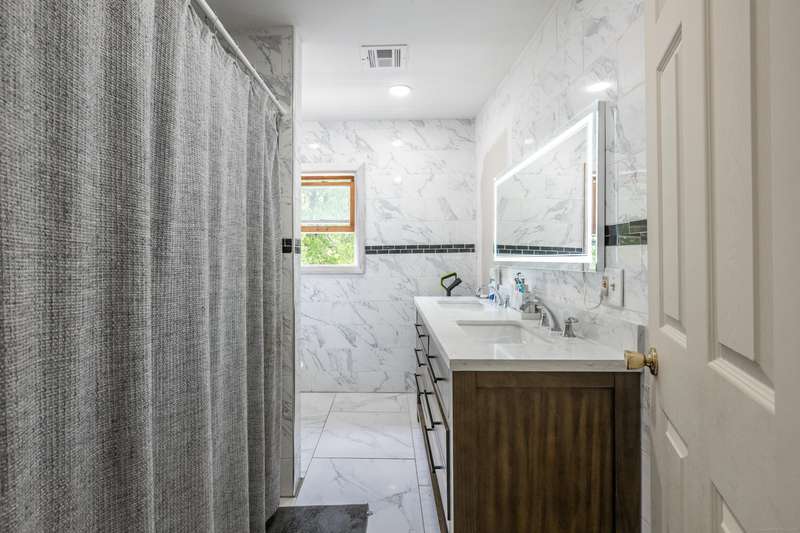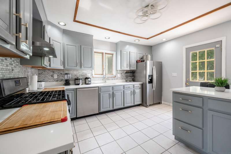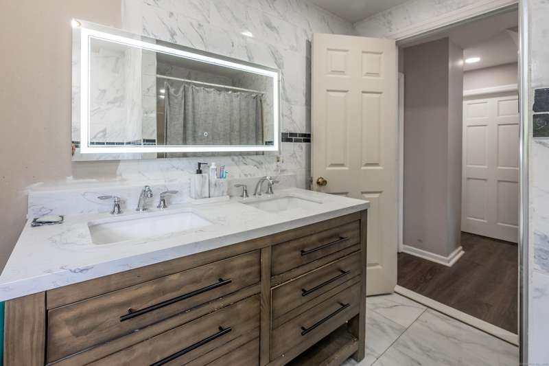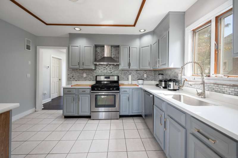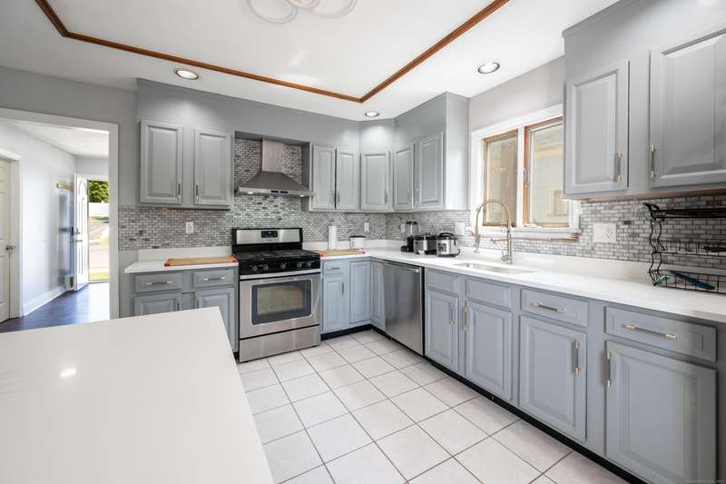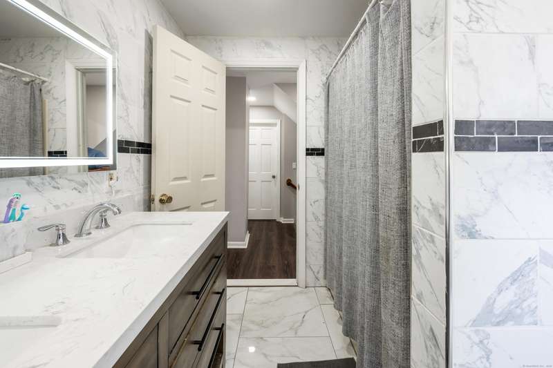 Beautifully updated and spacious 3-4 bedroom Colonial in downtown Danbury. Updated inside and out with a gorgeous new kitchen, bathrooms, flooring, paint and mechanicals. The main level has a large new eat-in kitchen with island that walks out to the deck, plus half bathroom and extra large living/dining room. The living and dining rooms have been modified to the owner's needs with some temporary walls, which can easily be removed if the new buyer chooses. Upstairs offers three spacious bedrooms and two fully updated bathrooms, one with a convenient laundry area. The walk-out lower level features a potential in-law suite with full bath and two bonus rooms with extra closet space. There is also a full walk-up attic for storage or future expansion. The back deck has lovely western views and overlooks the level yard with shed and above ground pool. There is also ample parking in the driveway. Located on a lovely sidewalked street, just minutes to many shops, restaurants and Danbury Hospit