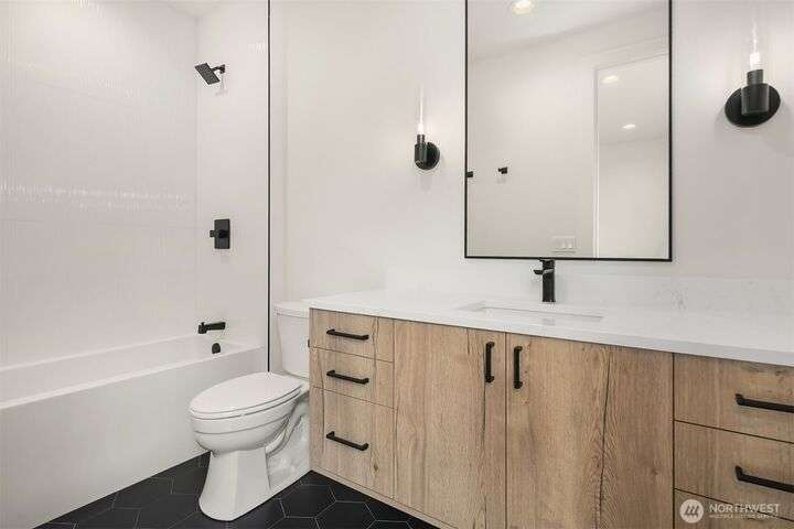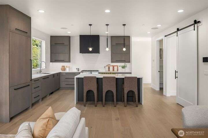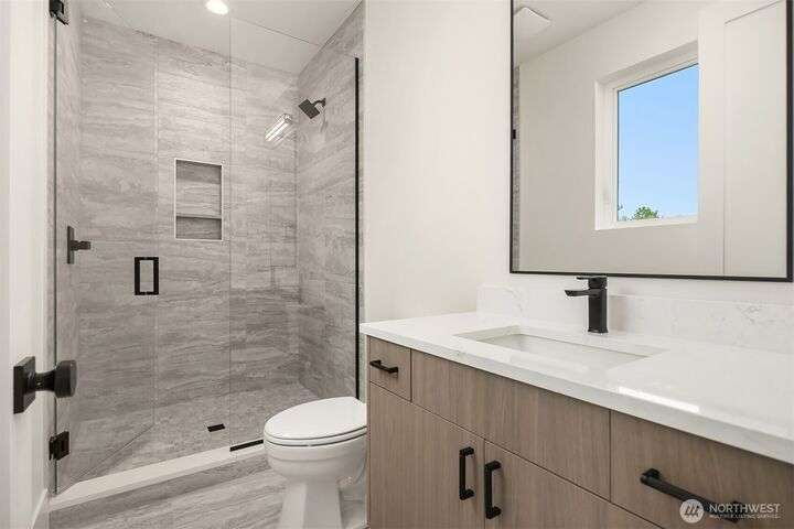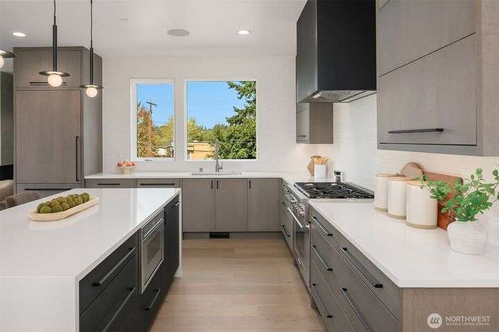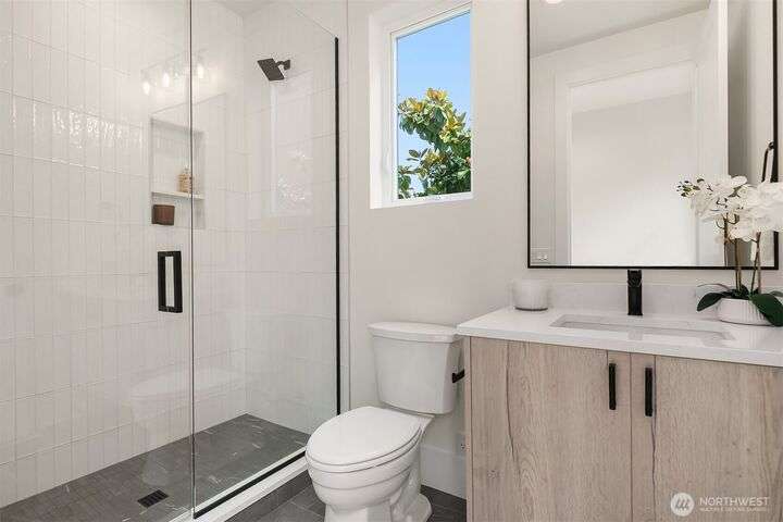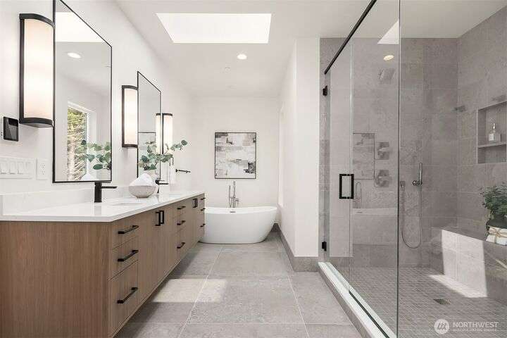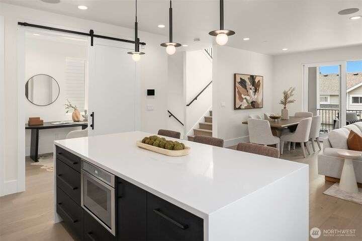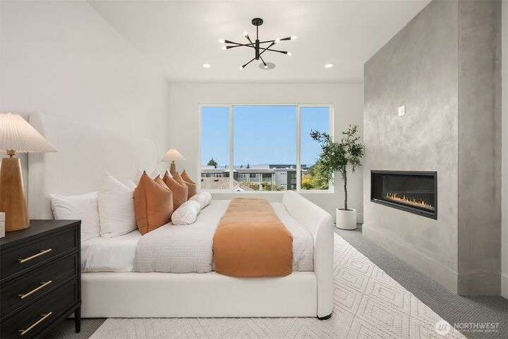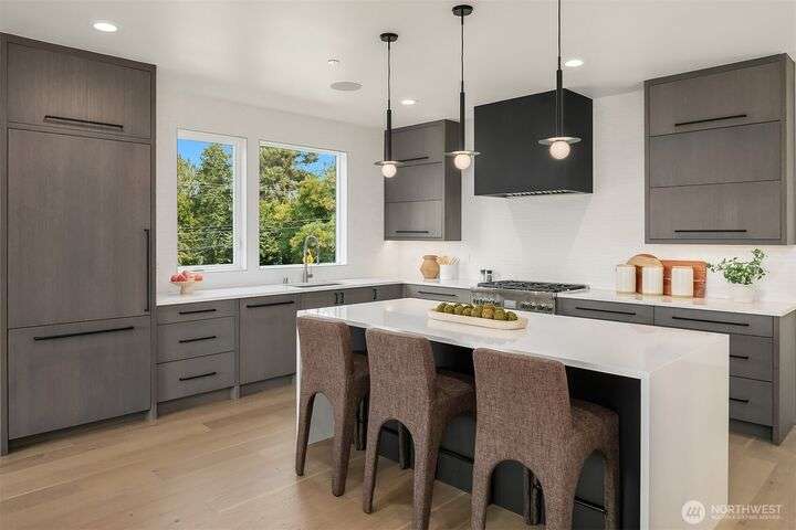 Enfort Homes presents, 'Maverick', ideally located in the Moss Bay neighborhood, just steps away from Google and all the DT Kirkland Amenities. These brand-new homes boast a modern, seamless aesthetic with elevated finishes and designer touches. 3 spacious view homes to choose from to suit an urban lifestyle ranging from 2647 to 3722sf. Large great rooms with patios and yards, sleek kitchens curated for the inspired chef, fully equipped with Thermador appliances. Lot 1 features main floor office + bedroom + 3/4 bath. Entertainment sized bonus room in the lower-level w/ guest suite. Upper-level features luxurious primary suite with gas fireplace and lavish spa bath + walk-in closet + 2 additional en-suites. A/C, 2-car garage with EV charging