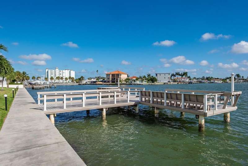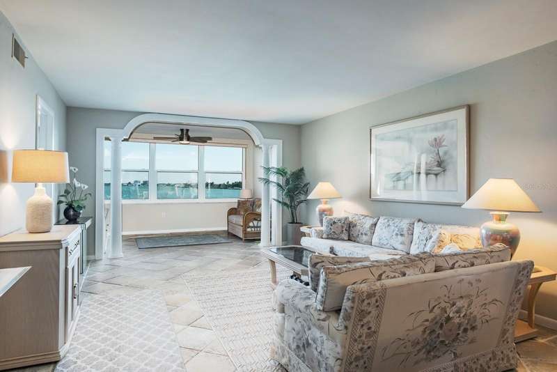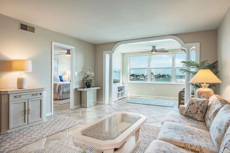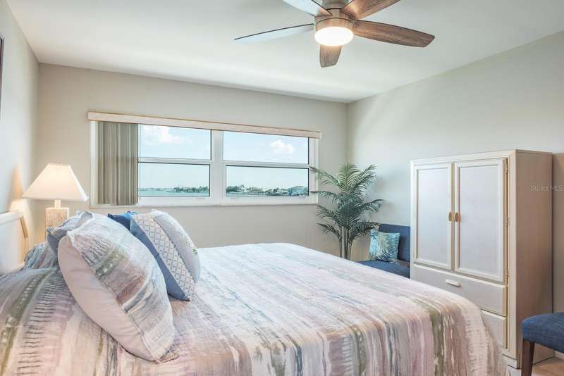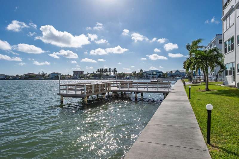 Experience the best of waterfront living at Regency West on St Pete Beach! Enjoy expansive water views from the moment you walk through the door. This spacious 2-bedroom, 2-bathroom condo offers 1,350 sq. ft. of beautifully updated living space with breathtaking direct views of Boca Ciega Bay. This unit also comes Fully Furnished, has its own covered parking space and a storage unit perfect for your beach accessories! Step inside to find Italian tile flooring throughout the main living areas with a beautifully updated kitchen featuring Custom solid wood cabinetry, granite countertops, Sub-Zero refrigerator/freezer, wine cooler, new dishwasher(2024) and range(2024). Enjoy peace of mind with new hurricane-rated windows and the convenience of an in-unit washer and dryer(2024). Regency West is a meticulously maintained waterfront community offering resort-style amenities including two sparkling pools, a newer seawall and fishing dock, shuffleboard courts, outdoor grilling areas, a clubhouse, and a fitness center with saunas. Located directly across from the sugar-white sands of St. Pete Beach, this condo combines comfort, convenience, and coastal charm—perfect as a full-time residence or a relaxing vacation getaway! You’ll find great weekend entertainment, the local Sunday Market & boutique stores just around the corner on Corey Ave! Just a short drive to the vibrant Downtown St Pete and easy trip to and from Tampa. Don’t miss your chance to own your very own beach retreat and live the true Florida Lifestyle! No Land Lease and the HOA includes water, cable and even WIFI!