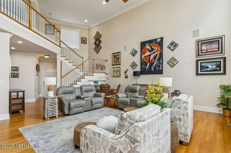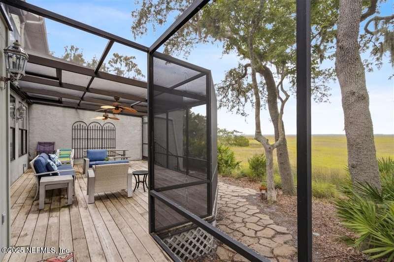MARSH FRONT MAGIC! Amelia Island Plantation, marsh front villa welcomes you with a tranquil, oak-lined path that leads to your front door. Step inside to show-stopping panoramic marsh views with dramatic floor-to-ceiling, two-story windows that flood the home with natural light. The open staircase and vaulted ceilings add to the airy feel, while wood and tile flooring flow seamlessly throughout. The kitchen is positioned to take full advantage of the views for the chef of the house and features granite countertops, an island filled with storage, and a gas cooktop. Two guest rooms are downstairs for easy entertaining while upstairs, a loft with custom built-ins makes the ideal office and second living room. The large primary suite shines with marsh views, a private balcony, two walk-in closets, a bathroom with double vanities, soaking tub, walk-in shower, and linen closet. The expansive screened outdoor living space offers the ideal setting to relax and enjoy the beauty of the marsh.