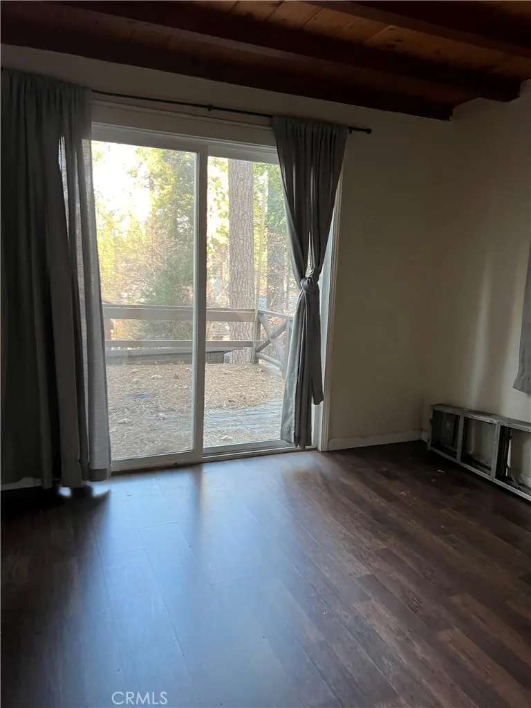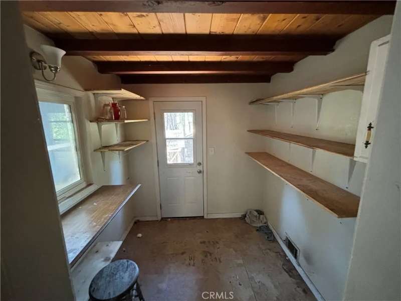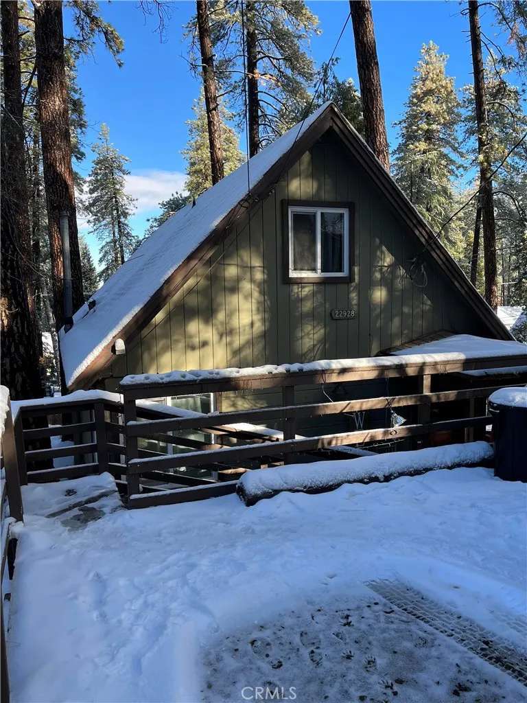 This charming cabin is ready for someone to bring their vision and some TLC to make it a delightful home. The main level includes a bedroom and full bathroom, a cozy living room with a fireplace, a galley kitchen, and an interior laundry room. Step outside onto the large deck, accessible from the kitchen or the main bedroom's sliding doors--a perfect spot for relaxing, entertaining, or barbecuing. Upstairs, you'll find two additional bedrooms and a convenient half-bathroom. The home features newer dual-pane windows throughout for added energy efficiency. The spacious yard includes a large storage shed and plenty of room to create a beautiful garden or outdoor space. Two-car parking space directly in the front of the home. Descending stairs from the open parking spaces leads you to your front door. Conveniently located near the heart of town, this property offers easy access to Lake Gregory, popular hiking trails, and Lake Arrowhead. Whether you're looking for a weekend getaway or a full-time residence, this cabin can provide the perfect balance of natural beauty and accessibility. This is a SHORT SALE and is SUBJECT TO LENDER APPROVAL.