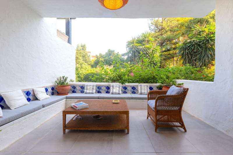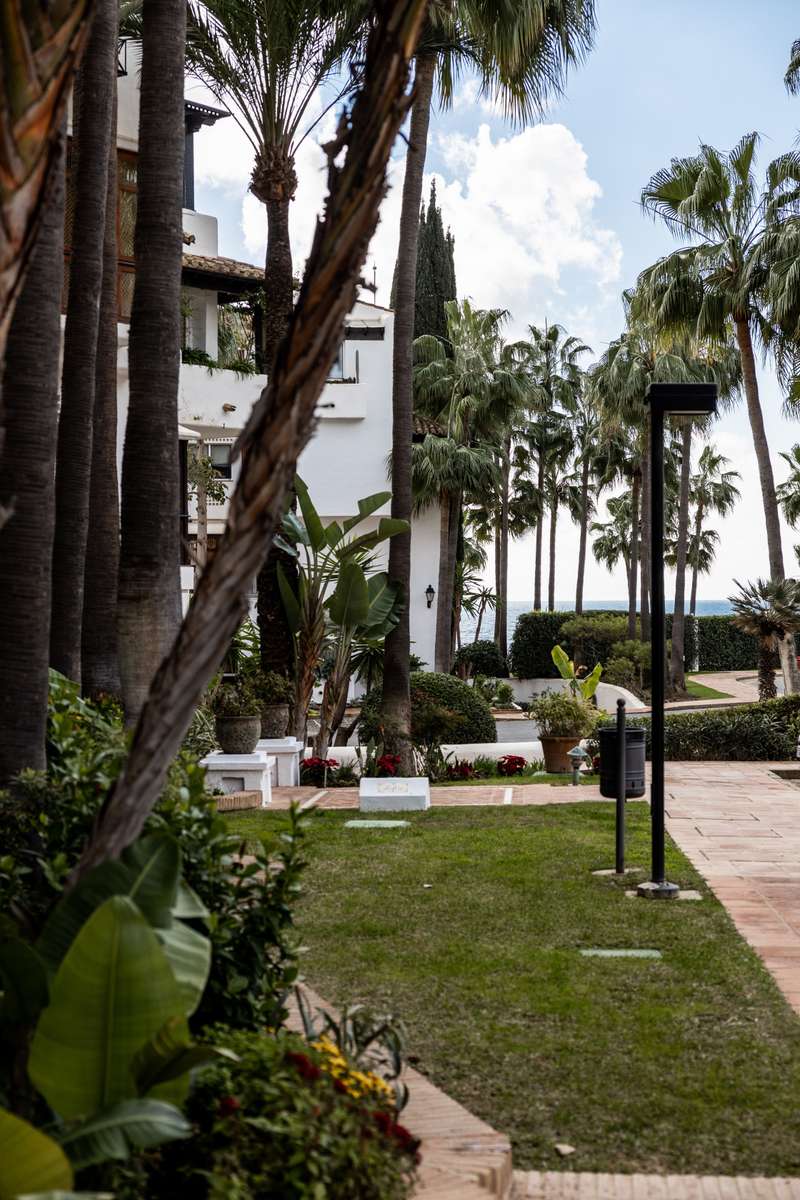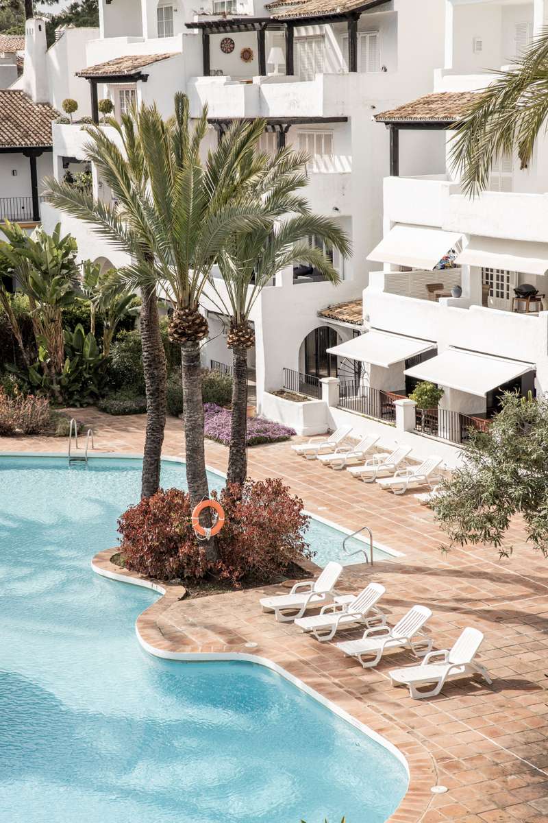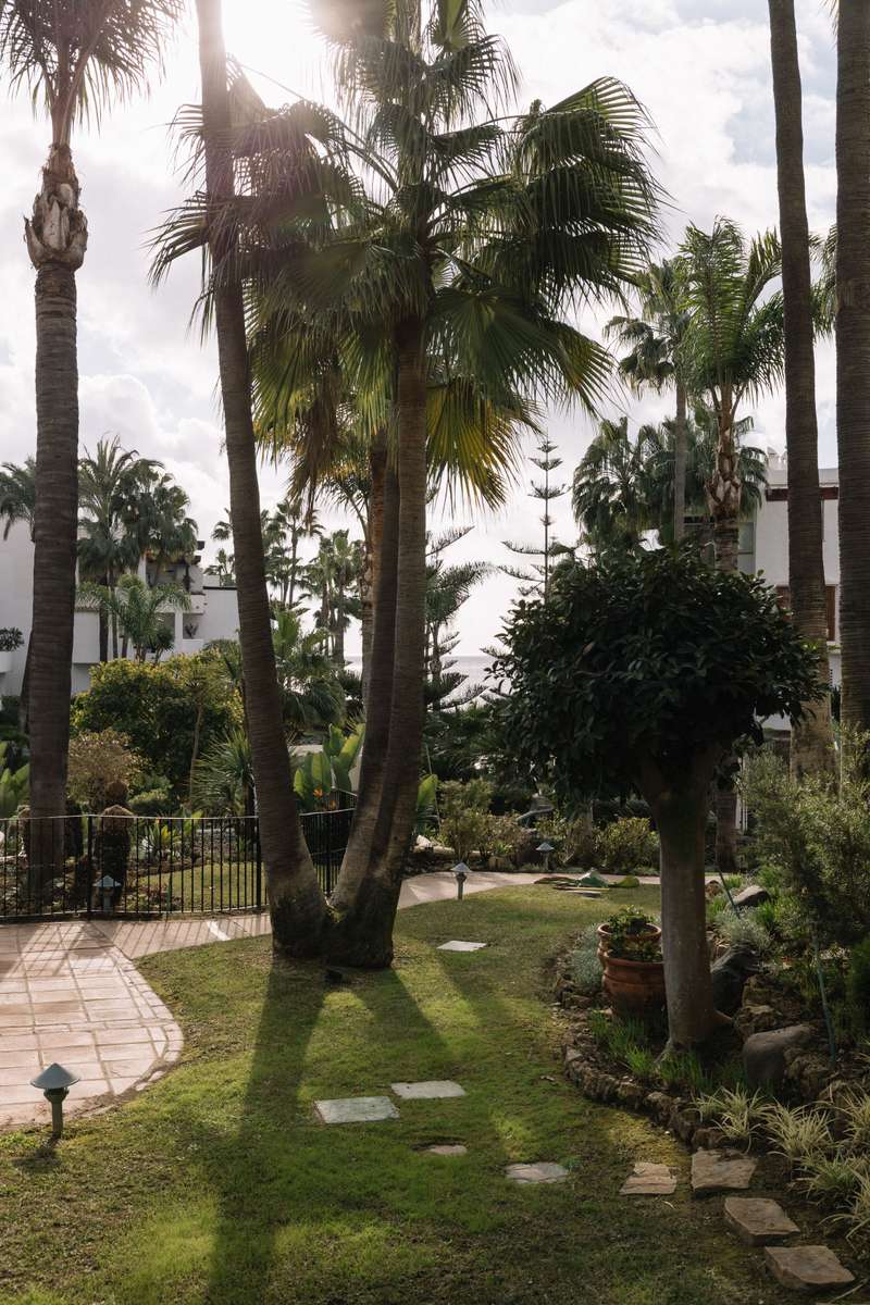 This beautiful apartment located in the heart of Puente Romano has been renovated and is completely fresh and modern. It offers a spacious living room with a comfortable sofa and fireplace; a fully equipped open-plan kitchen with breakfast area; a master bedroom, bathroom and another bedroom with separate bathroom. The apartment has a large private terrace, with direct access from the living room and the master bedroom, offering a splendid outdoor living area to enjoy the Mediterranean evenings. It overlooks the communal gardens and pool. Puente Romano Phase II is a private apartment complex ideally located and offers fabulous communal subtropical gardens and two swimming pools. It also includes a designated parking space.