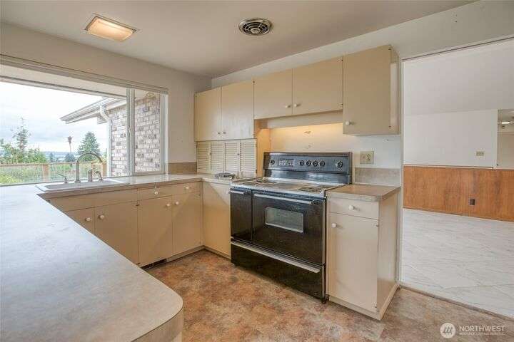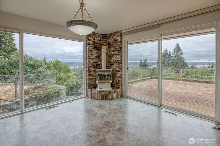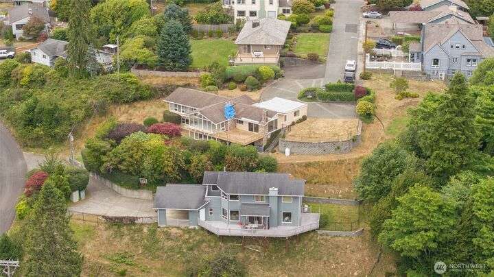 Midcentury modern, quality built, View home available! Located at the end of Chilton Rd in Aberdeen, Bel Aire Hill. Views from the living room, kitchen, primary bdrm, & add'l bdrm. A private setting which includes mature landscaped shrubs & trees. Custom concrete driveway, total 4 bdrms, 2 3/4 baths. Living room features vaulted ceiling & wall of windows showcasing the spectacular view. Propane fireplace warms in those cooler months. Kitchen opens out to enjoy the large deck & again, those views! Free-standing propane stove in that area. Finished basement has propane fireplace, family room, small bar kitchen, 2 bdrms, full bath & multiple bonus/storage rooms. Private patio and back yard area. This is an estate, being sold AS IS.