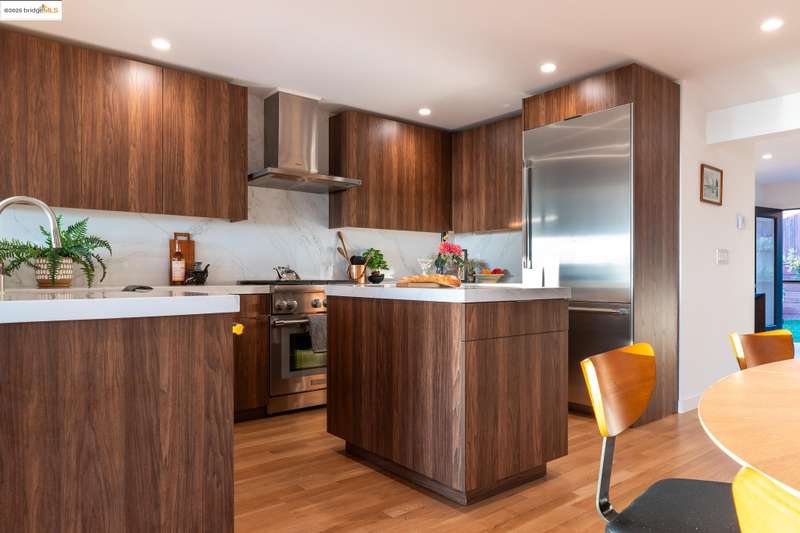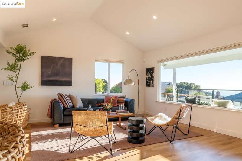 Don't miss this incredible home in desirable Kensington! Perched above Kensington Village with stunning three-bridge Bay views, this rare 3BD, 2BA home blends modern design with timeless comfort. Rebuilt from the studs up in 2024, it features high-end construction, brand-new systems, and a light-filled single-level layout with high ceilings, hardwood floors, and expansive windows framing the views. The custom chef's kitchen showcases a newly built island, quartz countertops, Thermador appliances, and sleek cabinetry - perfect for entertaining or everyday living. Open living and dining areas flow seamlessly together, enhanced by custom built-ins and designer window treatments throughout. The cozy family room anchors the floor plan and opens to a private backyard for effortless indoor/outdoor living, while the serene primary suite offers a luxurious en-suite bath with designer finishes. With drought-tolerant landscaping, a one-car garage with an EV charger, and easy access to Kensington Village and Solano Avenue, this hilltop haven offers modern luxury, thoughtful design, and effortless livability.