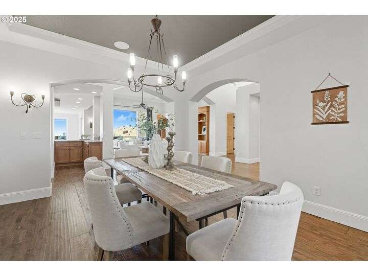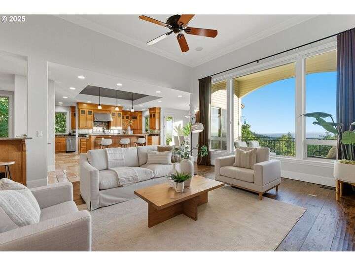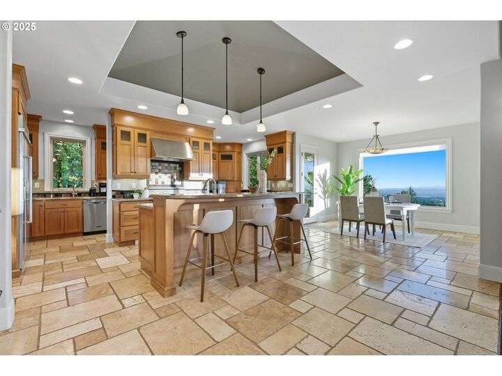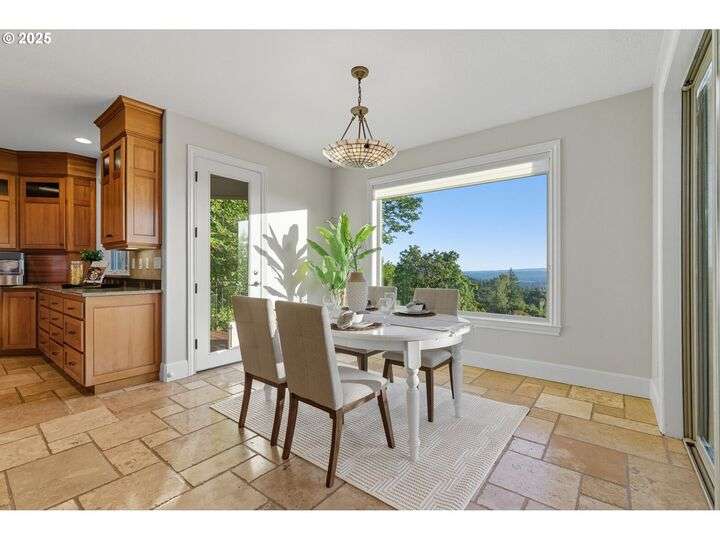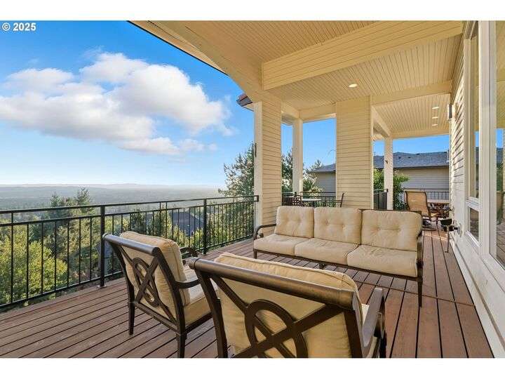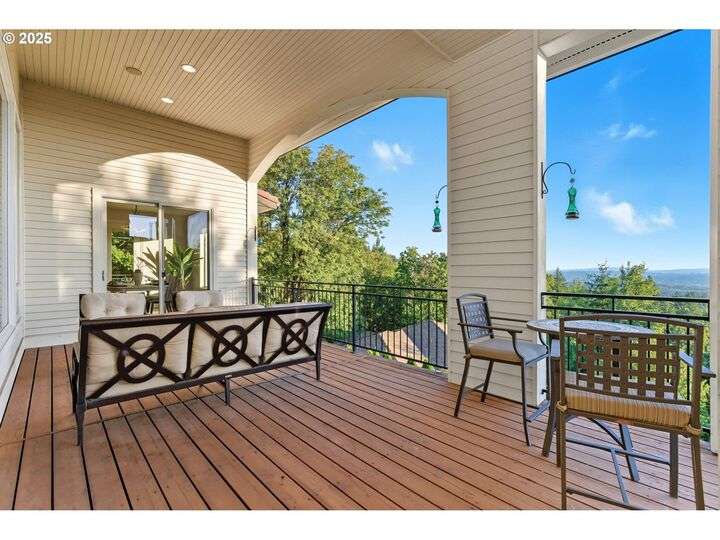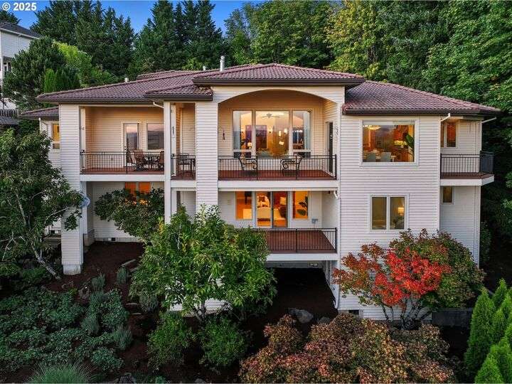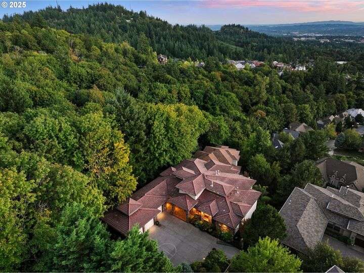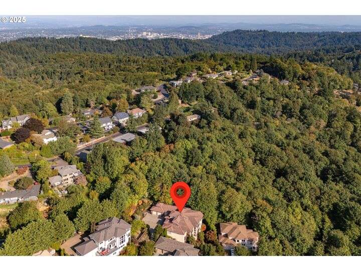 Stunning Mediterranean where sophisticated living meets everyday comfort, framed by sweeping valley and coastal range views that take center stage from nearly every room. Soaring ceilings amplify the sense of space, while a private, gated entry offers seclusion and elegance. The great room with its statement fireplace flows to a dream kitchen designed for entertaining, complete with granite countertops, top-of-the-line appliances, generous counter space, storage, and a separate bar. Two separate decks provide outdoor living from here, inviting you to experience the breathtaking views. A stately main floor office greets you upon entry with bookshelves and a fireplace. Main floor living!! The primary suite on this level is enhanced by a two-sided fireplace and a $100K+ spa-inspired bathroom remodel (2020) featuring a stand-alone soaking tub, rainfall shower, and dual-flush bidet toilet. Laundry rooms on both levels make daily living effortless. The lower level offers another family room with a fireplace and deck access. Two spacious bedrooms on this level have an adjoining bathroom suite, and another separate bedroom with a bath is ideal for guests. Movie nights and big games are transformed in the custom 8-seat 4K home theater, built in 2013 and upgraded in 2019 with a Sony 4K laser projector, a 150-inch Stewart Premium screen, an Integra A/V receiver, a surround system, and eight powered leather recliners. Outdoors, a level courtyard invites gatherings on the 0.45-acre lot anchored by a fabulous 3-car garage. Gorgeous mature landscaping and pathways. Smart home features. The location completes the package—Forest Heights offers four miles of private trails connecting to Forest Park, nearby Mill Pond Park spans 8 acres with playgrounds, amphitheater, and pond, and the iconic Skyline Restaurant is just half a mile away. All within a quick 9-minute drive to NW Portland’s shops, restaurants, and markets. [Home Energy Score = 1. HES Report at https://rpt.greenbuildingregistry.com/hes/OR10241150]
