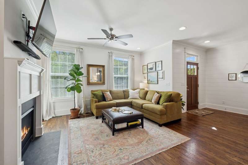 Move in ready 3 bedroom, 3 bathroom home in The Nations with designer finishes. Bright and open floor plan with hardwoods, gas fireplace, and custom built-ins. Kitchen features granite counter tops, subway tile, and stainless appliances. Vaulted primary suite includes a walk-in closet and private balcony. Covered porch, fenced patio, and off-street parking. Walkable to restaurants, coffee shops, and breweries in one of Nashville's most vibrant neighborhoods. Schedule a showing today!