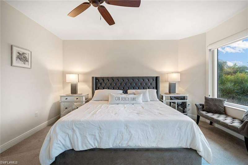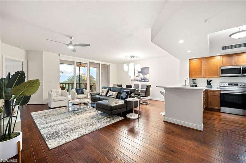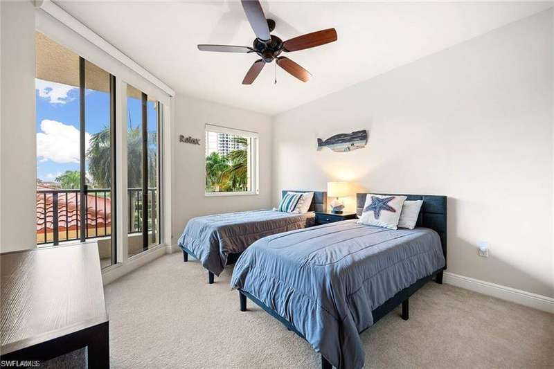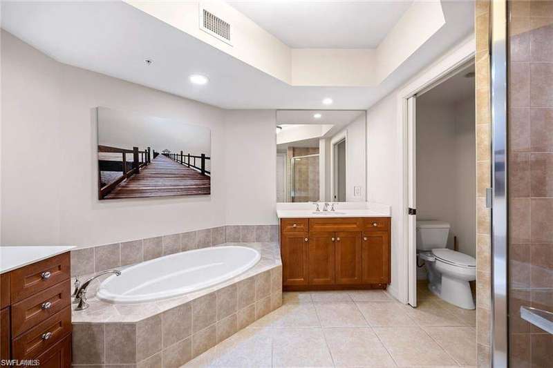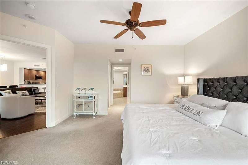 Available -From NOVEMBER 1ST -MARCH 31, 2026 Tropical Views from Second floor Naples Luxury Hi Rise in gated community of Hammock Bay. Private 1865 sq ft -3 bedrooms plus 2 1/2 baths. The Secured elevator brings you to a private entrance. Wood flooring throughout the living area, Levelor dual window shades, tiled lanai, 5 fans. Updated kitchen-quartz counters -breakfast bar, pantry, and rich wood cabinets. The master suite (king bed) has his & her vanities, large walk in shower, soaking tub, 2 walk in closets & sliders to sunset lanai. 2 guest rooms (1 with queen bed 2nd guest twin beds) share a sunrise balcony and a full bath. INTERNET AND CABLE ARE INCLUDED. Serano has fabulous amenities -Resort Pool, Cabanas, Theater, Social and Fitness room. All of Hammock Bay is hurricane proof JW Marriott hosts a Tiki Bar & Restaurant for all. Shopping - Fresh Market, Publix restaurants and stores are close by. Hammock Bay G&CC is located 2 miles north of Marco on the coast of the 10,000 Islands and 20 min. from Olde Naples.