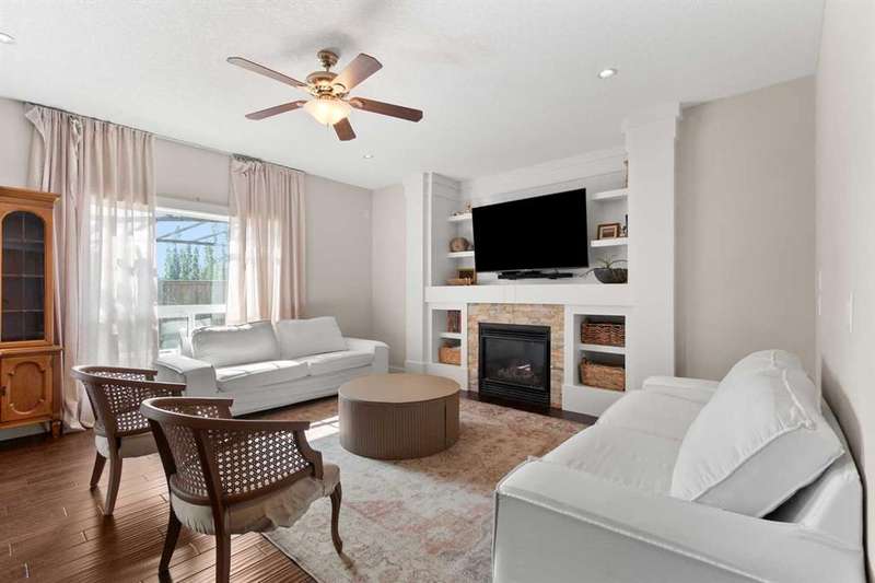 This is the one you have been waiting for! With over 2400 sq ft, a triple garage, and a sunny south facing backyard, this 2-storey is perfectly placed right across from a park and pathways in family-friendly Carstairs. Step into the spacious front entry, where you will find a dedicated home office, ideal for working from home. The main floor features beautiful hardwood in the hallway and living room, flowing into a cozy living room with custom built-ins and a fireplace. The dining area is bright and open, leading into a showstopper kitchen with granite counters, upgraded lighting, and a modern design that’s perfect for gatherings. Step outside to the rear deck with pergola and take in the large backyard, offering plenty of space to relax, play, and entertain. A walkthrough pantry, mudroom off the garage, and a 2-piece bath complete the main level. Upstairs, you will love the large bonus room with a play structure, two spacious bedrooms, and the primary retreat with a spa-like 5-piece ensuite and walk-in closet. The unspoiled basement is ready for your future development. Carstairs is a vibrant community with schools, recreation facilities, and all the amenities you need, plus an easy commute to Calgary.